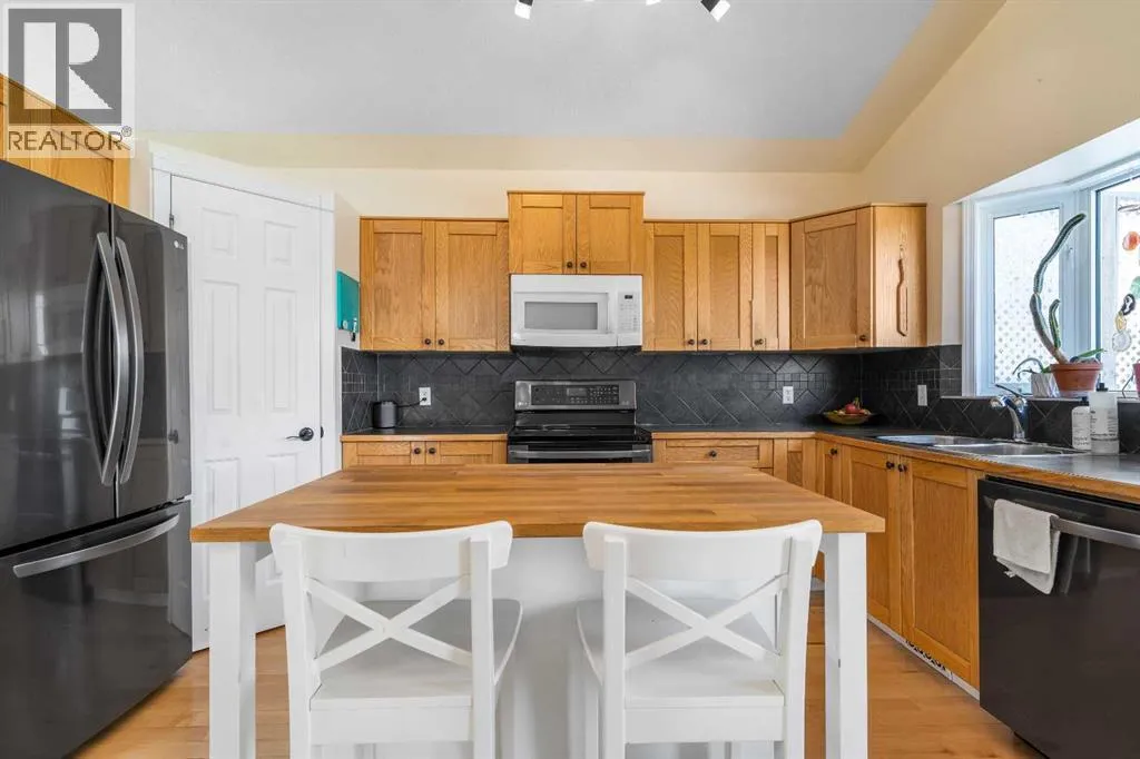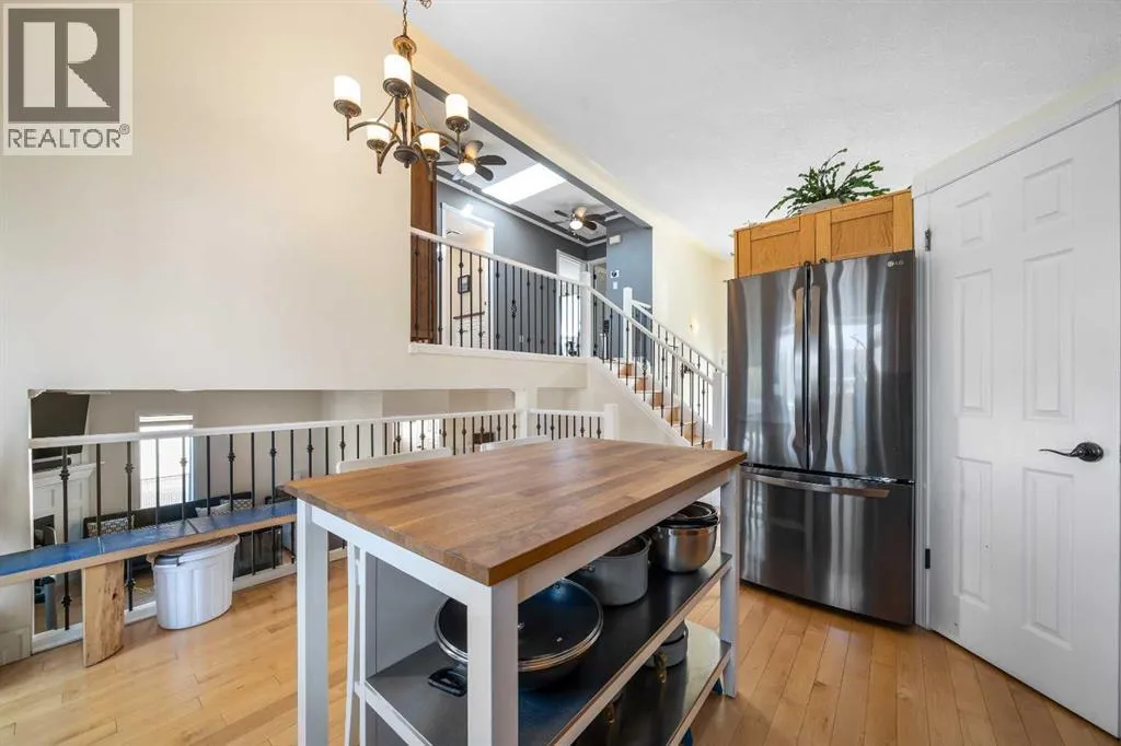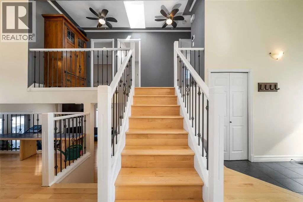 This is a rare gem. Located in the a highly desired neighborhood; this home offers a stunning open-concept 4-level split. Thoughtfully updated, this home delivers an exceptionally functional layout with generous above-grade living space and finished lower levels for versatile family living.Step inside to inviting maple hardwood floors, featuring a large kitchen , dining area, and living room with a skylight in the vaulted ceilings. Upstairs youâll find a spacious primary bedroom with a walk-in closet, a secondary bedroom, convenient laundry, and a full 4-pc bath with a second door giving access as a en-suite.The finished lower level includes a generous rec room showcasing a gas fireplace, a den, and a 3-pc bath. The bottom level provides additional storage, utility room, an office nook, and a large crawl space for all the storage you will ever need. The heated attached double garage offers excellent parking, with additional room for RV parking. Outside, enjoy the expansive deck and private backyardâperfect for entertaining or relaxing. Hardwood flooring throughout the main living areas, abundant natural light, and a bright, move-in-ready feel make this home truly special. This home has been meticulously maintained. The shingles were replaced last year, windows are vinyl. Contact your favorite real estate agent today and book a viewing! (id:27476)