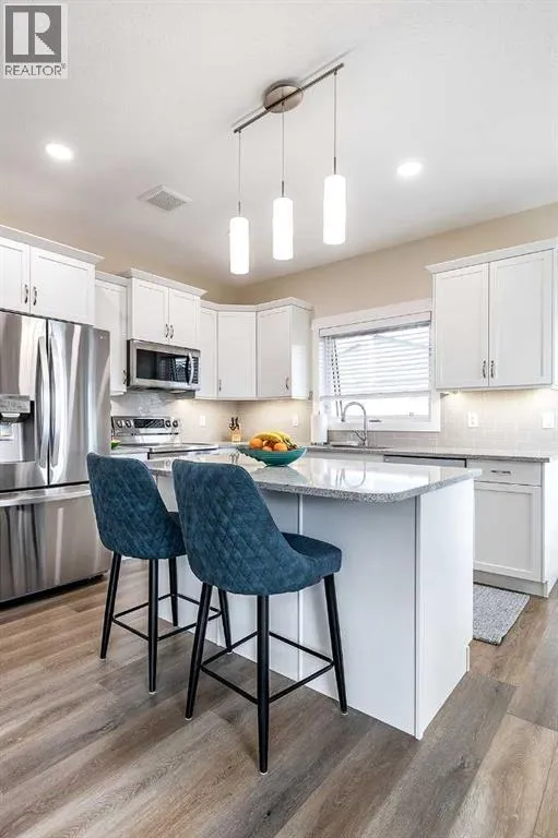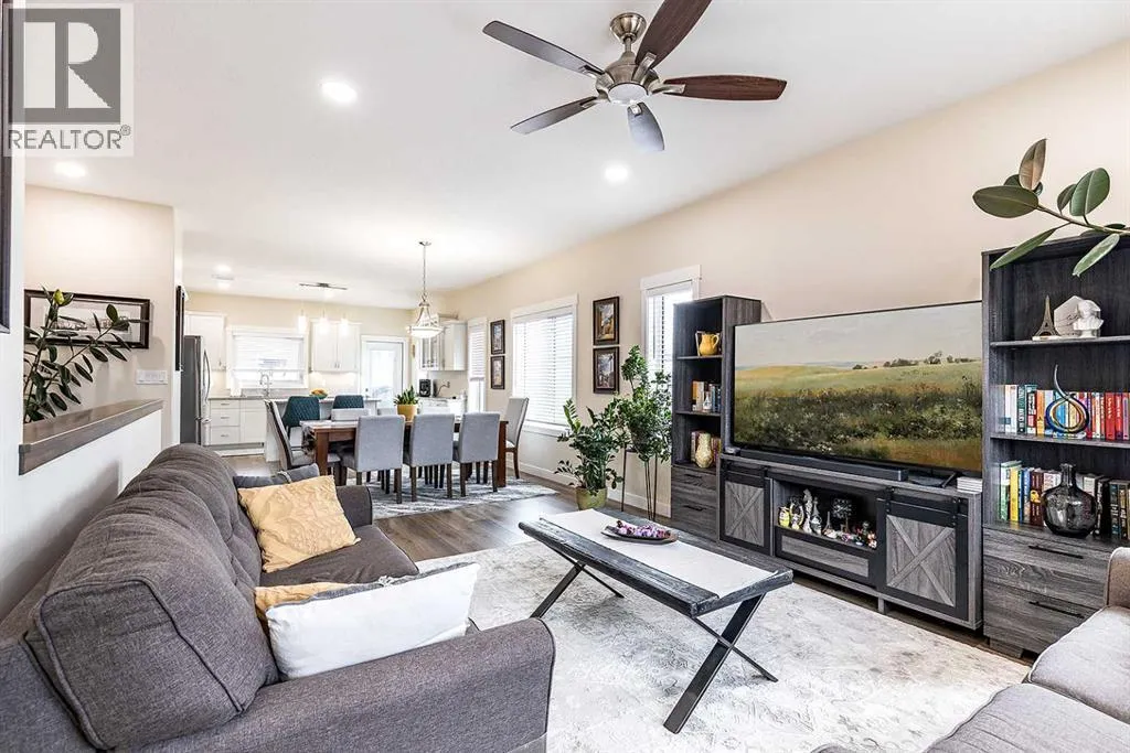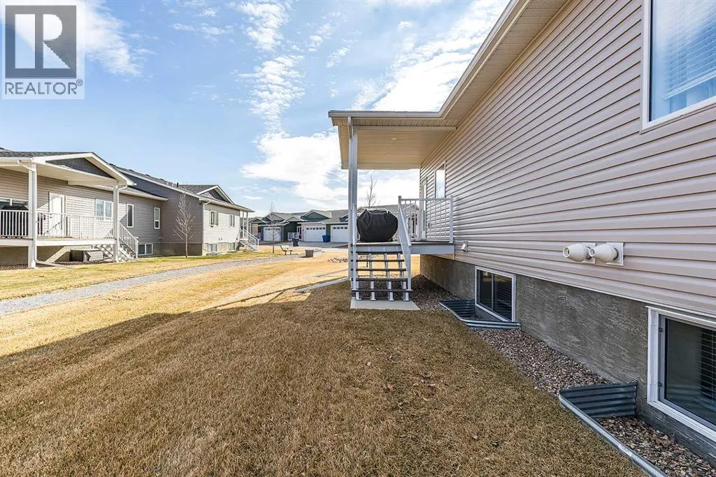 Welcome home to your new oasis! Built in 2021 and available for the first time on market by its original owners, this end unit condo located in Southlands Park Estates is the perfect place to relax and unwind. As you enter, youâll notice the open concept feel and warm brown vinyl plank flooring that ties the living room, dining room and kitchen together. The kitchen features granite countertops, a stainless steel appliance package, a spacious island with a breakfast nook, as well as additional counter space on the side for a coffee bar. Not only is this condo ideally located backing onto a walking path and community flower beds, but its back 14' x 8' covered deck also faces northwest, making it the perfect shady spot to enjoy Medicine Hatâs sunny days. Down the hall is the primary bedroom with a massive oversized walk-in closet as well as a 3 pc ensuite bathroom. The main floor also features a half bath, built-in desk work space, main floor laundry, and a back mudroom with a built-in closet space that leads to the 23â x 22â double attached heated garage. The downstairs is spacious with 9 ft ceilings, and features two good sized bedrooms, a 4 pc bathroom, a spacious family room with a gas fireplace, as well as a den / flex space. Other notable features include the large hot water tank, high efficiency furnace, sump pump, gas line for BBQ on back deck, a central vac and lots of storage space! Condo fees are $250 per month and includes land maintenance, snow removal, contributions to the reserve fund, and insurance coverage. (id:27476)