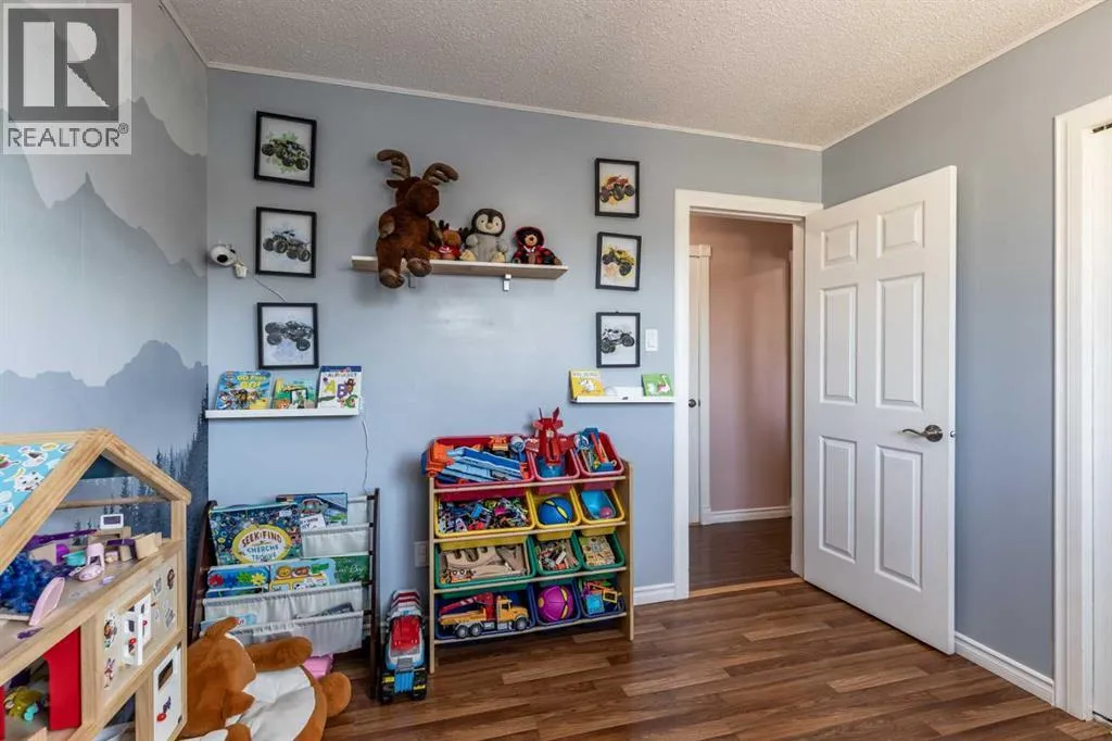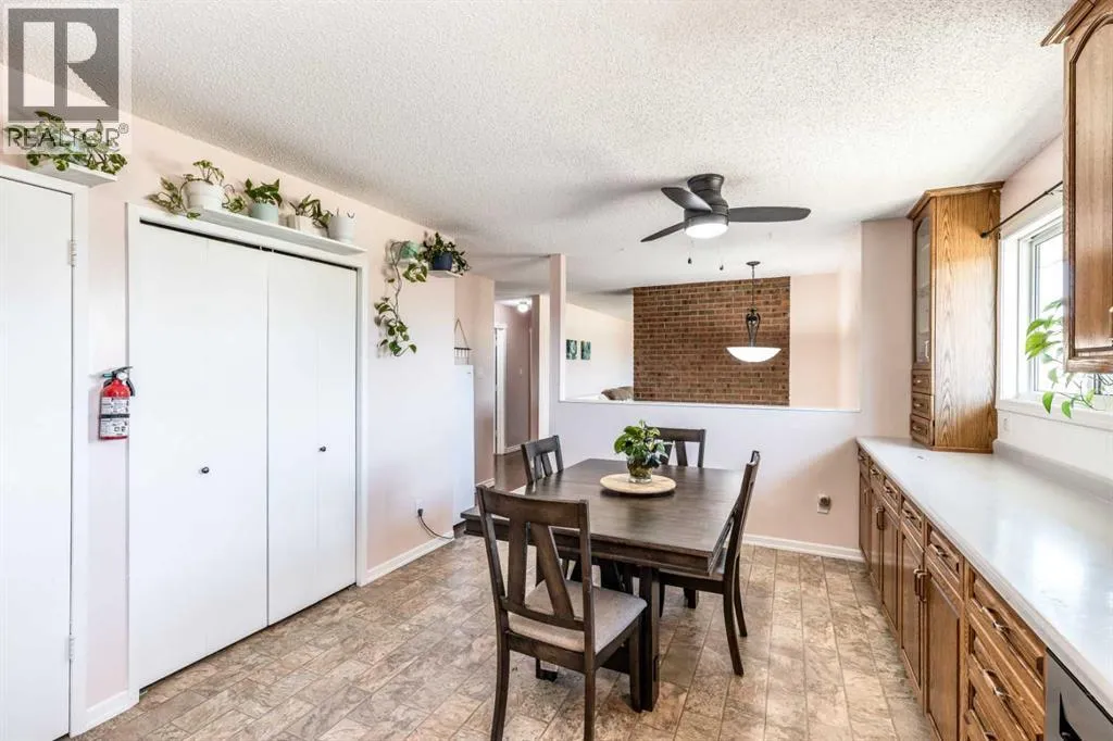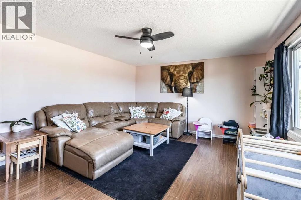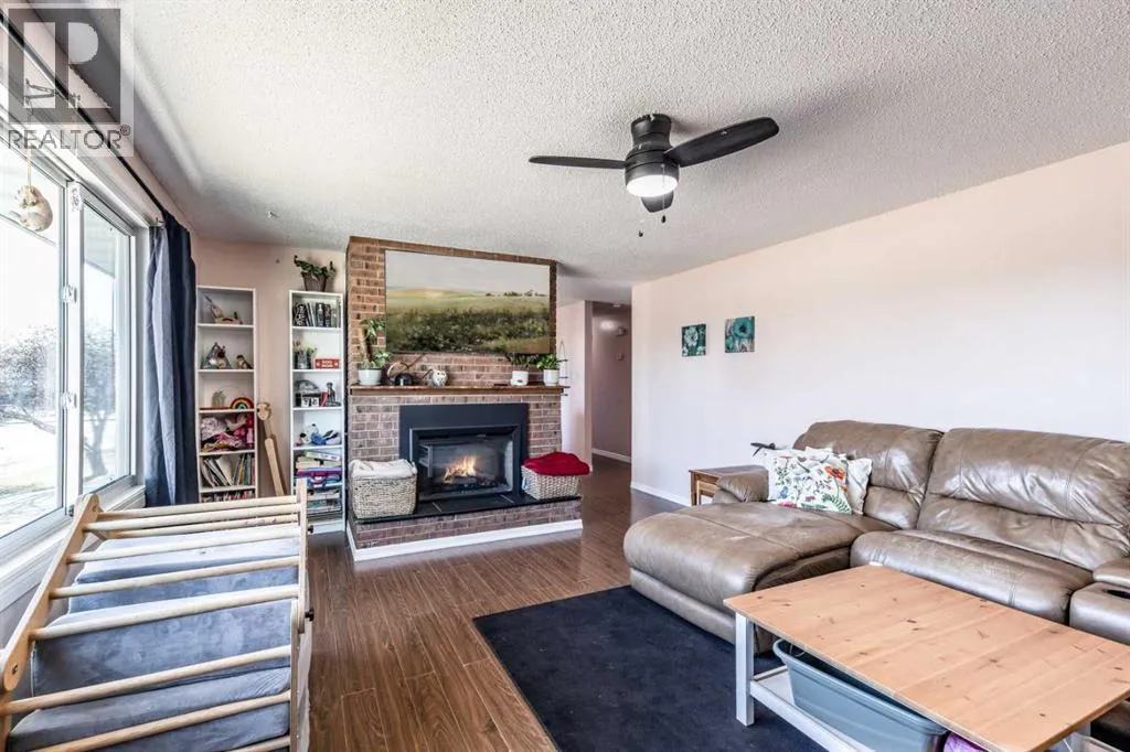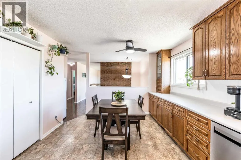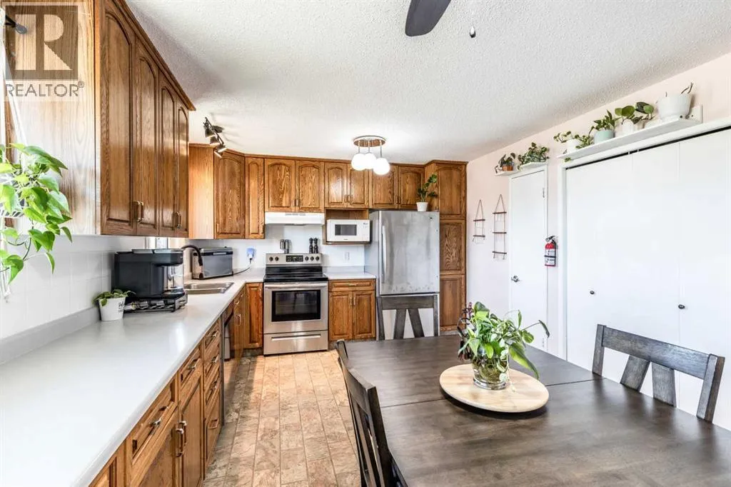 Welcome to this fully finished bi-level located in a family-friendly SE neighbourhood close to schools, shopping, and surrounded by parksâoffering exceptional space and functionality for a growing family. With 5 bedrooms (3 up, 2 down) and multiple living areas, this home is designed for comfortable everyday living. The main floor features a bright and spacious front living room highlighted by a cozy electric fireplace. The large kitchen offers classic oak cabinetry, ample counter space, and a generous dining area ideal for family meals and entertaining alike. Youâll also find three well-sized bedrooms on the main level, including the primary bedroom with a walk-in closet and patio doors leading directly to the back deck. An updated 4-piece bathroom completes this floor. The fully developed lower level has been beautifully refreshed with new flooring and fresh paint throughout, creating a bright and inviting second living space. Here youâll enjoy a large family room with a gas fireplace, a wet bar with sink âperfect for entertainingâplus two additional bedrooms, a renovated 3-piece bathroom, a large flex room, laundry area, and abundant storage. A convenient walkout provides direct access to the backyard. Outside, the spacious yard offers something for everyone, featuring a large garden area with raspberry bushes, a covered pergola space ideal for a future hot tub, and extra storage. There is a double parking pad with room for RV parking, along with a detached garage featuring a new insulated overhead door and opener, new man door, and updated windows. Extensive updates provide peace of mind, including appliances (2022), paint, windows (2022â2026), roof (2022), central A/C (2022), gas and electric fireplaces (2022), and new gates (2026). Move-in ready and offering excellent space both inside and out, this is a fantastic opportunity in a sought-after SE location. (id:27476)