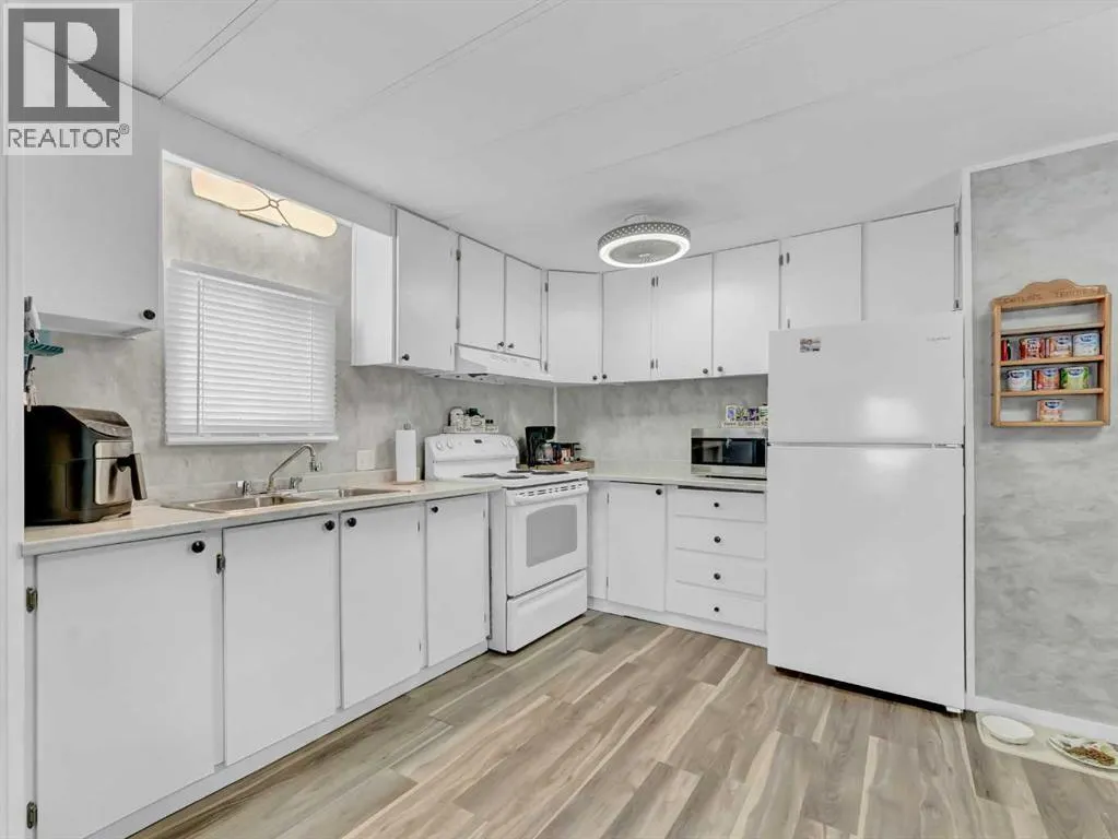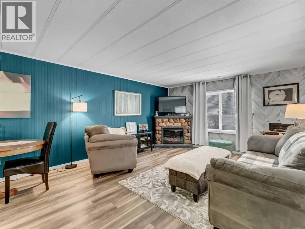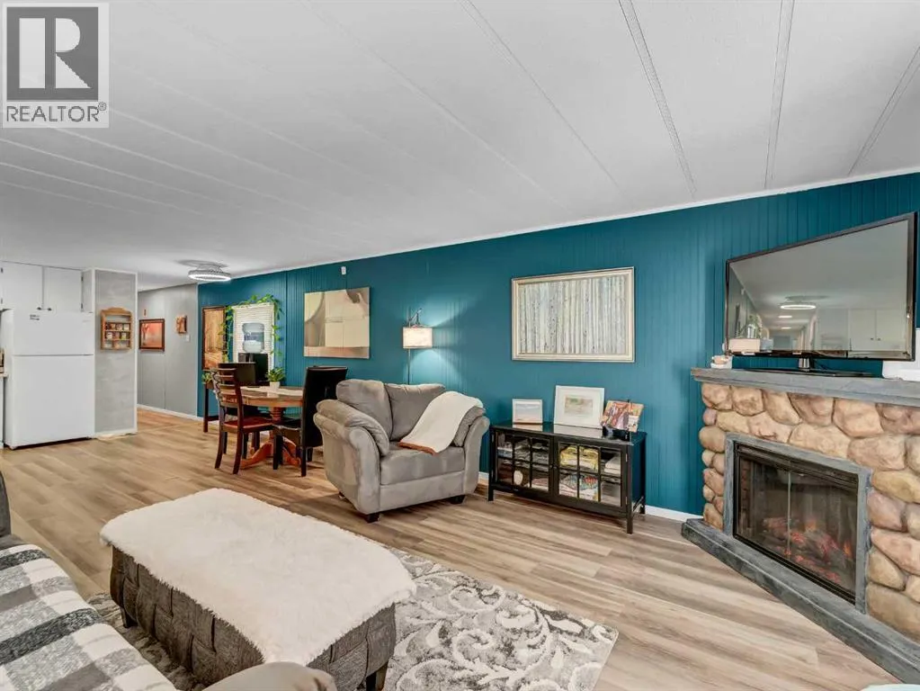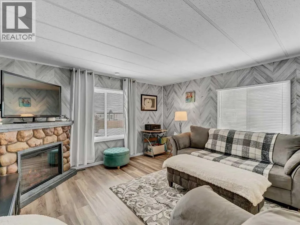 Step into this stylish and inviting 2-bedroom home, where a bright atmosphere greets you. The open-concept layout connects the kitchen, dining, and living areas, making it easy to enjoy time together. The bathroom has been thoughtfully updated, and durable flooring throughout offers low-maintenance comfort. Cozy up to the corner fireplace with a good book or a hot beverage on those chilly days or spend summer evenings beneath the spacious pergola after puttering in the fenced, roomy yard, which features plum and crab apple trees. A rechargeable lawnmower is also included with the purchase â no long chords to trip over! Newer vinyl windows have been installed as well as new blinds for most of the windows. For low maintenance and stress free living, this is the one for you! This home is located in a well maintained park that has a playground for the kids and is close to restaurants, shopping, schools, walking trails, public transit and much more! It's almost springtime planting season, so now is the perfect time to make the move! Utilities are included in the pad fee except for electricity. (id:27476)