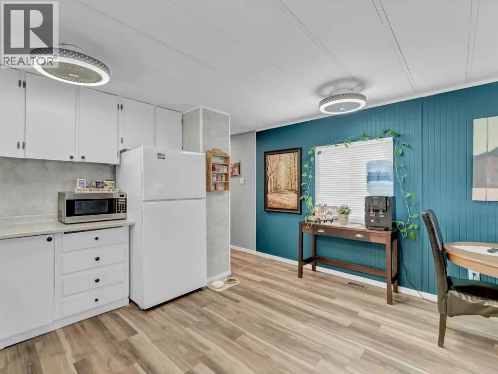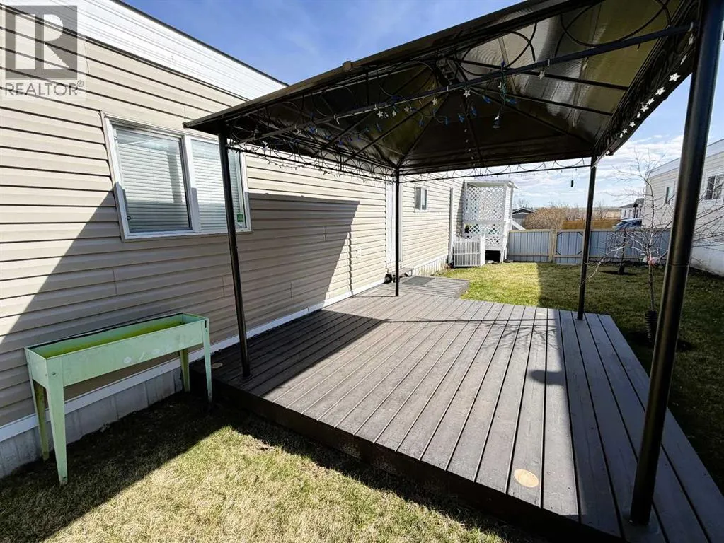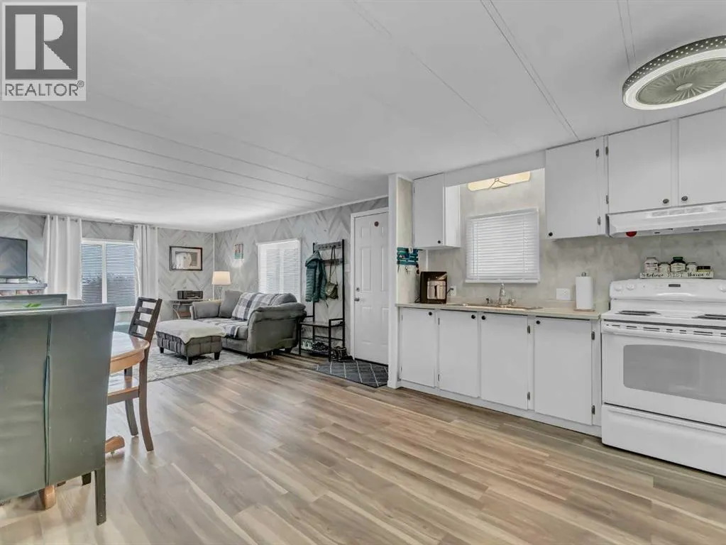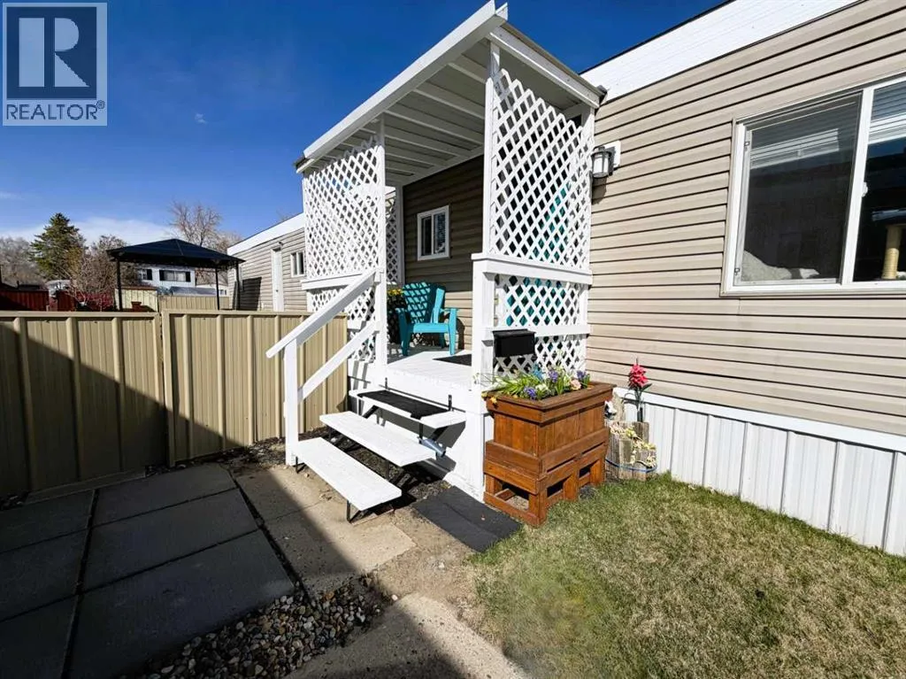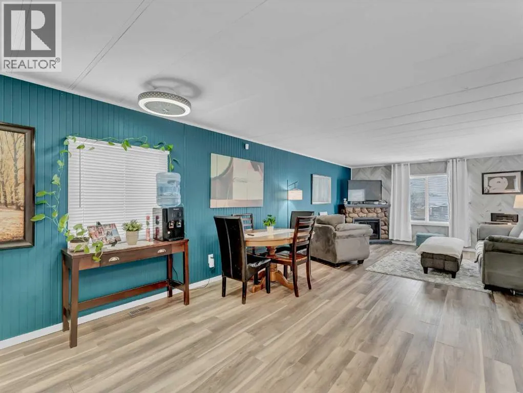 Step into this stylish and inviting 2-bedroom home, where a bright atmosphere greets you. The open-concept layout connects the kitchen, dining, and living areas, making it easy to enjoy time together. The bathroom has been thoughtfully updated, and durable flooring throughout offers low-maintenance comfort. Cozy up to the corner fireplace with a good book or a hot beverage on those chilly days or spend summer evenings beneath the spacious pergola after puttering in the fenced, roomy yard, which features plum and crab apple trees. A rechargeable lawnmower is also included with the purchase â no long chords to trip over! Newer vinyl windows have been installed as well as new blinds for most of the windows. For low maintenance and stress free living, this is the one for you! This home is located in a well maintained park that has a playground for the kids and is close to restaurants, shopping, schools, walking trails, public transit and much more! It's almost springtime planting season, so now is the perfect time to make the move! Utilities are included in the pad fee except for electricity. (id:27476)