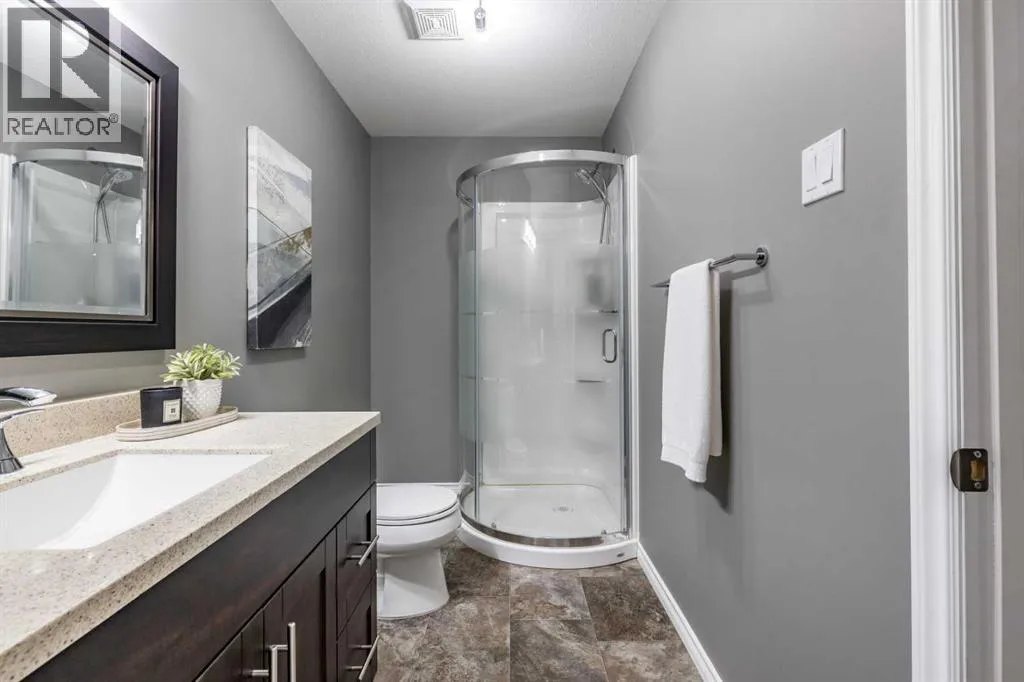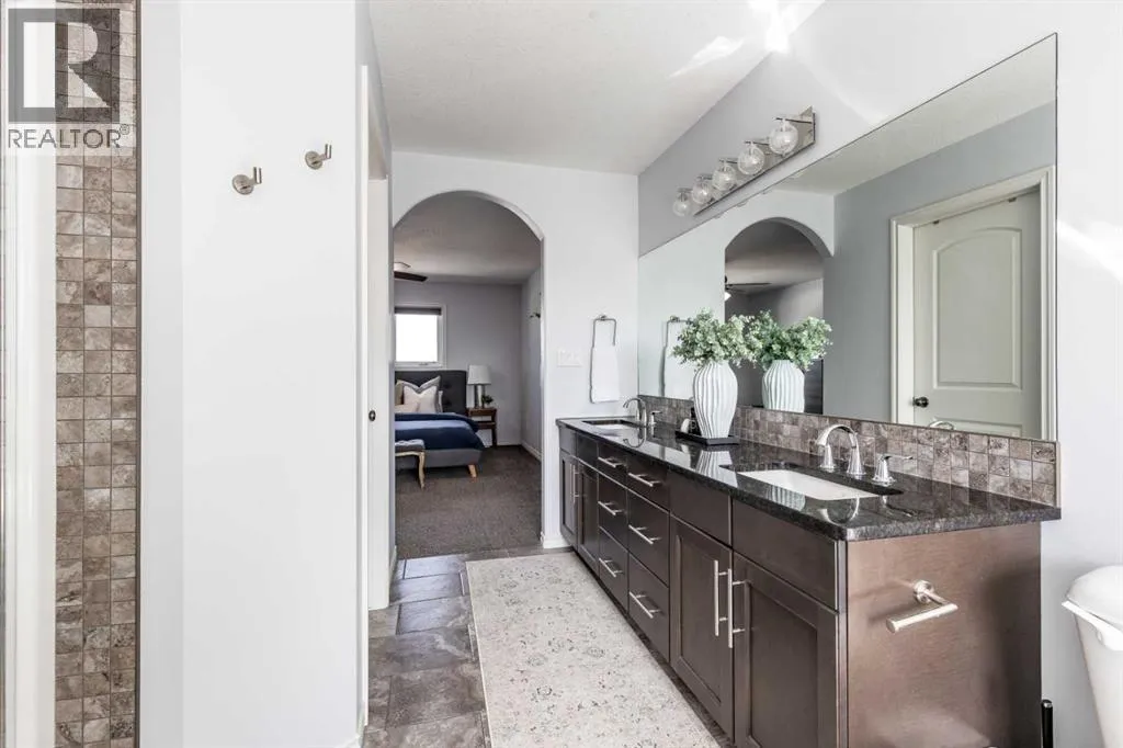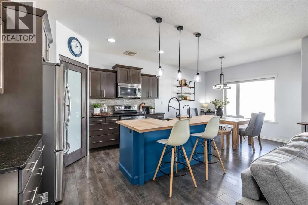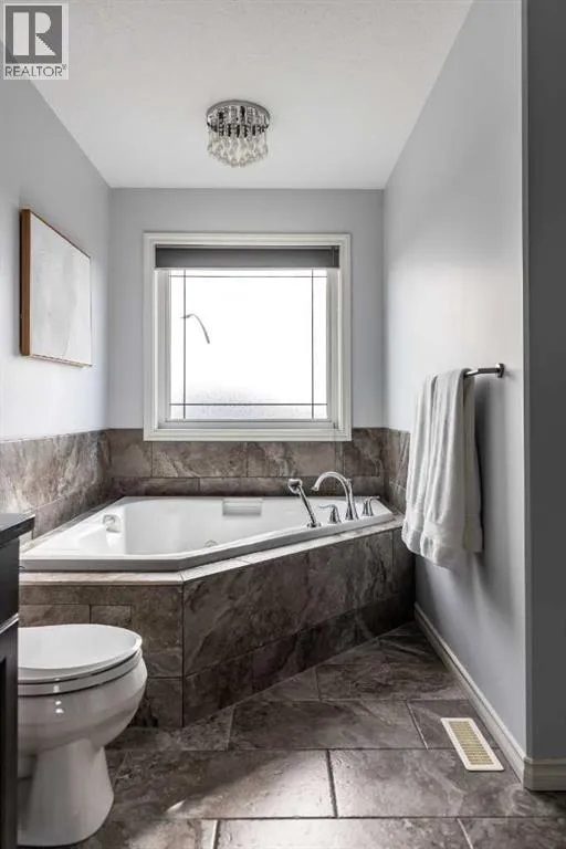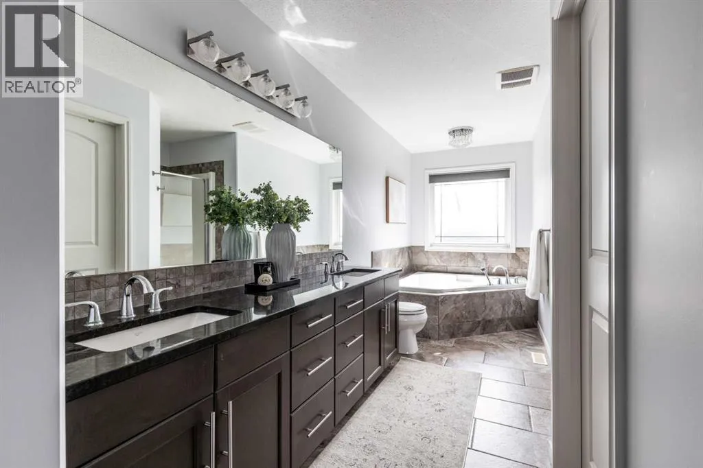 This is the one you've been waiting for!! Beautiful family home with a Triple Garage!! The quality craftsmanship and stylish finishes come together beautifully in this impressive family home, recently painted throughout the main and upper floor; it's fresh and modern. The heart of the home is a stunning kitchen with charcoal-stained maple cabinetry, granite countertops, tiled backsplash, and upgraded lighting. This is all anchored by the cool refreshed island with a custom Billy Blocks Countertop. A bright eating area spills onto a large covered deck, where you can watch the morning sunrise with your coffee in hand. The open living room with gas fireplace is made for gathering. Upstairs, three generous bedrooms await, including a master retreat complete with a corner jetted tub, separate shower, double sinks, and a large walk-in closet. Downstairs, the fully finished lower level offers a cozy family room, games area, and plenty of space for a fourth bedroom, all complemented by a three-piece bathroom. The triple-attached heated garage with floor drain is a standout bonus, featuring a welcoming landing with lift-up benches and tons of storage. Step outside to a yard built for living, buyers will love the gorgeous Trex patio, a boxed garden with underground sprinklers, and enclosed storage tucked neatly under the deck. Vinyl Fence and direct access to the walking path behind is so incredibly handy! Need groceries in a pinch while getting in your 10,000 steps?! This location is perfect! Not far off is one of the coolest parks in the city! Come see it for yourself â you won't be disappointed. (id:27476)