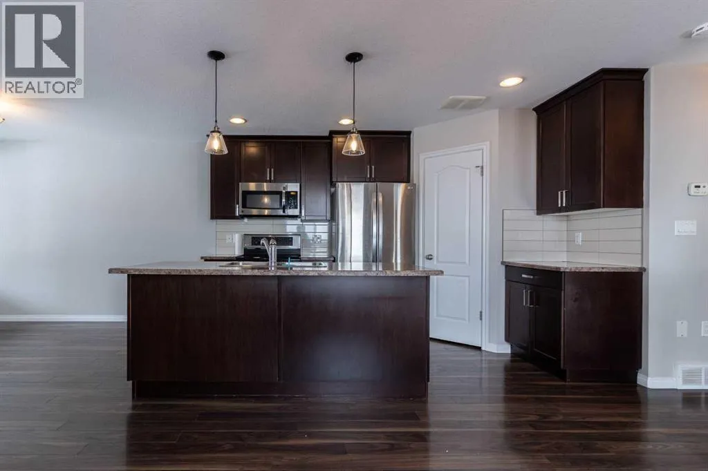Attention First-Time Buyers, Retirees, Growing Families & Investors!Ideally located in the heart of the city, this well-maintained half duplex offers unbeatable convenienceâjust steps from the college, Kin Coulee Park, and a wide range of amenities. Enjoy the rare combination of a newer home in an established neighbourhood, delivering both comfort and location.Designed with functionality in mind, the open-concept main floor provides a versatile layout perfect for everyday living and entertaining. The kitchen features ample cabinetry and counter space, a corner pantry, and a central island that flows seamlessly into the dining area and spacious living room. Cozy up by the gas fireplace or step out onto the private covered deckâideal for relaxing or hosting guests.The main level is complete with a generous primary bedroom and a full 4-piece bathroom, offering convenient single-level living if desired.Downstairs, youâll find three additional well-sized bedrooms, with the flexibility to convert one into a family room or rec space to suit your needs. A large laundry/mudroom provides direct access to the finished garage, adding to the homeâs practicality. Recent upgrades include a newer a/c, hwt, paint and a new washing machine. Low-maintenance, move-in ready, and available for quick possessionâthis is an excellent opportunity in a sought-after location. Book your showing today! (id:27476)