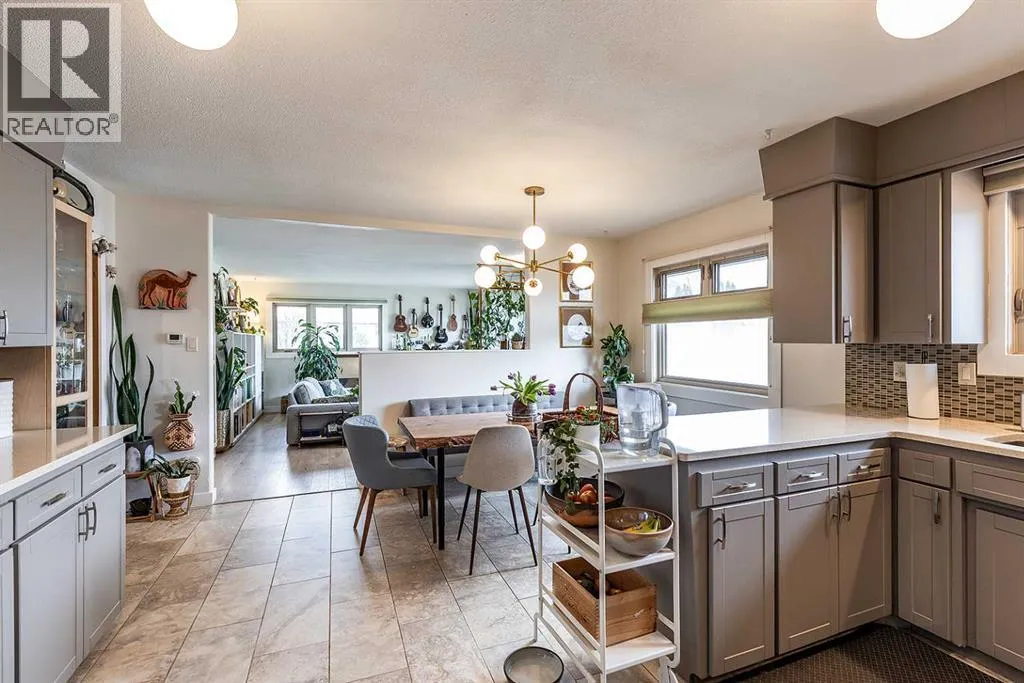 Welcome to this mid-century modern brick bungalow on the Southwest Hill! Ideally situated on a massive 6925 sq ft fenced and landscaped corner lot backing onto a park - this 5 bedrooms and 2 bathroom house checks so many boxes! Stepping inside, this well-maintained home showcases a bright, open concept living room that flows seamlessly into the dining area and kitchen which features updated light fixtures, newer stainless steel appliances, quartz countertops and beautiful main floor vinyl plank flooring (installed in December 2024). The main floor also includes convenient main floor laundry, a 4 piece bathroom (recently refreshed with a new fan, showerhead, and toilet) and 3 good sized bedrooms. The updated downstairs features a large recreation room, 2 more good sized bedrooms (with updated closet doors), an updated 3 piece bathroom. Donât forget to look behind the curtain next to the stairs to see the storage area / flex space. Outside, the yard has been thoughtfully landscaped with garden boxes and recently added fruit trees and shrubs. This lot also features a concrete patio, 2 storage sheds, a new fence added in 2023, and still ample space for potential RV parking or a future garage to be built along with the existing carport. Major updates provide peace of mind, including a brand new high efficiency furnace (installed in August 2025), tar and gravel roof (2022), new dishwasher and stove (2023), hot water on demand system (2023), and new washer and dryer (2025). This move-in-ready home combines thoughtful updates, functional space, and a prime location - perfect for comfortable living and future potential. (id:27476)