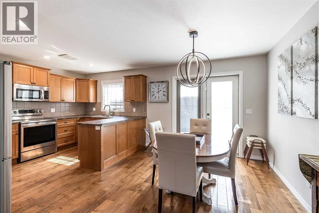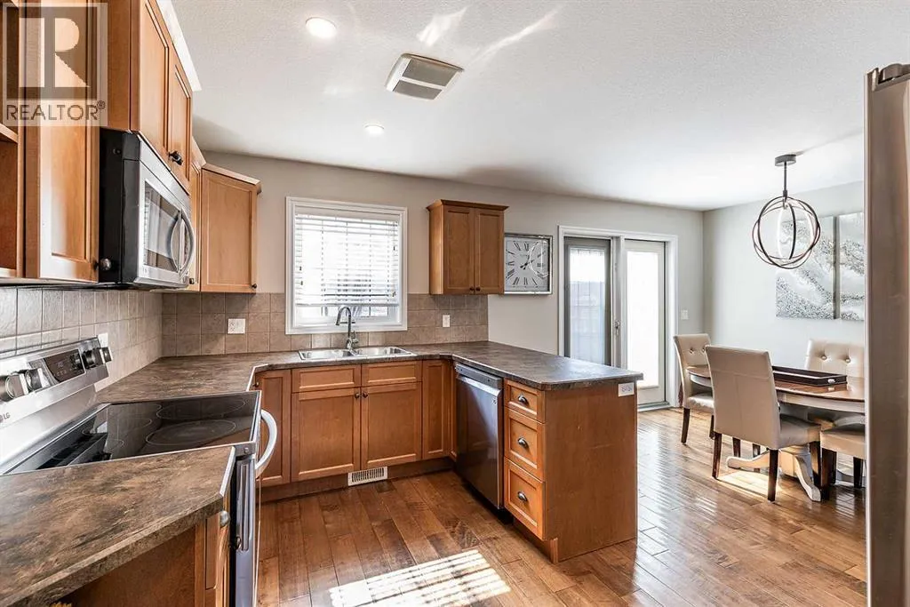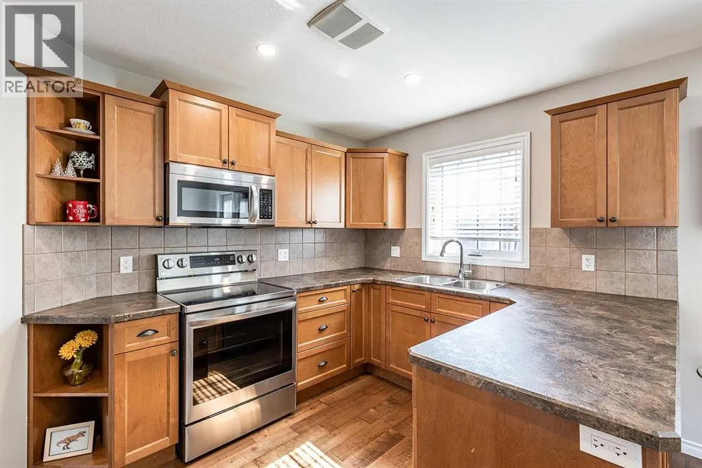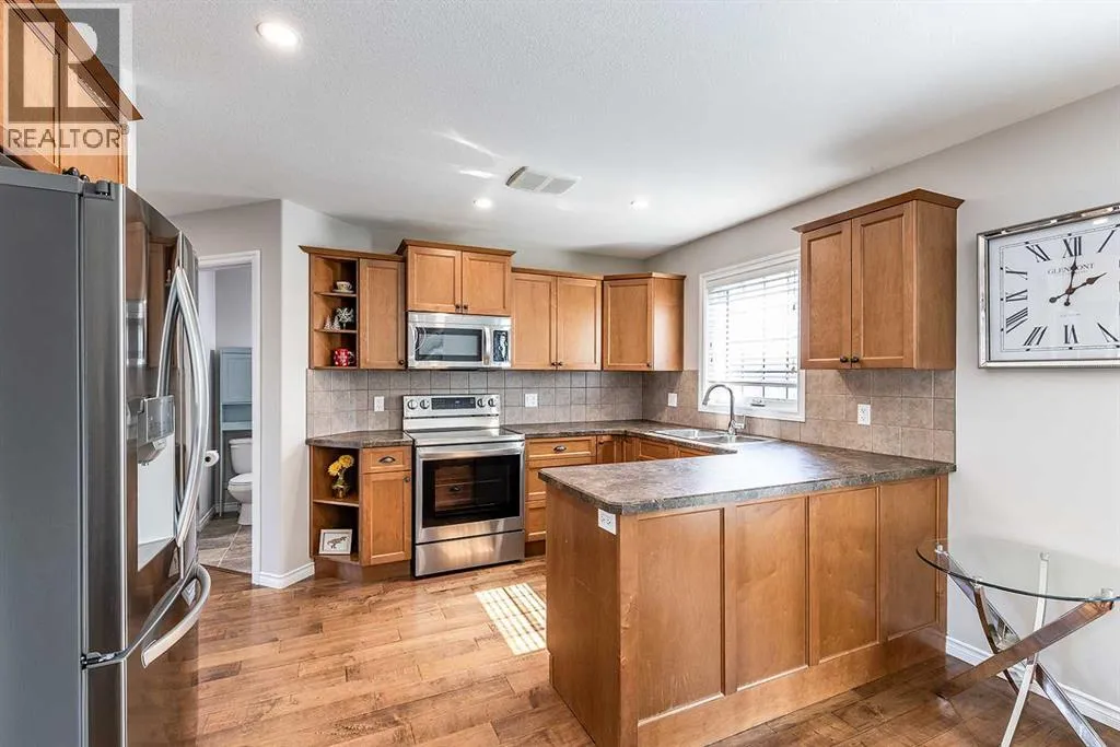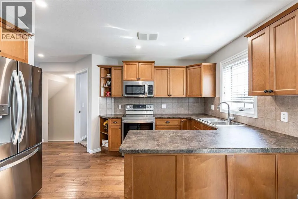 Welcome to Ranchlands â where this move-in ready home checks every box. Hardwood floors, flooded with natural light from oversized main floor windows, set the tone the moment you walk in. The kitchen is built for real life with plenty of maple cabinetry, generous counter space, and updated appliances (2021). A convenient powder room with in-suite laundry (washer/dryer 2021) and direct backyard access round out a main floor that just works. Upstairs, three well-sized bedrooms offer comfort and flexibility. The primary bedroom fits a king with room to spare. The main bath is a standout with a jetted soaker tub, separate shower, and more space than you'd expect. The lower level is where this home truly steps ahead: a fully finished, permitted basement with a 3-piece bathroom ready for a family room, home office, or gym. Out back, a private deck with gazebo (2021) overlooks a fully sodded yard (2022) with enough room for a future garage or RV pad, a rare find in an established neighbourhood. Additional updates include a new hot water tank (2022). This one is priced to move and built to impress. (id:27476)