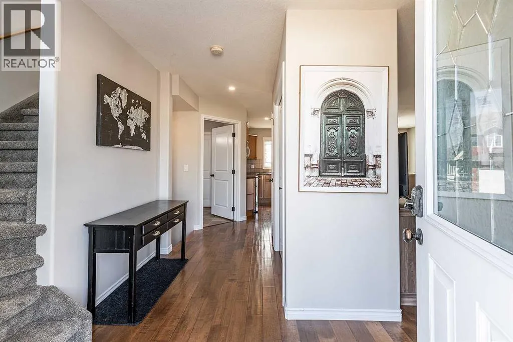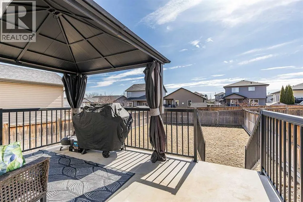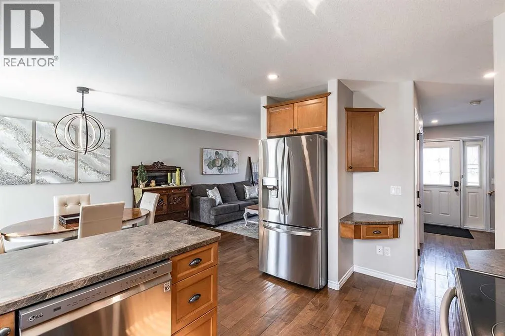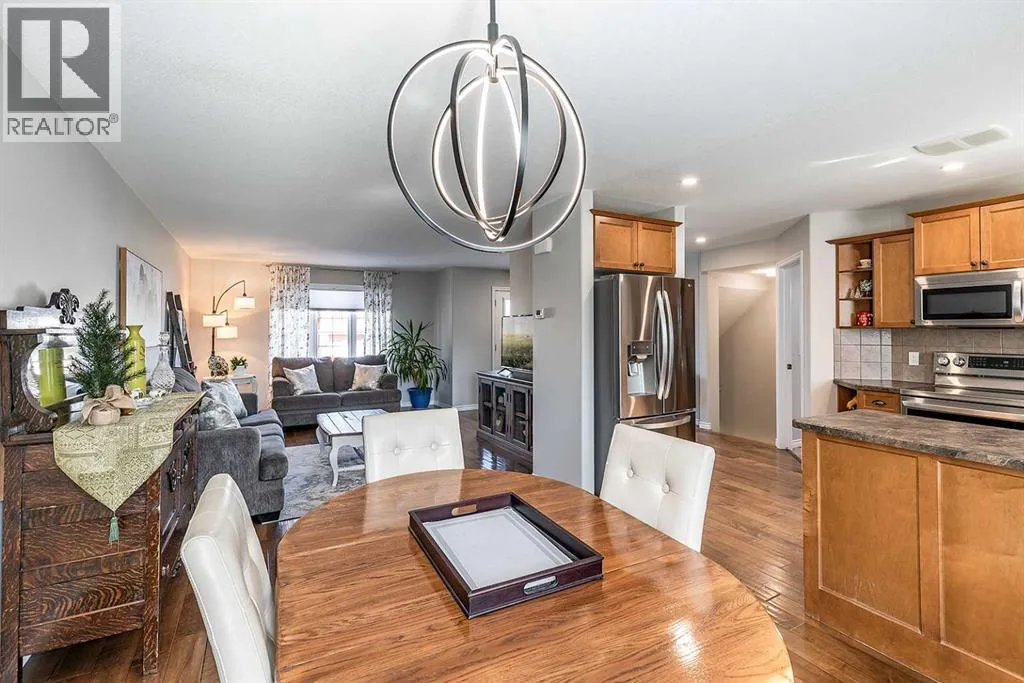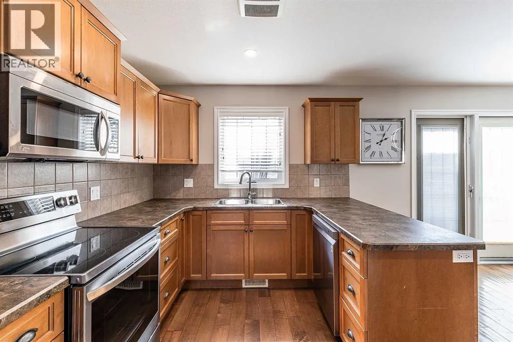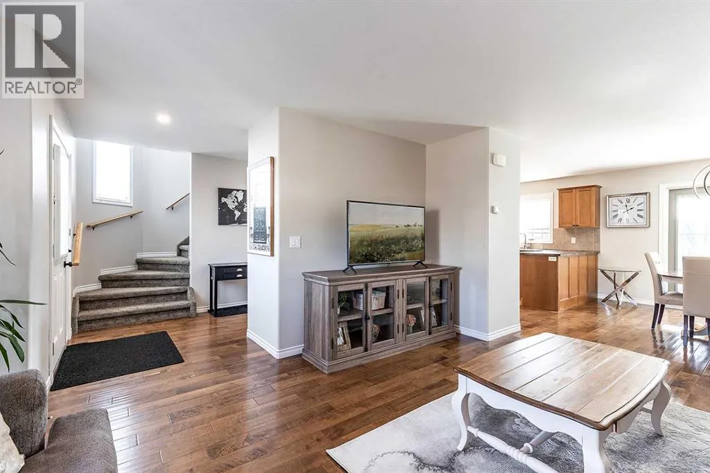 Welcome to Ranchlands â where this move-in ready home checks every box. Hardwood floors, flooded with natural light from oversized main floor windows, set the tone the moment you walk in. The kitchen is built for real life with plenty of maple cabinetry, generous counter space, and updated appliances (2021). A convenient powder room with in-suite laundry (washer/dryer 2021) and direct backyard access round out a main floor that just works. Upstairs, three well-sized bedrooms offer comfort and flexibility. The primary bedroom fits a king with room to spare. The main bath is a standout with a jetted soaker tub, separate shower, and more space than you'd expect. The lower level is where this home truly steps ahead: a fully finished, permitted basement with a 3-piece bathroom ready for a family room, home office, or gym. Out back, a private deck with gazebo (2021) overlooks a fully sodded yard (2022) with enough room for a future garage or RV pad, a rare find in an established neighbourhood. Additional updates include a new hot water tank (2022). This one is priced to move and built to impress. (id:27476)