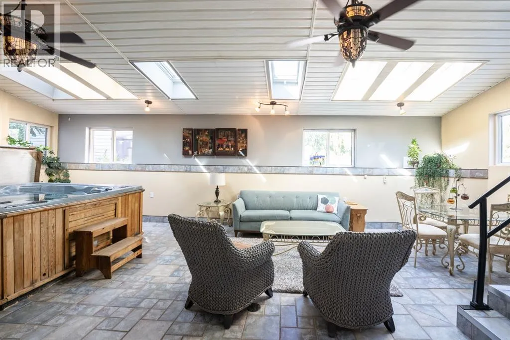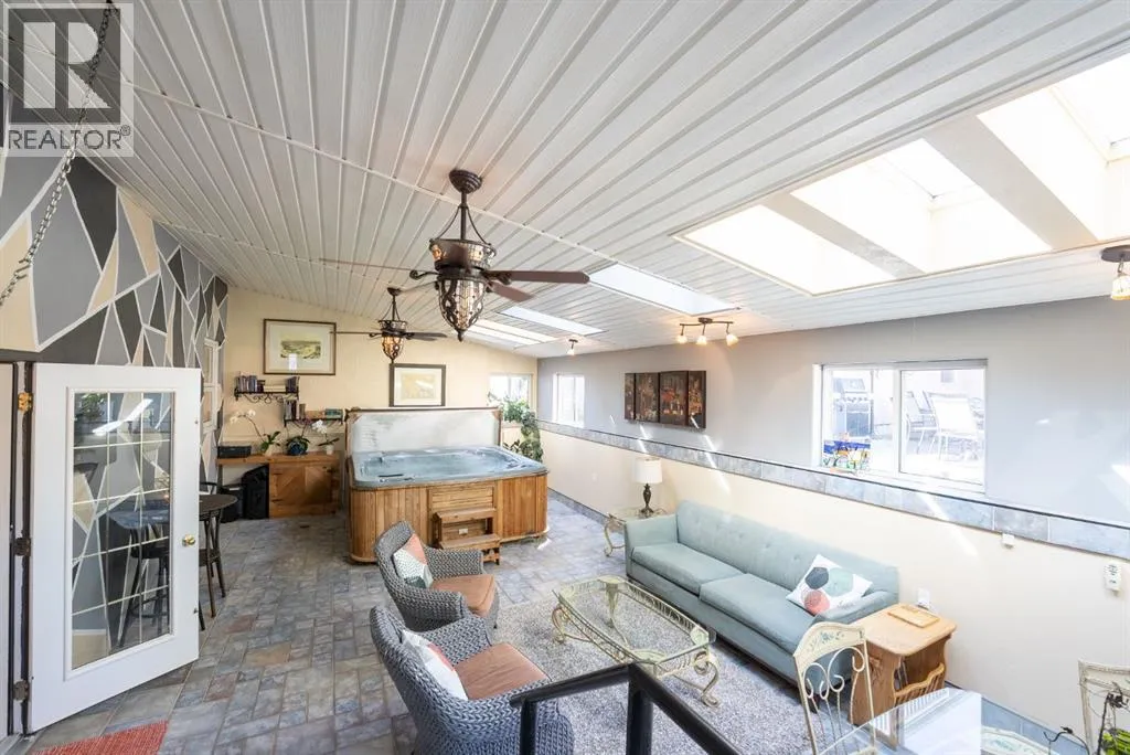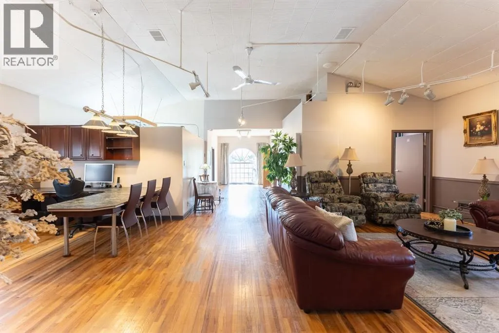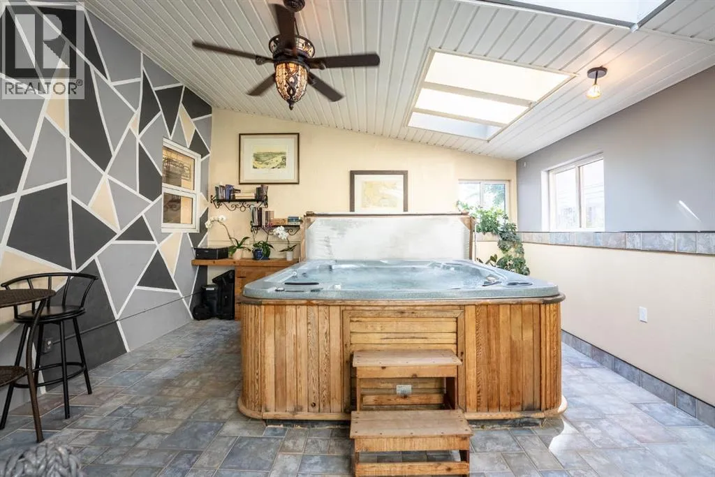 Where History Meets HeartA truly one-of-a-kind property in Southern Alberta, this former church has been beautifully transformed into a stunning residence that blends timeless character with modern comfort.Offering nearly 5,000 sq. ft. of finished living space, this home is as functional as it is inspiring. Original maple hardwood floors, soaring spaces, and thoughtful updates create a warm, inviting atmosphere throughout. The open-concept main floor is bright and expansiveâperfect for everyday living and entertaining.The chefâs kitchen features generous prep space, custom cabinetry, and seamless flow into a sun-filled solarium complete with skylights, in-floor heating, and a hot tubâyour private year-round retreat.The fully developed lower level has been professionally reinforced with steel I-beams and offers a spacious, light-filled extension of the home with its own walk-up access.Upstairs, a stunning loft-style space with 12â ceilings and original oak floors offers incredible flexibilityâideal for a studio, office, or private retreat.Situated on three beautifully landscaped city lots, the outdoor space is a rare in-town sanctuary with mature trees, garden beds, firepit areas, and exceptional privacy.The oversized heated garage (26x28) is complemented by a fully legal, detached one-bedroom suite aboveâcomplete with a full bath (tub/shower), in-suite laundry, A/C, and a private balcony overlooking the yard. Perfect for guests, extended family, or rental income.Additional features include a metal roof, ample parking, gated RV space, and a reinforced parking pad.This is more than a homeâitâs a rare opportunity to own something truly special (id:27476)