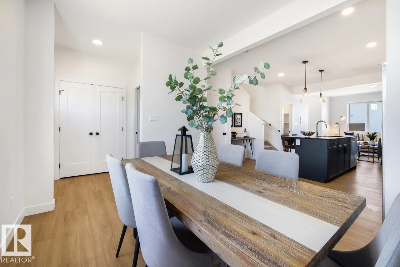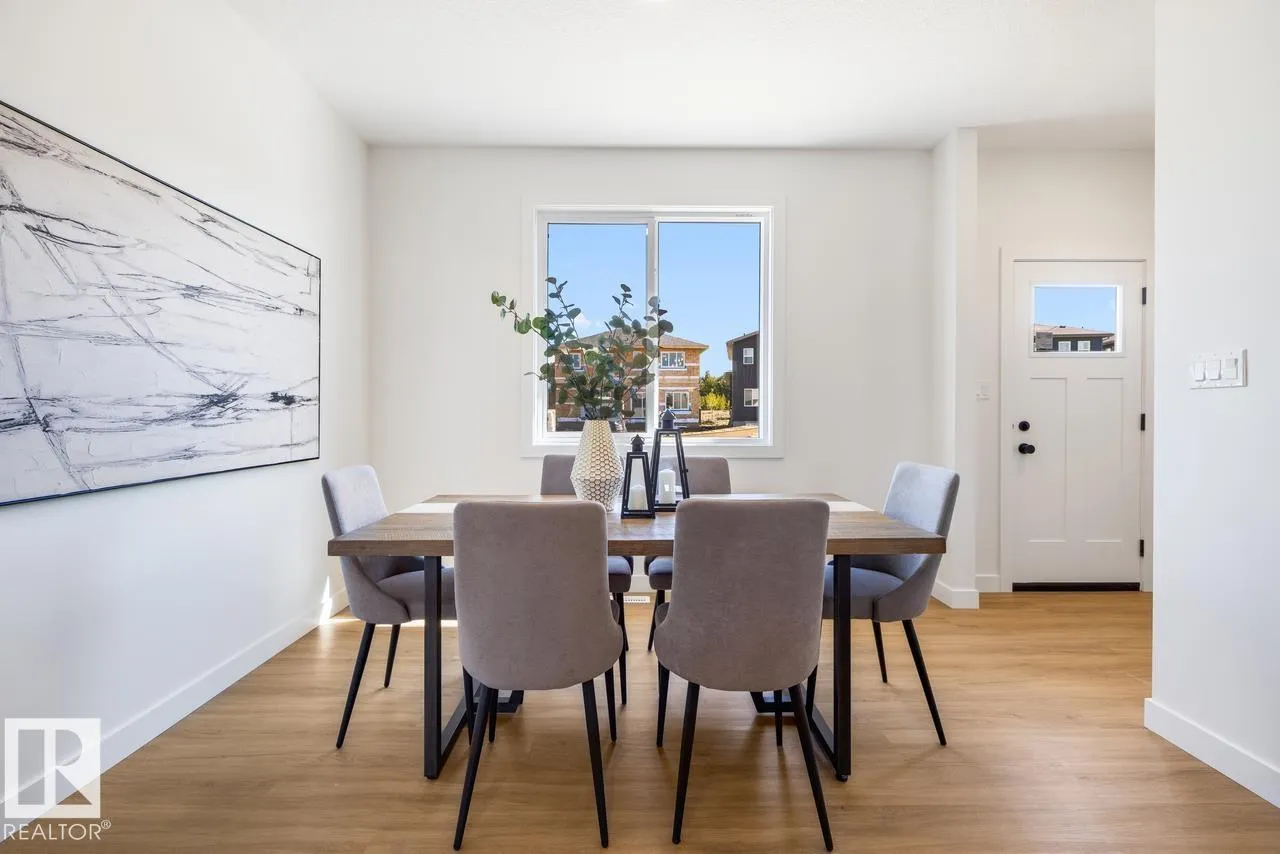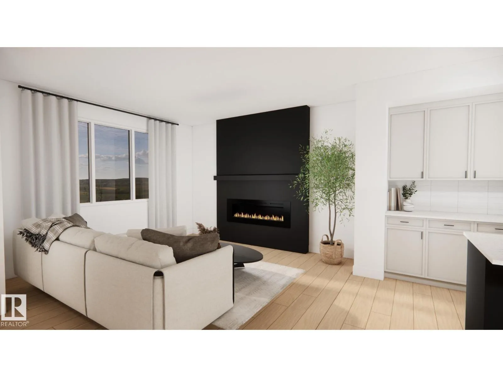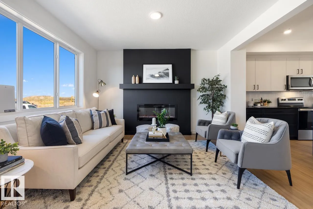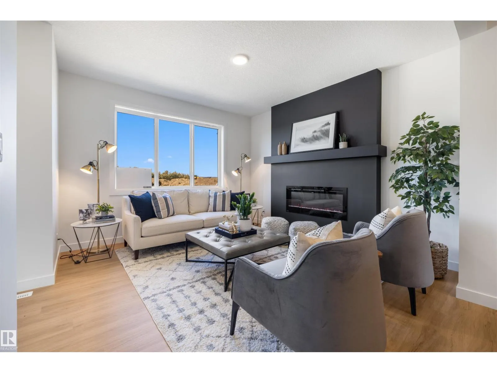 Located just a short drive from St. Albert, this stunning 5-bedroom, 3.5-bathroom home offers over 1500 sq ft of modern living space in the desirable community of Morinville. Built by Attesa Homes, this property features an open-concept design perfect for entertaining and everyday living. The main floor boasts a spacious living area with an electric fireplace and a walk-in pantry, providing both style and functionality in the kitchen. Upstairs, the primary bedroom offers a serene retreat, complete with a beautifully designed ensuite. The fully finished basement makes for even more liveable space and outside you will find a double detached garage. The photos and renderings used are from a design or recently built home and colours & finishings may vary. (id:27476)