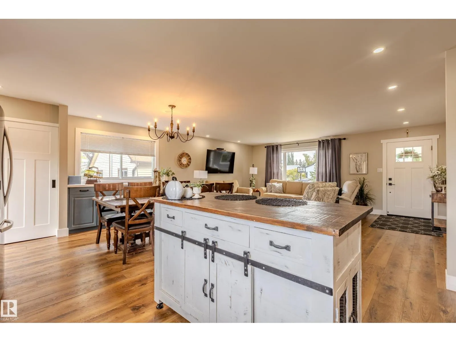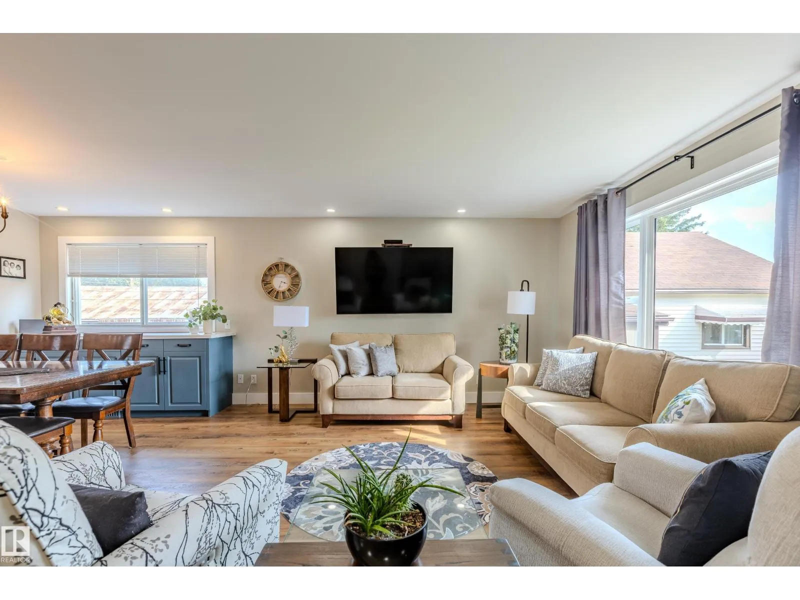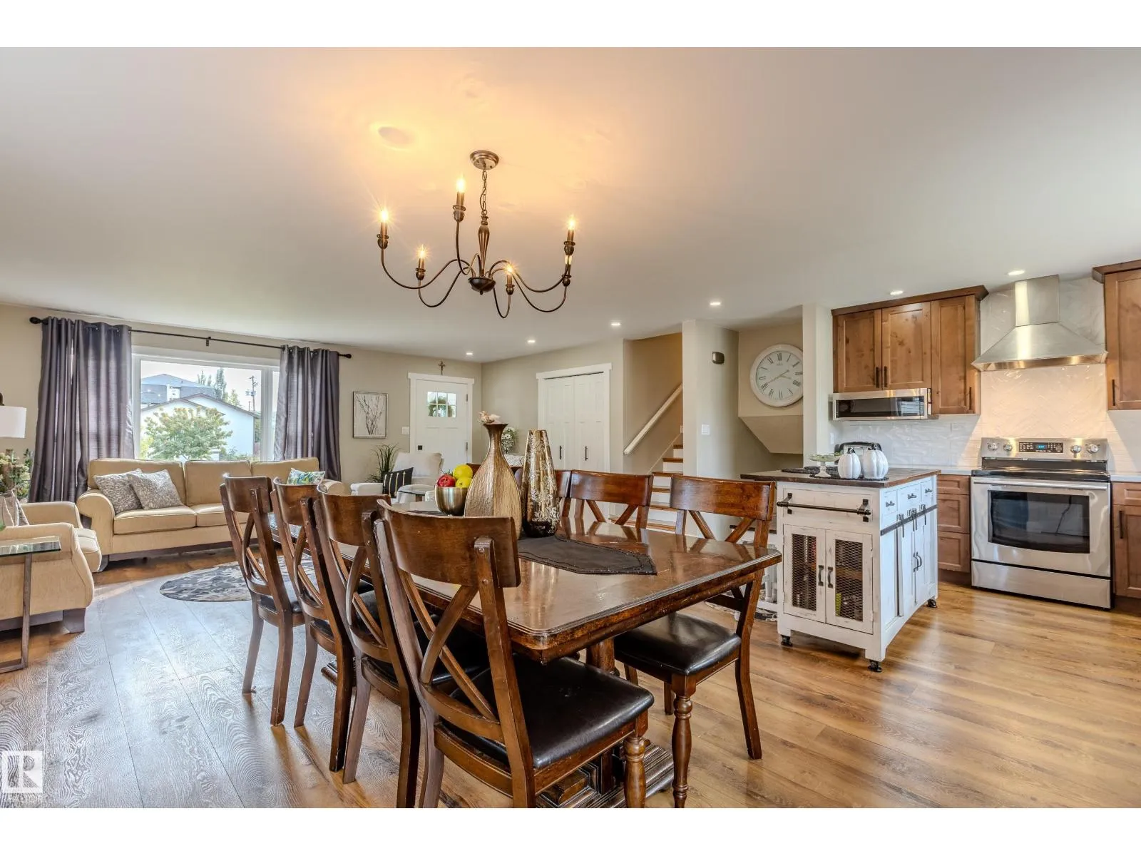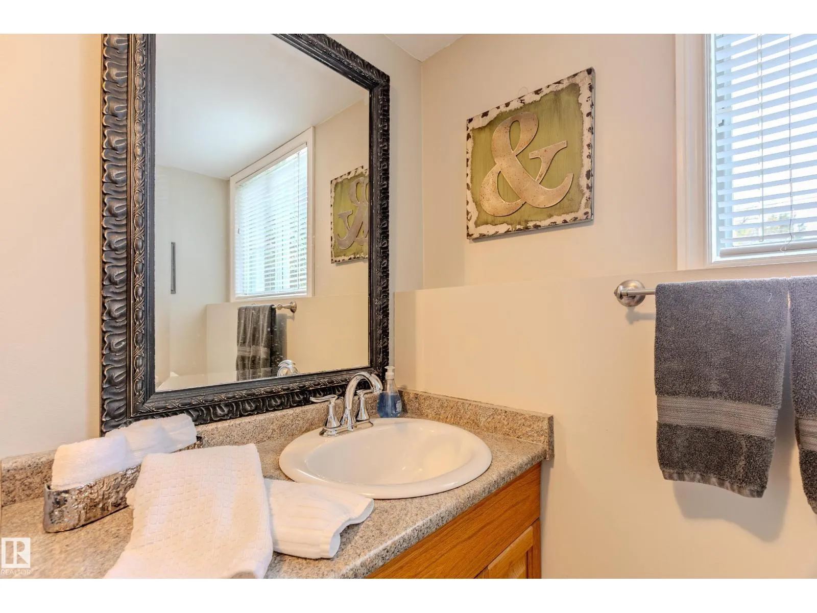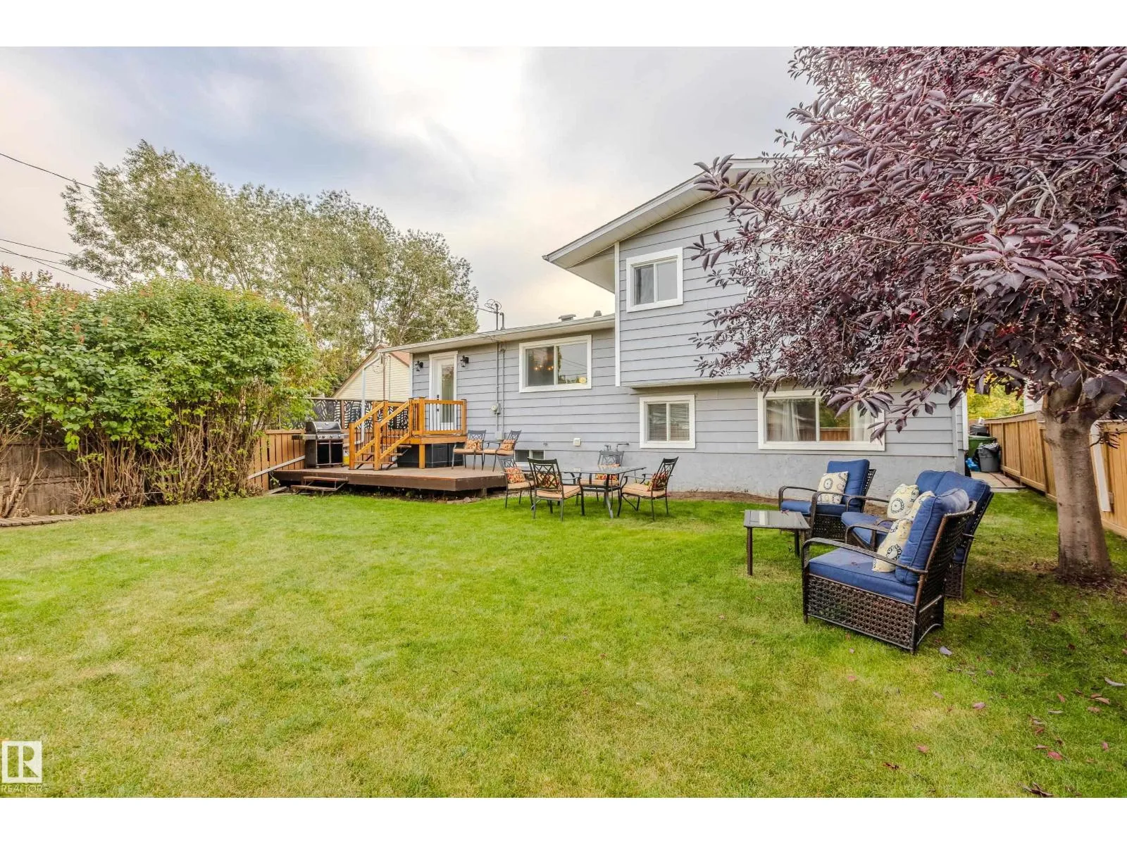Welcome to this beautiful 4-level back split home in the heart of Morinville! Offering 5 bedrooms, 2 full bathrooms, and 2 half baths, this spacious property is perfect for growing families. Enjoy the convenience of a heated double attached garage and walking distance to all schools! The open-concept main floor is designed for entertaining, with a bright living room, dining area, and a fully renovated kitchen showcasing updated cabinets, countertops, and backsplash. Upstairs youâll find a 4pc main bath, two generous junior bedrooms, and a primary suite complete with a private 2pc ensuite. The lower level boasts a large family room, 4th bedroom, and laundry with an additional 2pc bath. The basement is complete with a 5th bedroom, 3pc bath, and a versatile rec/storage area. Step outside to a beautifully landscaped yard featuring back lane access, a large shed, and newer fencing. Notable upgrades include 2x6 construction, furnace (2021), central A/C (2022), updated exterior (2015), newer roof, and much more! (id:27476)