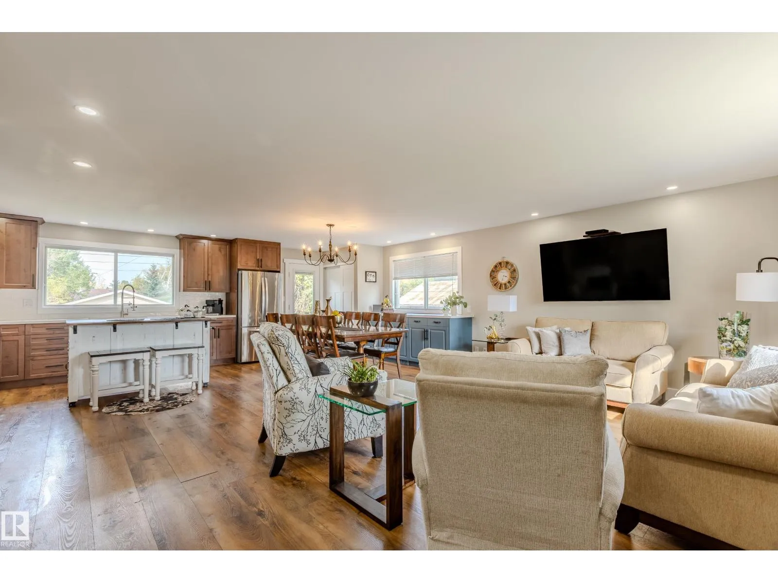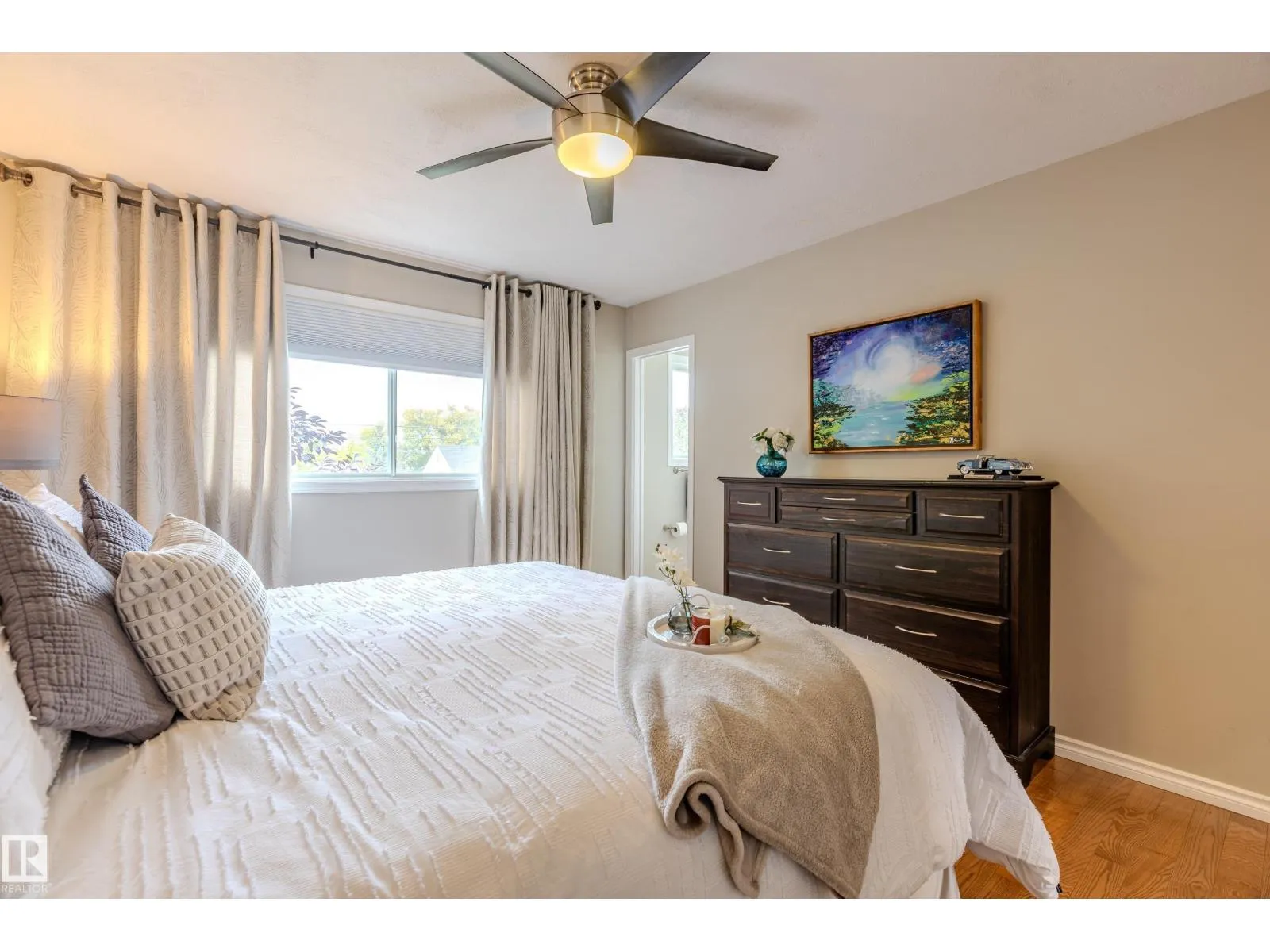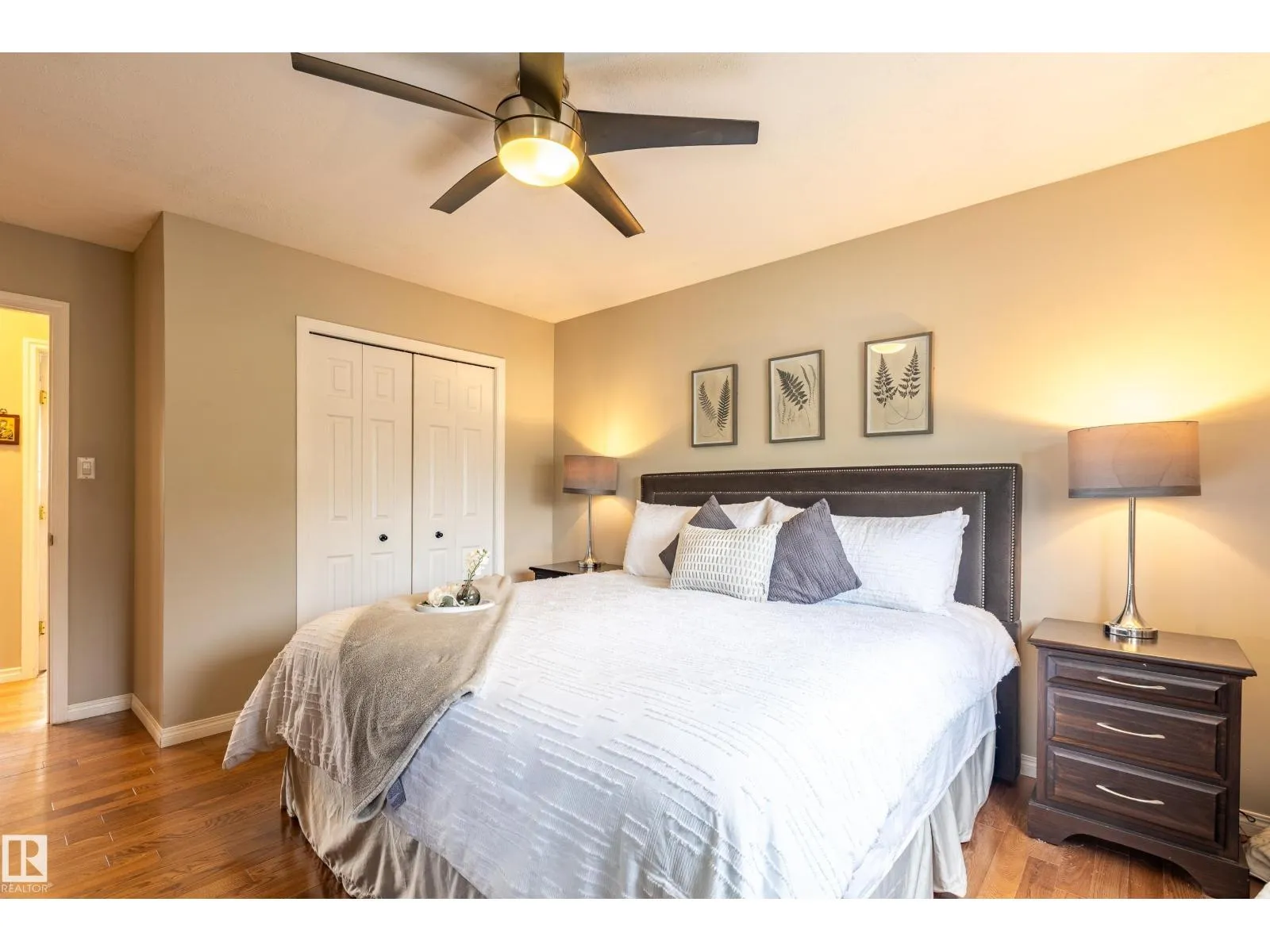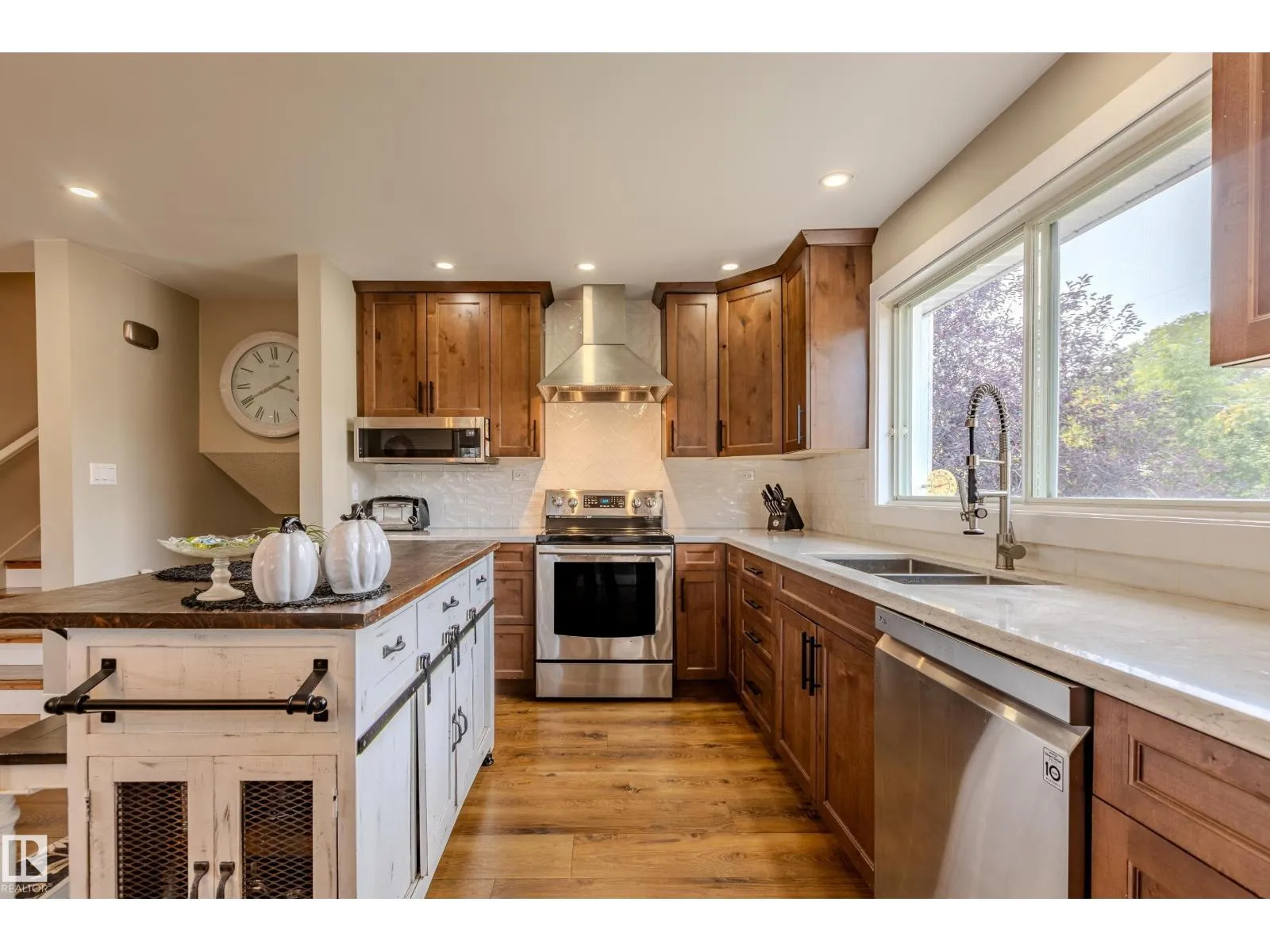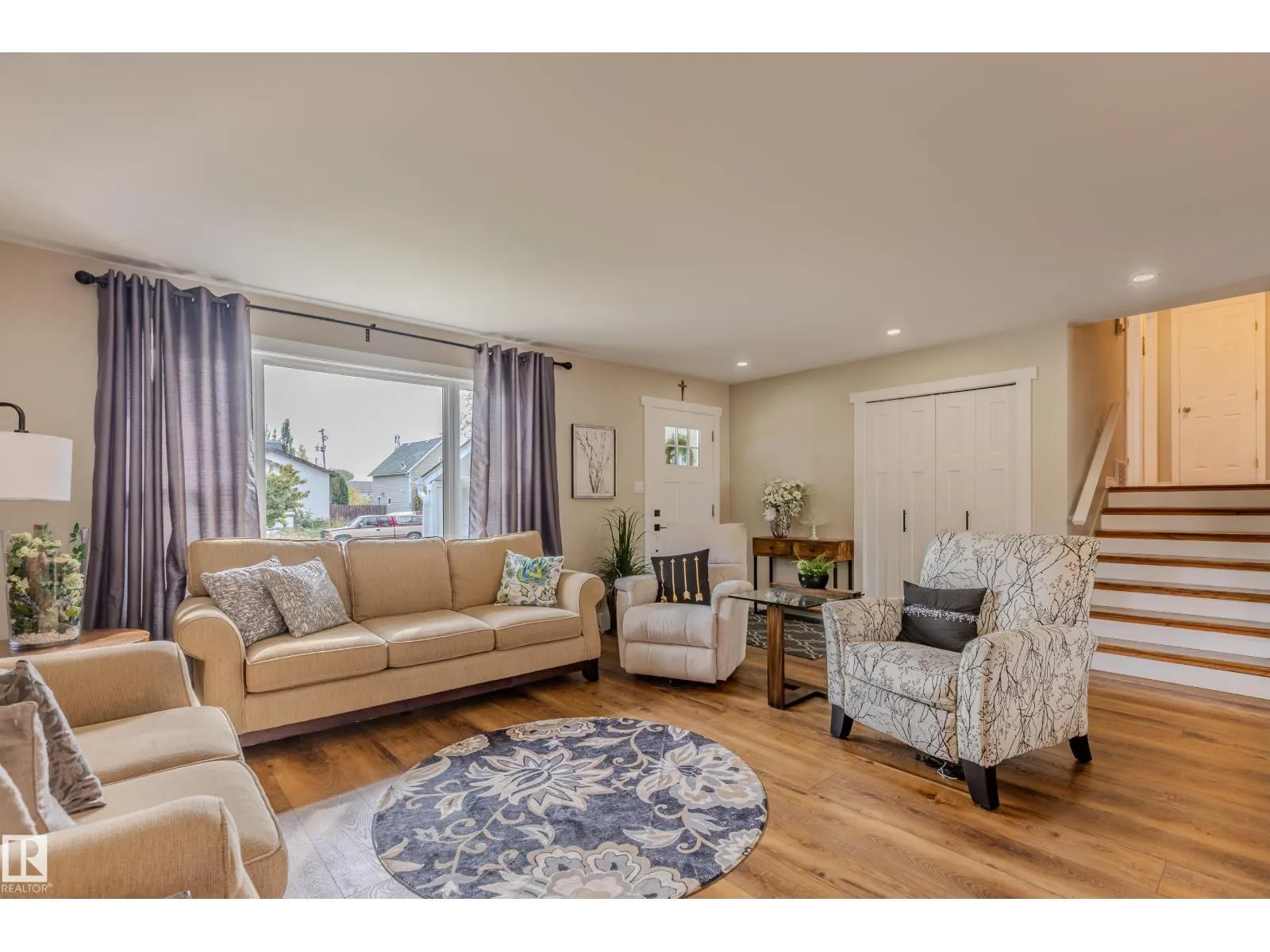 Welcome to this beautiful 4-level back split home in the heart of Morinville! Offering 5 bedrooms, 2 full bathrooms, and 2 half baths, this spacious property is perfect for growing families. Enjoy the convenience of a heated double attached garage and walking distance to all schools! The open-concept main floor is designed for entertaining, with a bright living room, dining area, and a fully renovated kitchen showcasing updated cabinets, countertops, and backsplash. Upstairs youâll find a 4pc main bath, two generous junior bedrooms, and a primary suite complete with a private 2pc ensuite. The lower level boasts a large family room, 4th bedroom, and laundry with an additional 2pc bath. The basement is complete with a 5th bedroom, 3pc bath, and a versatile rec/storage area. Step outside to a beautifully landscaped yard featuring back lane access, a large shed, and newer fencing. Notable upgrades include 2x6 construction, furnace (2021), central A/C (2022), updated exterior (2015), newer roof, and much more! (id:27476)