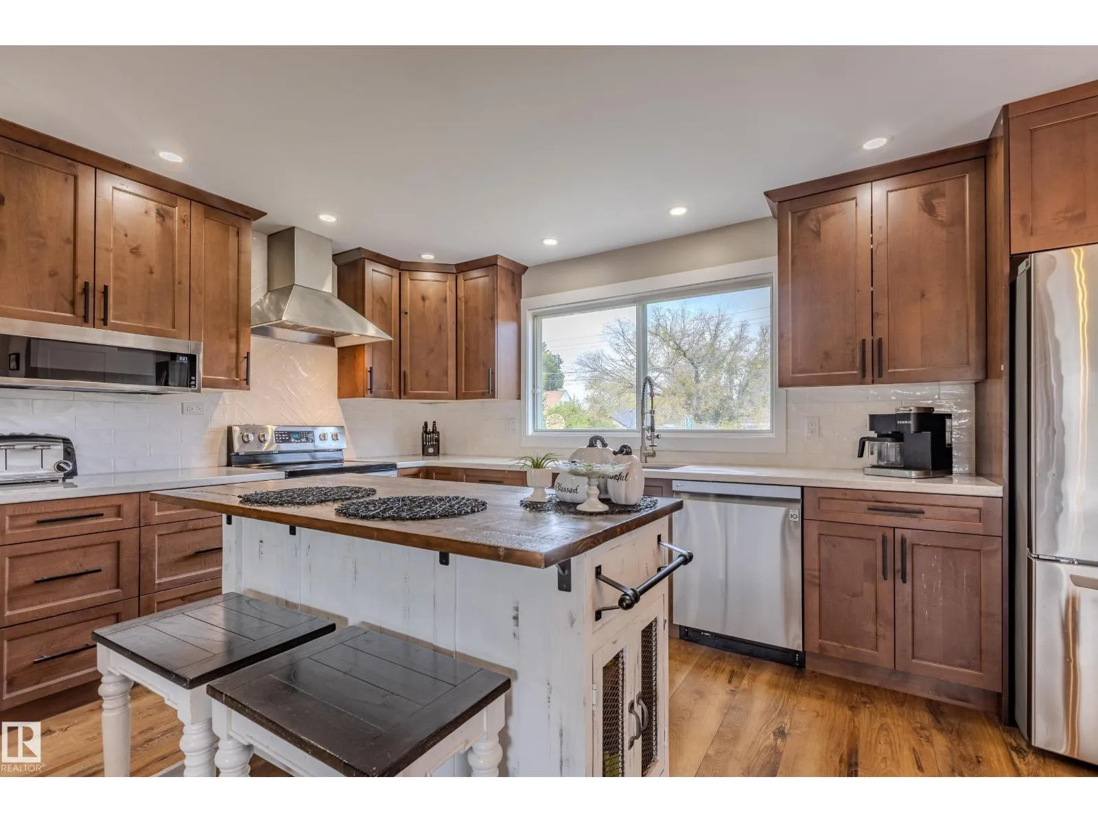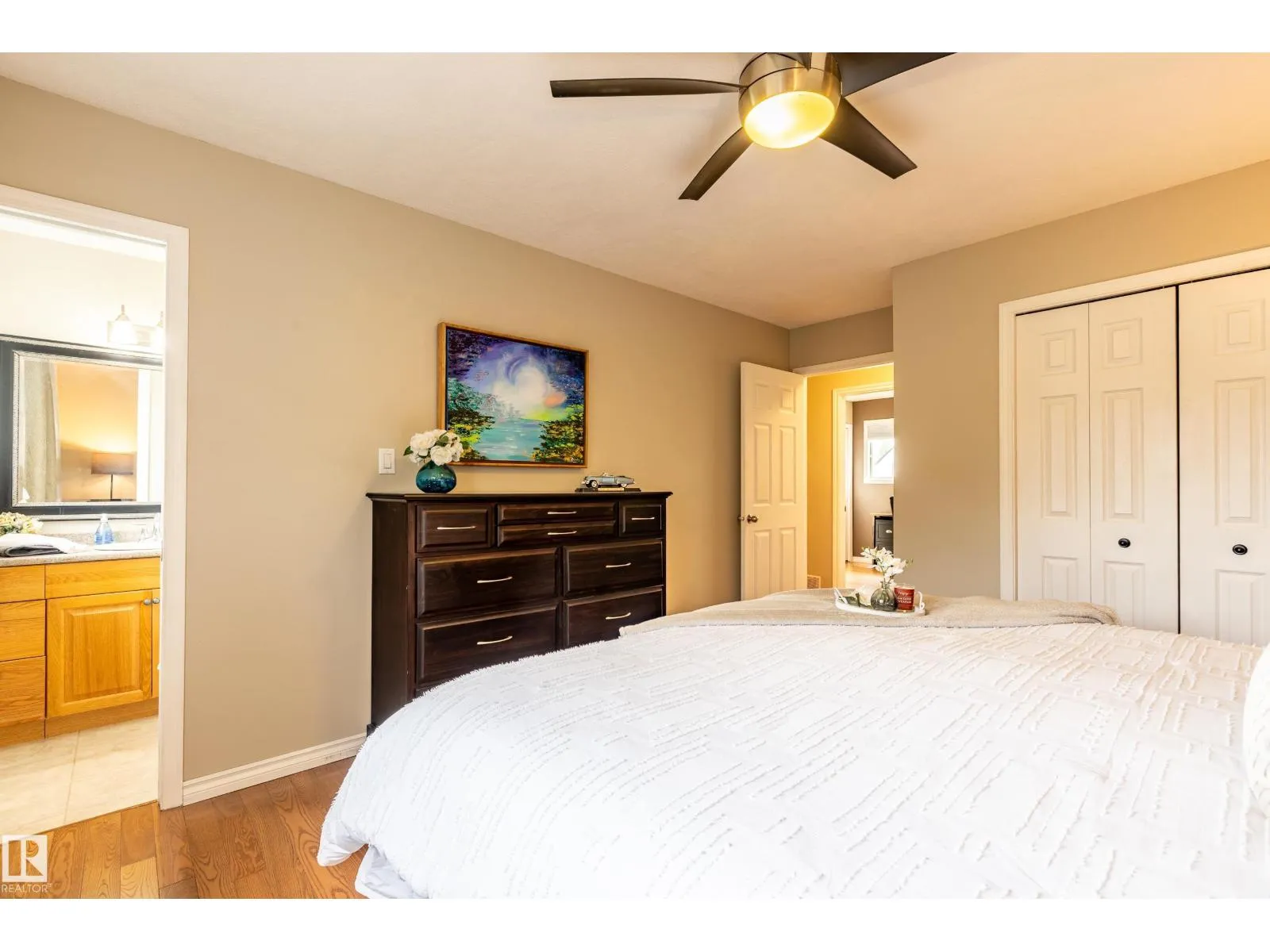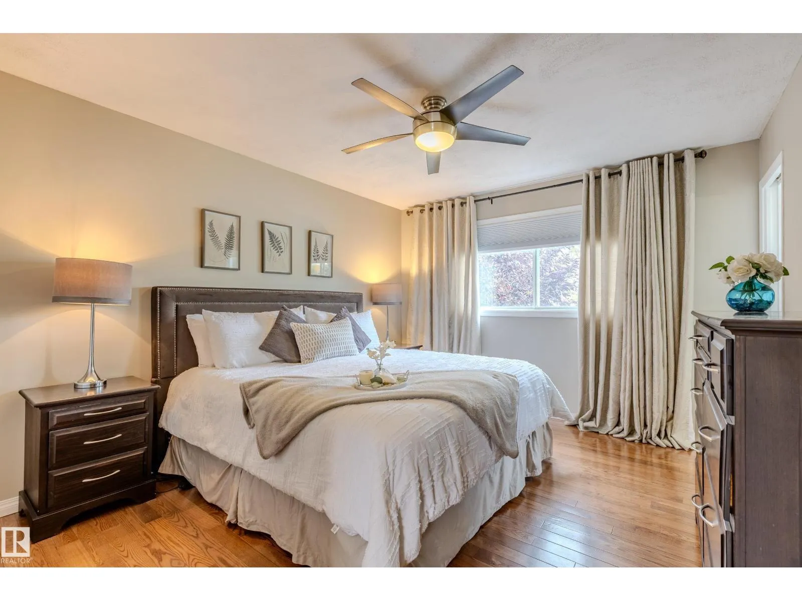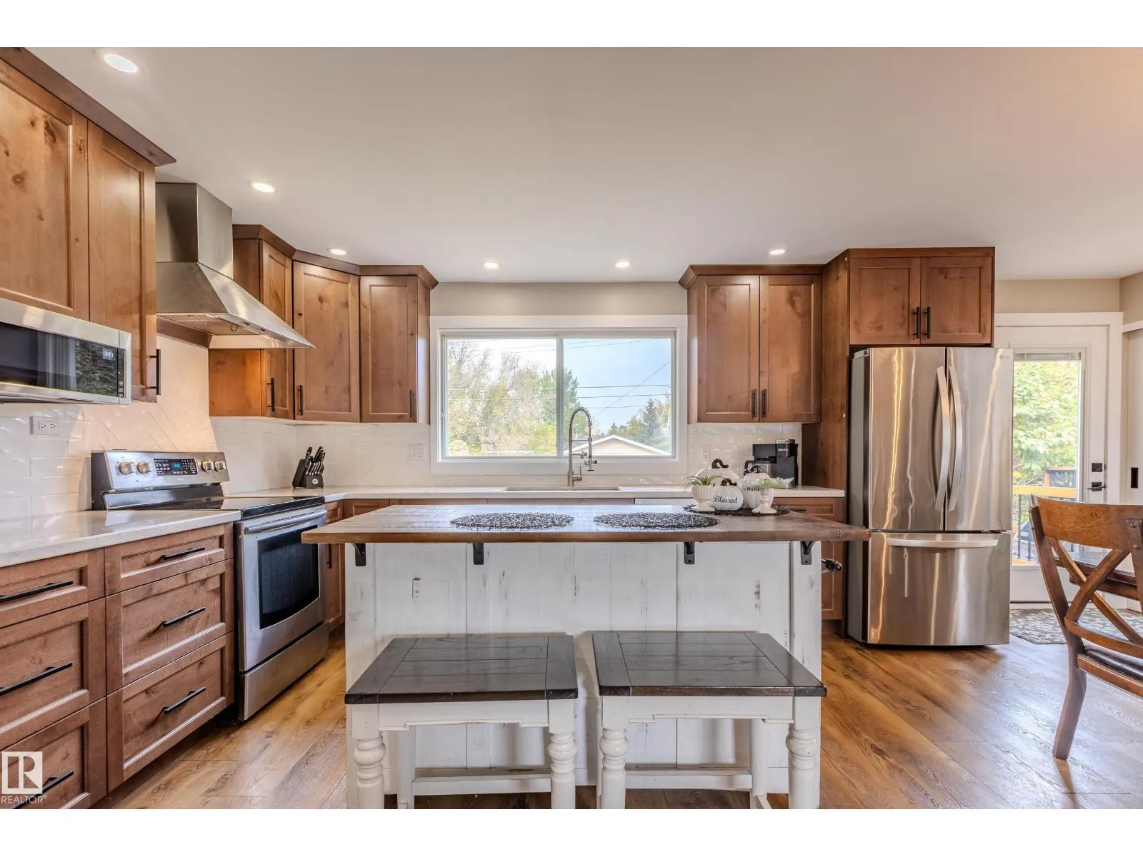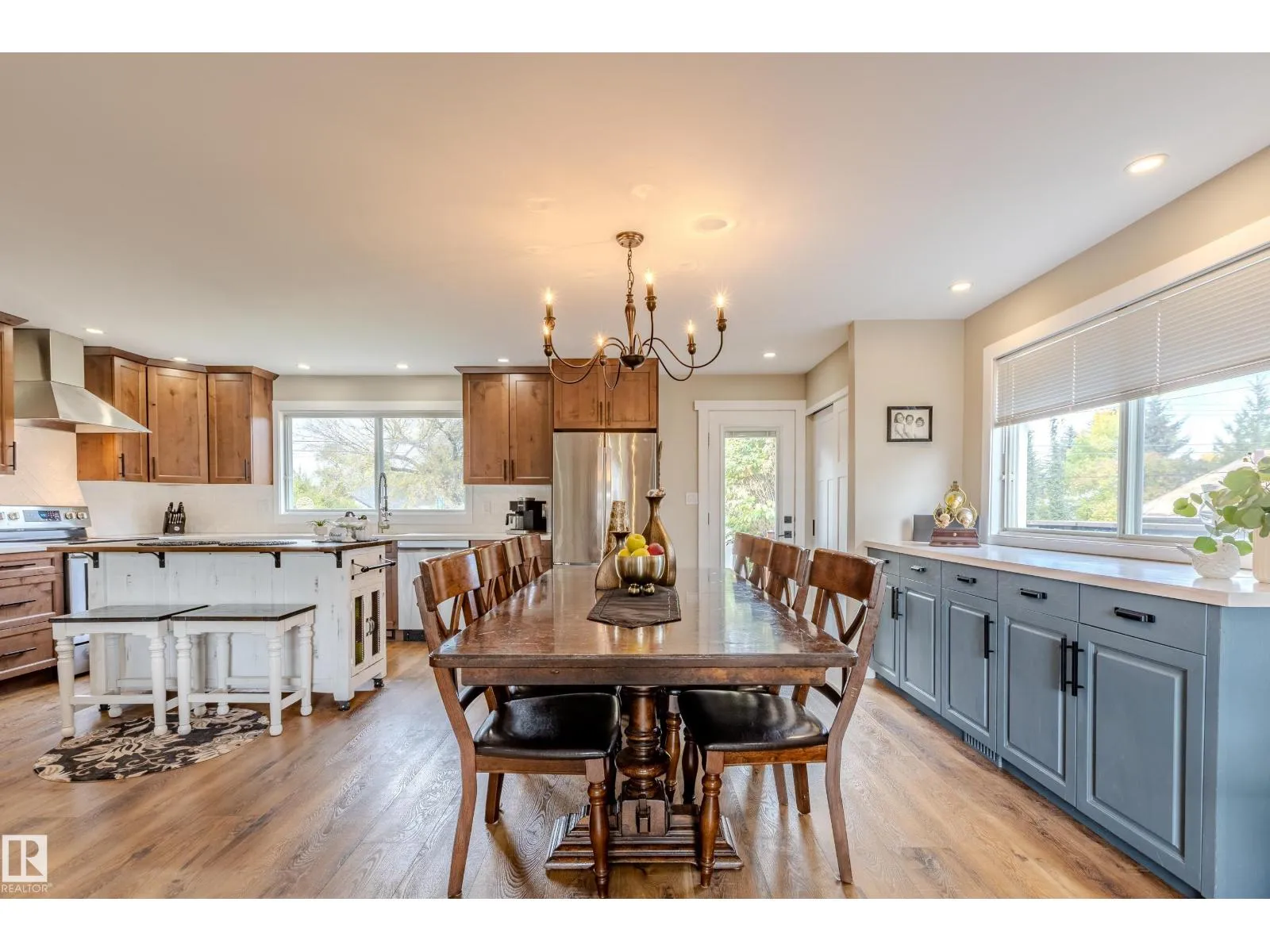 Welcome to this beautiful 4-level back split home in the heart of Morinville! Offering 5 bedrooms, 2 full bathrooms, and 2 half baths, this spacious property is perfect for growing families. Enjoy the convenience of a heated double attached garage and walking distance to all schools! The open-concept main floor is designed for entertaining, with a bright living room, dining area, and a fully renovated kitchen showcasing updated cabinets, countertops, and backsplash. Upstairs youâll find a 4pc main bath, two generous junior bedrooms, and a primary suite complete with a private 2pc ensuite. The lower level boasts a large family room, 4th bedroom, and laundry with an additional 2pc bath. The basement is complete with a 5th bedroom, 3pc bath, and a versatile rec/storage area. Step outside to a beautifully landscaped yard featuring back lane access, a large shed, and newer fencing. Notable upgrades include 2x6 construction, furnace (2021), central A/C (2022), updated exterior (2015), newer roof, and much more! (id:27476)