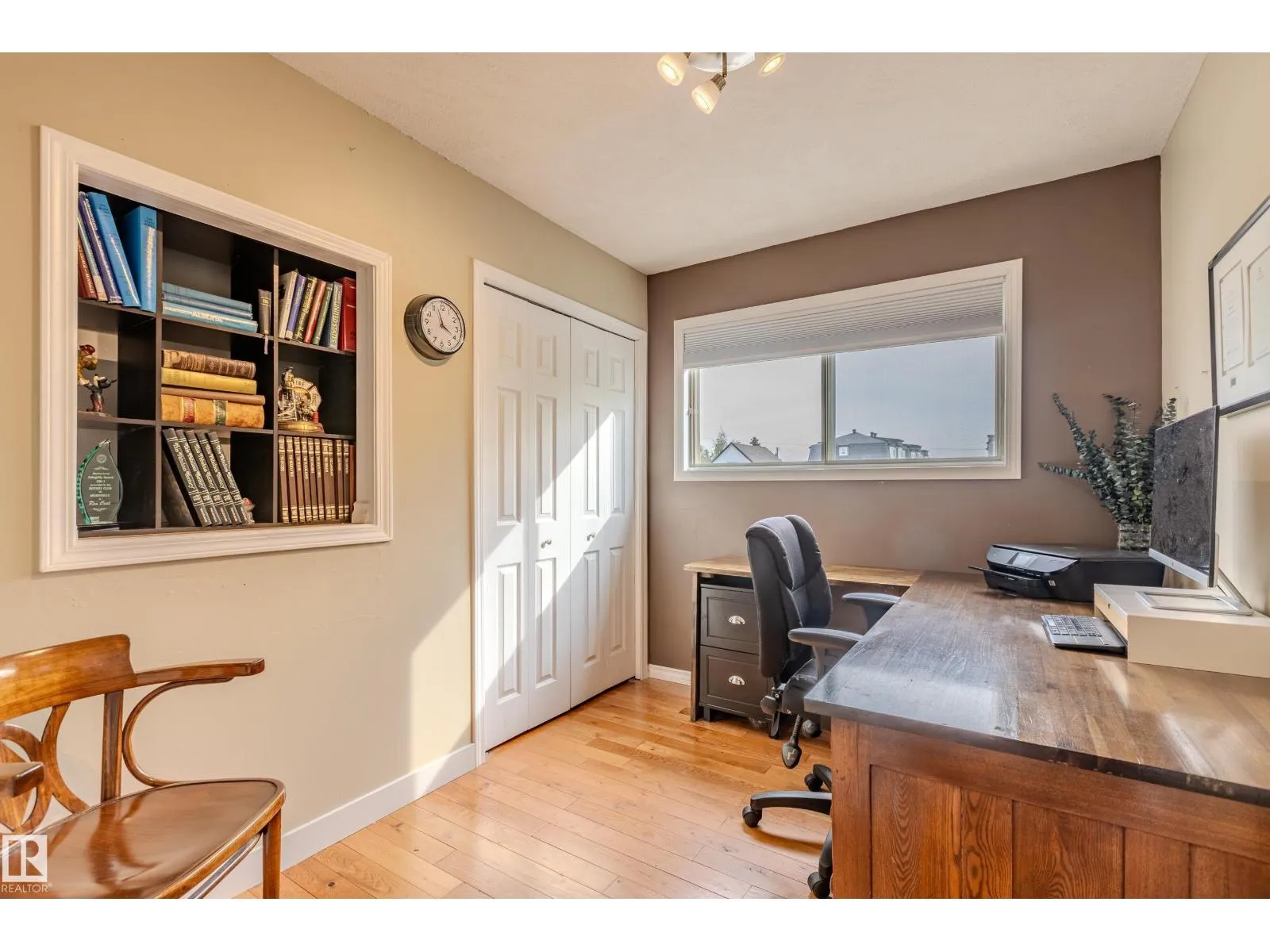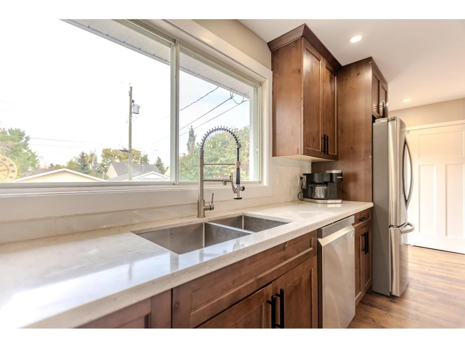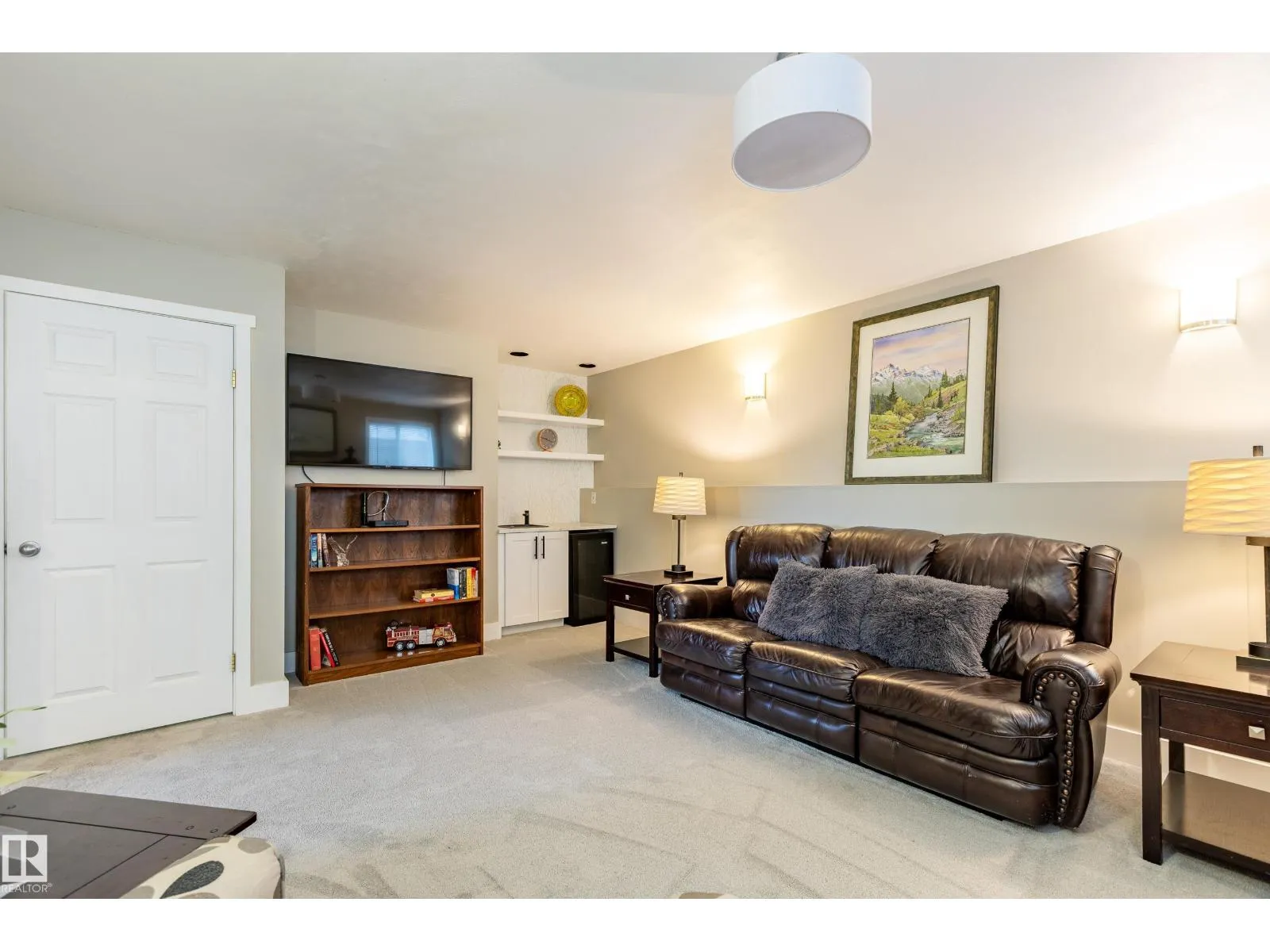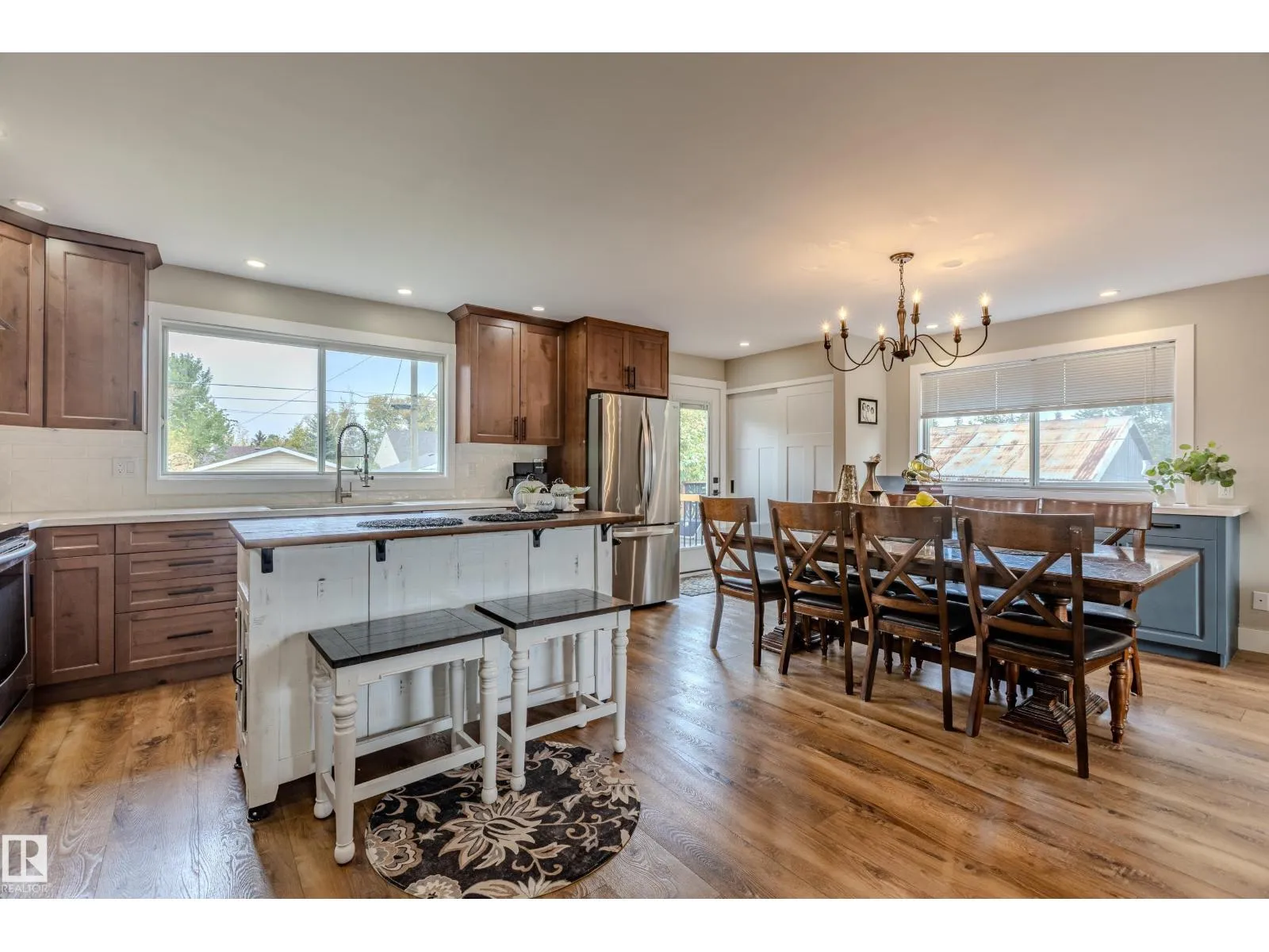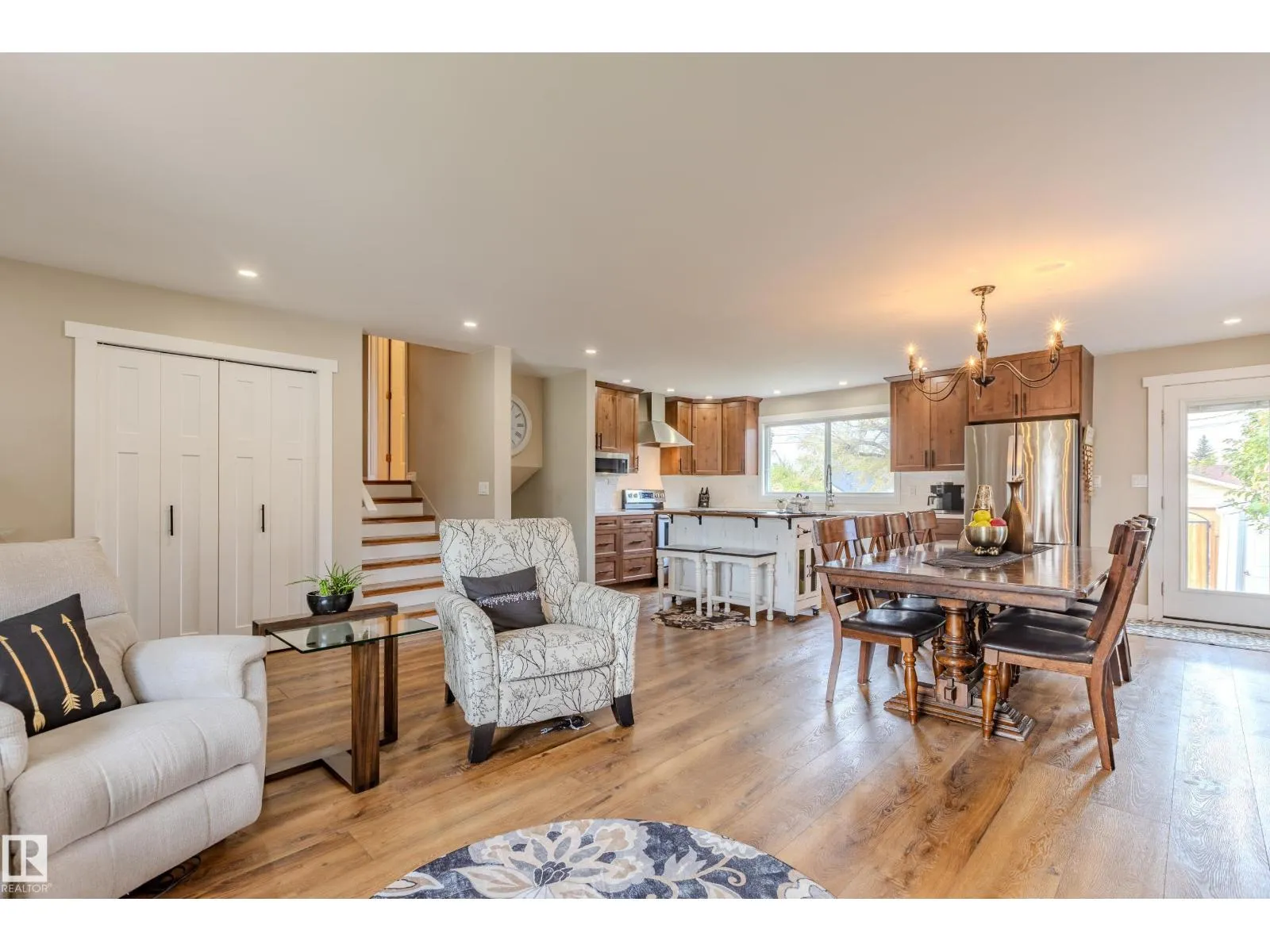 Welcome to this beautiful 4-level back split home in the heart of Morinville! Offering 5 bedrooms, 2 full bathrooms, and 2 half baths, this spacious property is perfect for growing families. Enjoy the convenience of a heated double attached garage and walking distance to all schools! The open-concept main floor is designed for entertaining, with a bright living room, dining area, and a fully renovated kitchen showcasing updated cabinets, countertops, and backsplash. Upstairs youâll find a 4pc main bath, two generous junior bedrooms, and a primary suite complete with a private 2pc ensuite. The lower level boasts a large family room, 4th bedroom, and laundry with an additional 2pc bath. The basement is complete with a 5th bedroom, 3pc bath, and a versatile rec/storage area. Step outside to a beautifully landscaped yard featuring back lane access, a large shed, and newer fencing. Notable upgrades include 2x6 construction, furnace (2021), central A/C (2022), updated exterior (2015), newer roof, and much more! (id:27476)