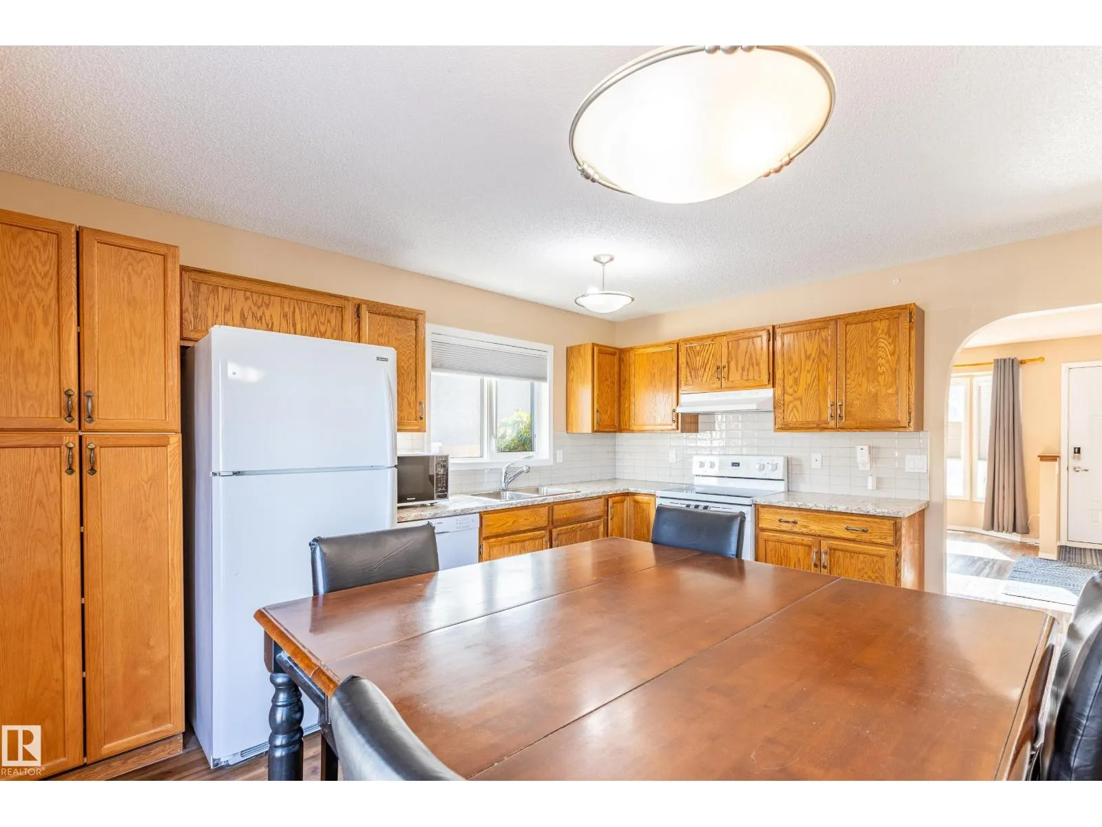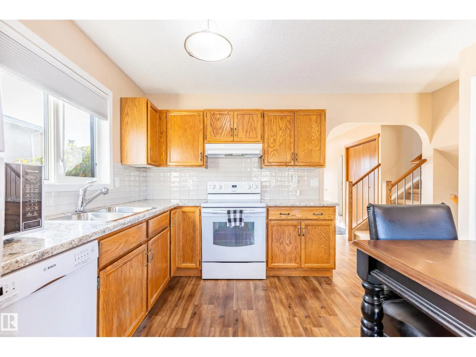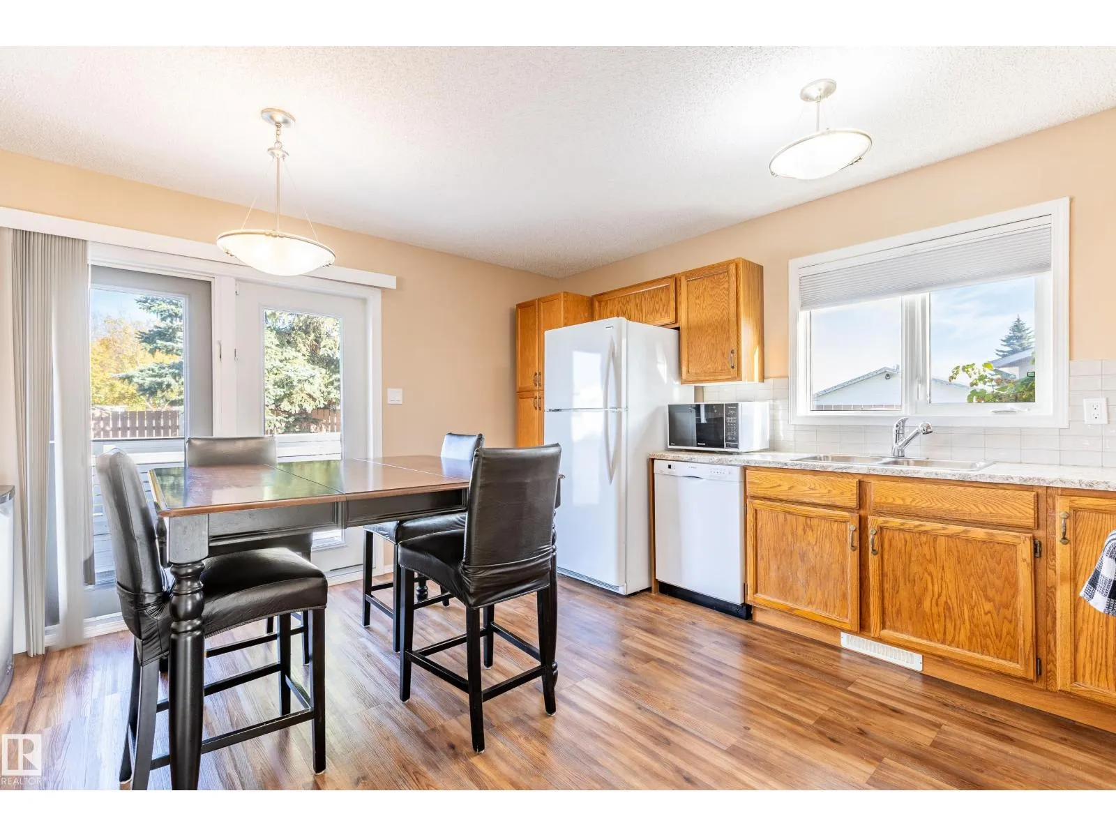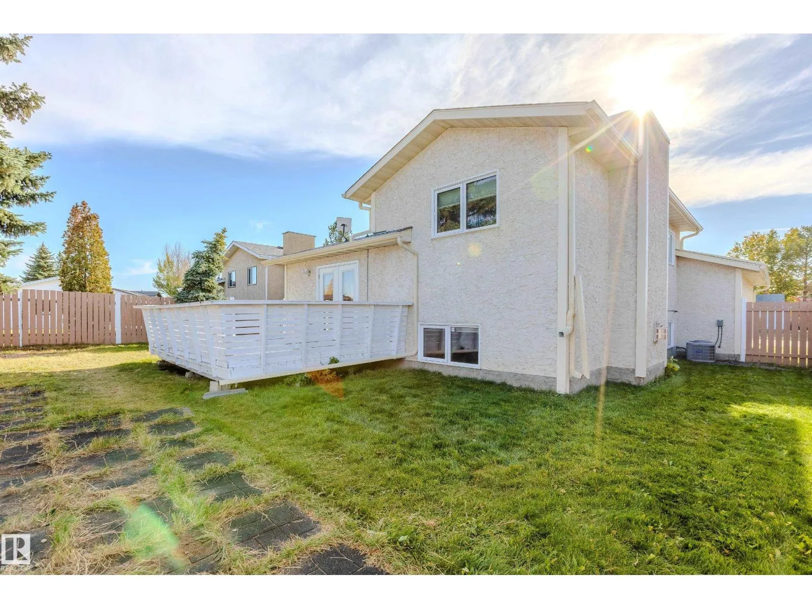 This well-maintained home offers 4 spacious bedrooms and 2 bathrooms, including a beautifully renovated main bath in 2024. A spacious layout with a large kitchen and dining space is perfect for entertaining guests for holidays and celebrations! Enjoy peace of mind with major updates: electrical panel upgraded to 200 AMP, new hot water tank (2020), and brand new eavestroughs (2024). Fresh new blinds throughout add a modern touch, while the recently poured concrete path (2024) leads you to a welcoming front step. This home also includes air conditioning for the warm summer days! A large deck in the backyard is perfect for enjoying your morning coffee or a quiet place to read. Located in the heart of Morinville, this property is move-in ready with plenty of space for a growing family. (id:27476)