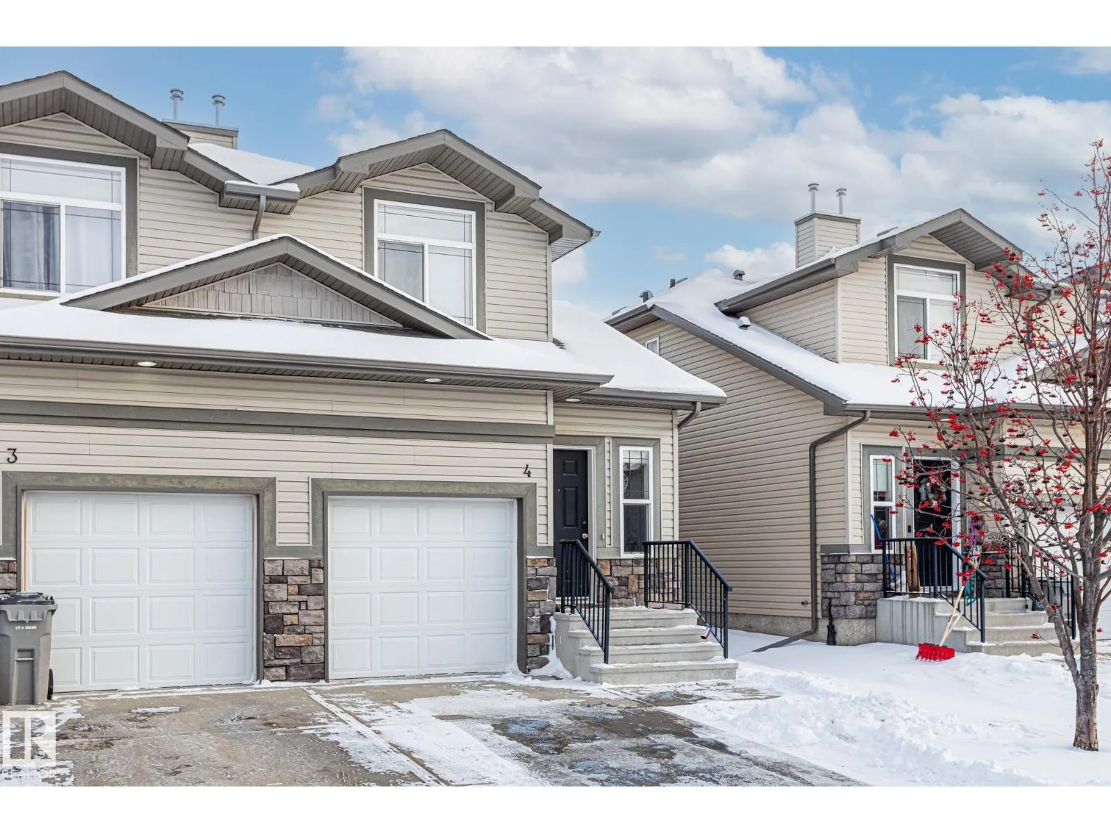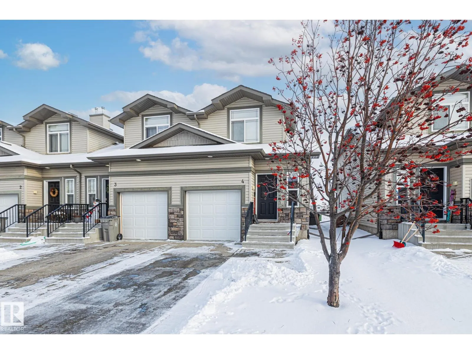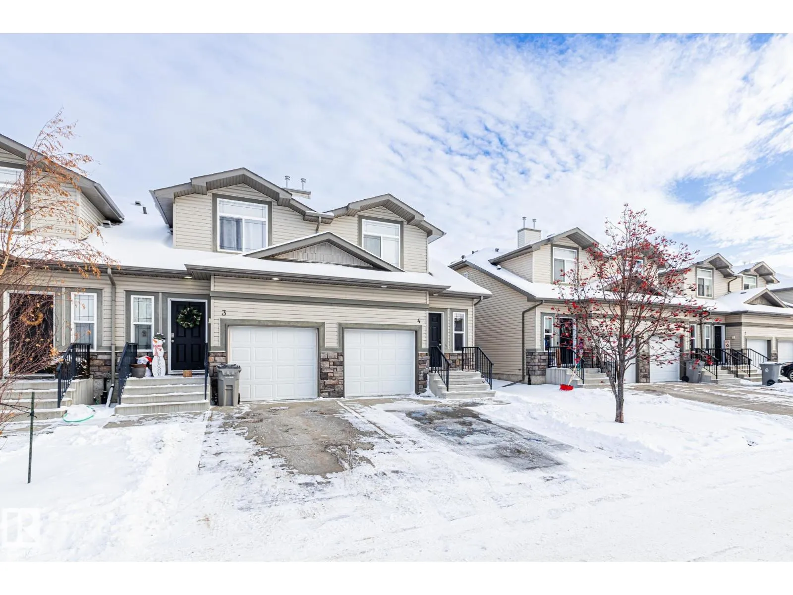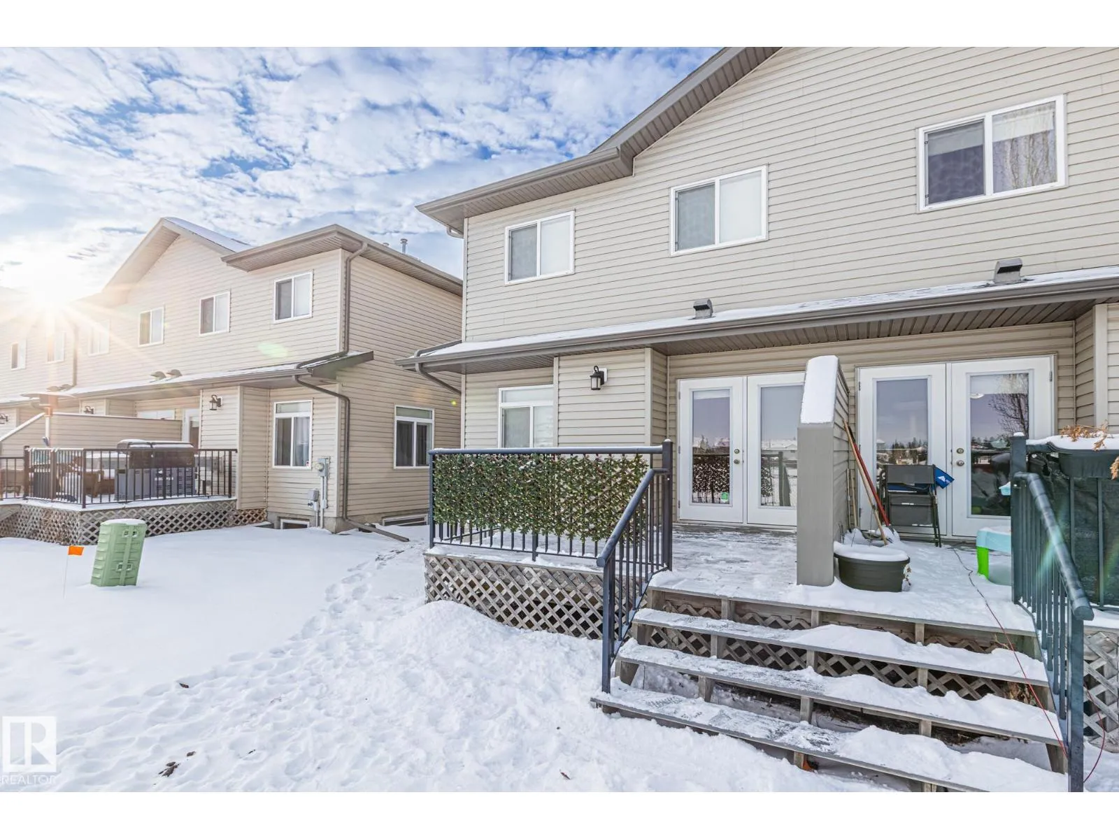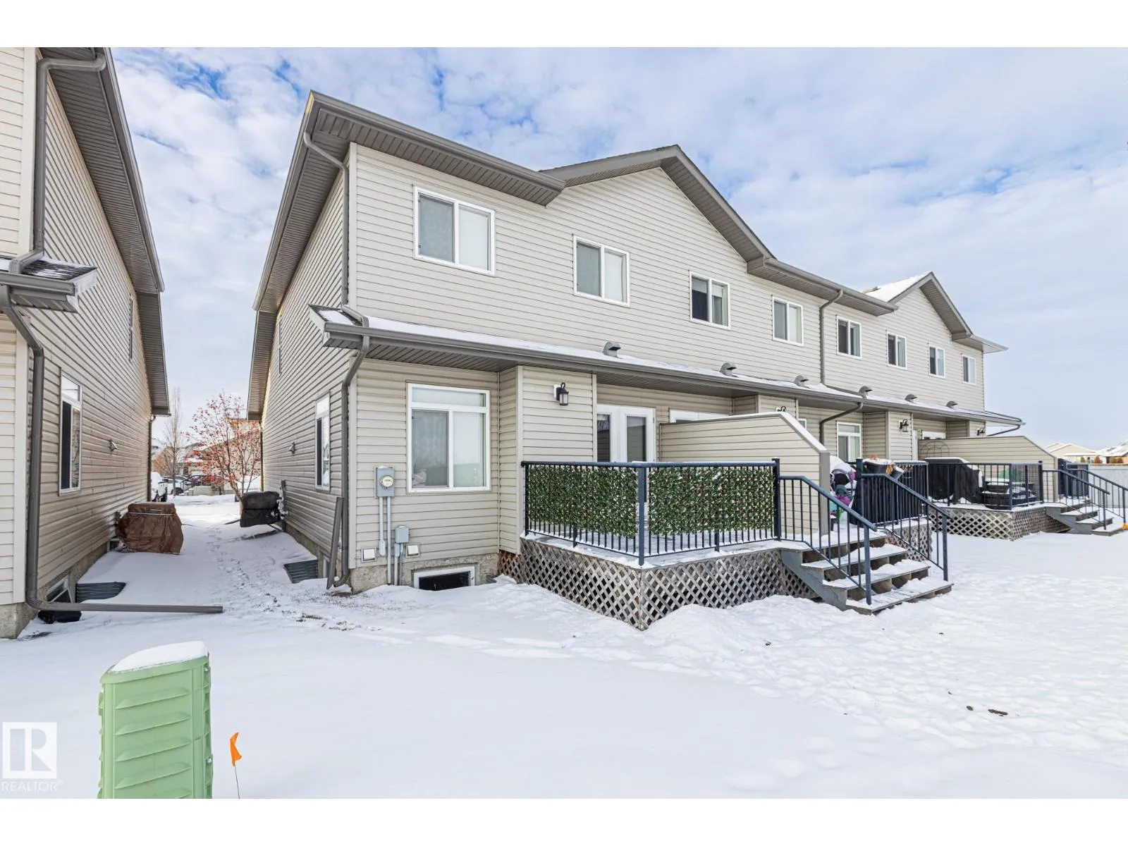 END UNIT TOWNHOUSE! Welcome to this fantastic townhouse in Morinville, perfectly located within walking distance to downtown amenities! Step inside to a generous entryway that leads into a bright kitchen featuring dark maple cabinets, an eating bar, and plenty of counter space. The kitchen flows seamlessly into the cozy living room complete with a gas fireplace and patio doors opening onto your private south-facing deck backing green spaceâideal for relaxing or entertaining. Upstairs, enjoy a spacious primary suite with a vaulted ceiling, an extra-large closet, and a 3-piece ensuite. Two additional well-sized junior bedrooms complete the upper level. The main floor offers durable linoleum and laminate flooring, while the upper level is finished with comfortable carpet. The unspoiled basement is ready for your future development. Recent upgrades include new paint, a new furnace (2023), and central air conditioning (2023) for year-round comfort. A well-maintained home in a great location! (id:27476)