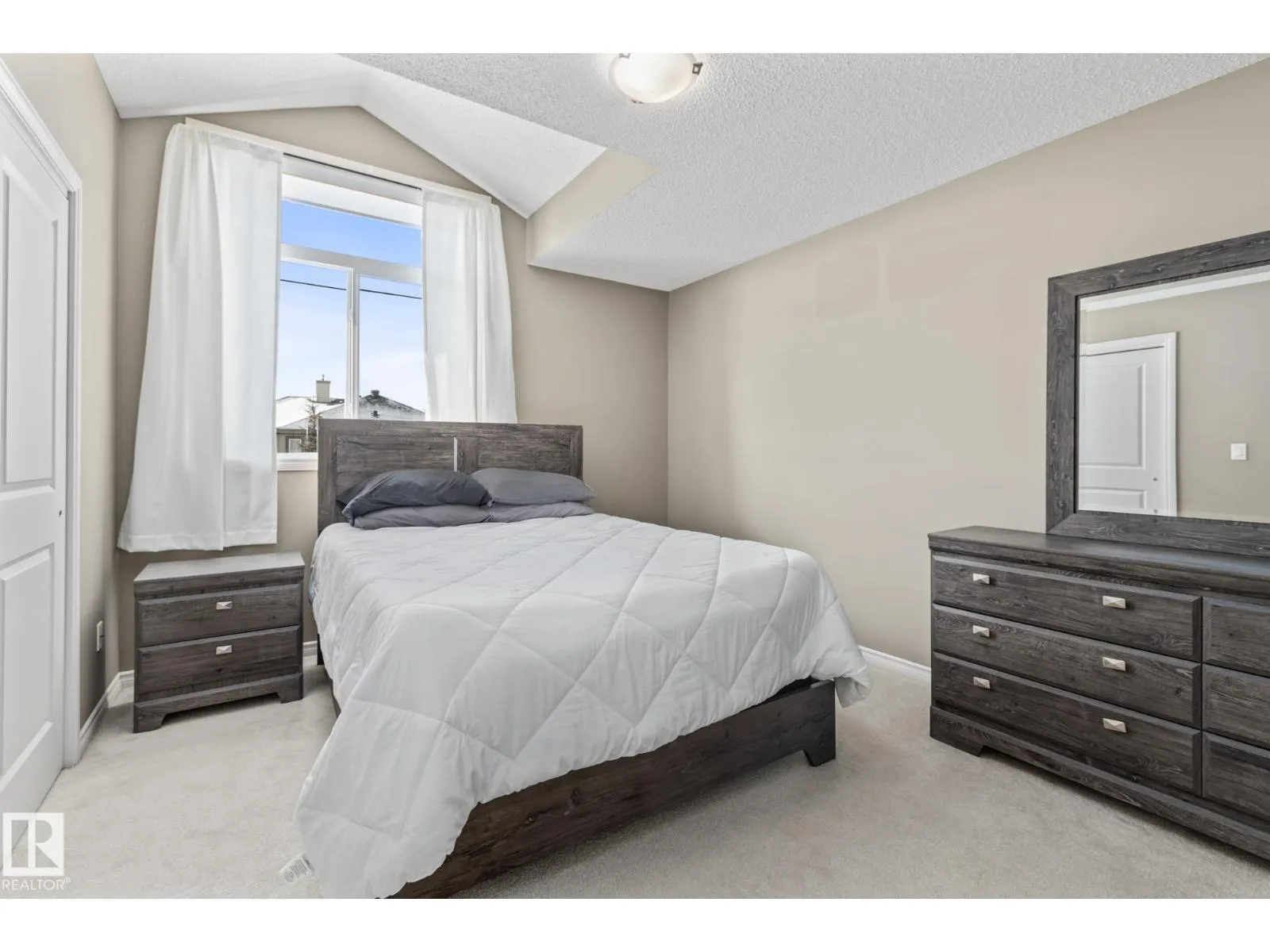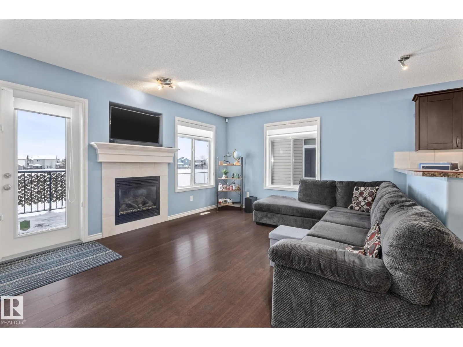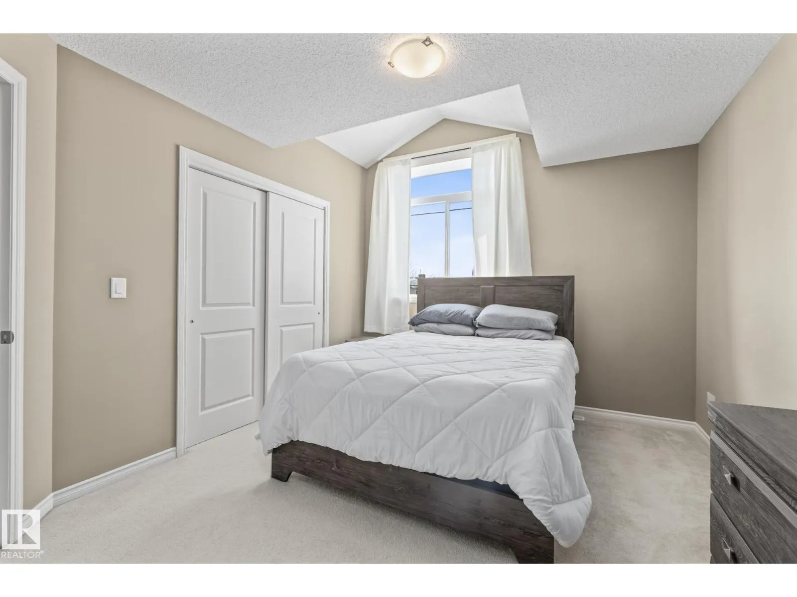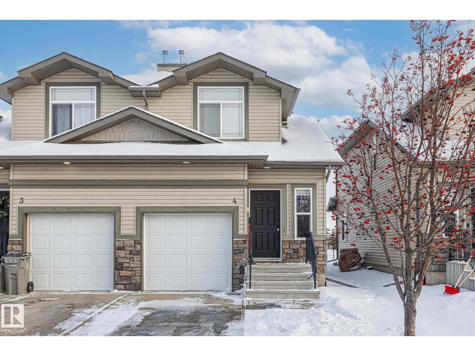 END UNIT TOWNHOUSE! Welcome to this fantastic townhouse in Morinville, perfectly located within walking distance to downtown amenities! Step inside to a generous entryway that leads into a bright kitchen featuring dark maple cabinets, an eating bar, and plenty of counter space. The kitchen flows seamlessly into the cozy living room complete with a gas fireplace and patio doors opening onto your private south-facing deck backing green spaceâideal for relaxing or entertaining. Upstairs, enjoy a spacious primary suite with a vaulted ceiling, an extra-large closet, and a 3-piece ensuite. Two additional well-sized junior bedrooms complete the upper level. The main floor offers durable linoleum and laminate flooring, while the upper level is finished with comfortable carpet. The unspoiled basement is ready for your future development. Recent upgrades include new paint, a new furnace (2023), and central air conditioning (2023) for year-round comfort. A well-maintained home in a great location! (id:27476)