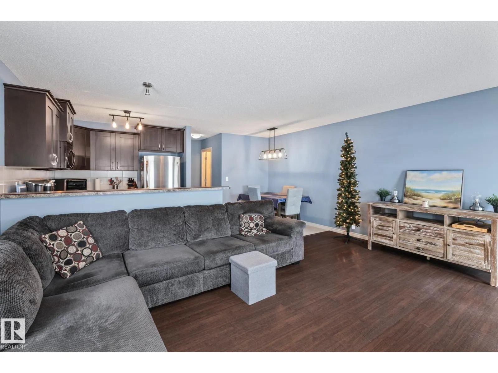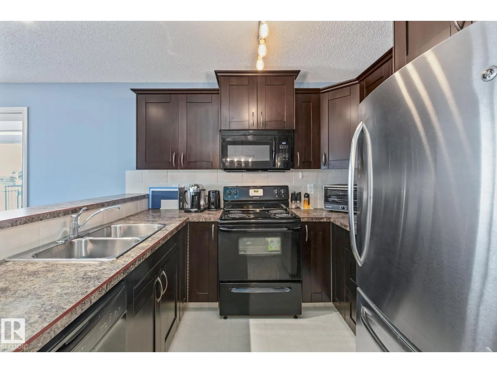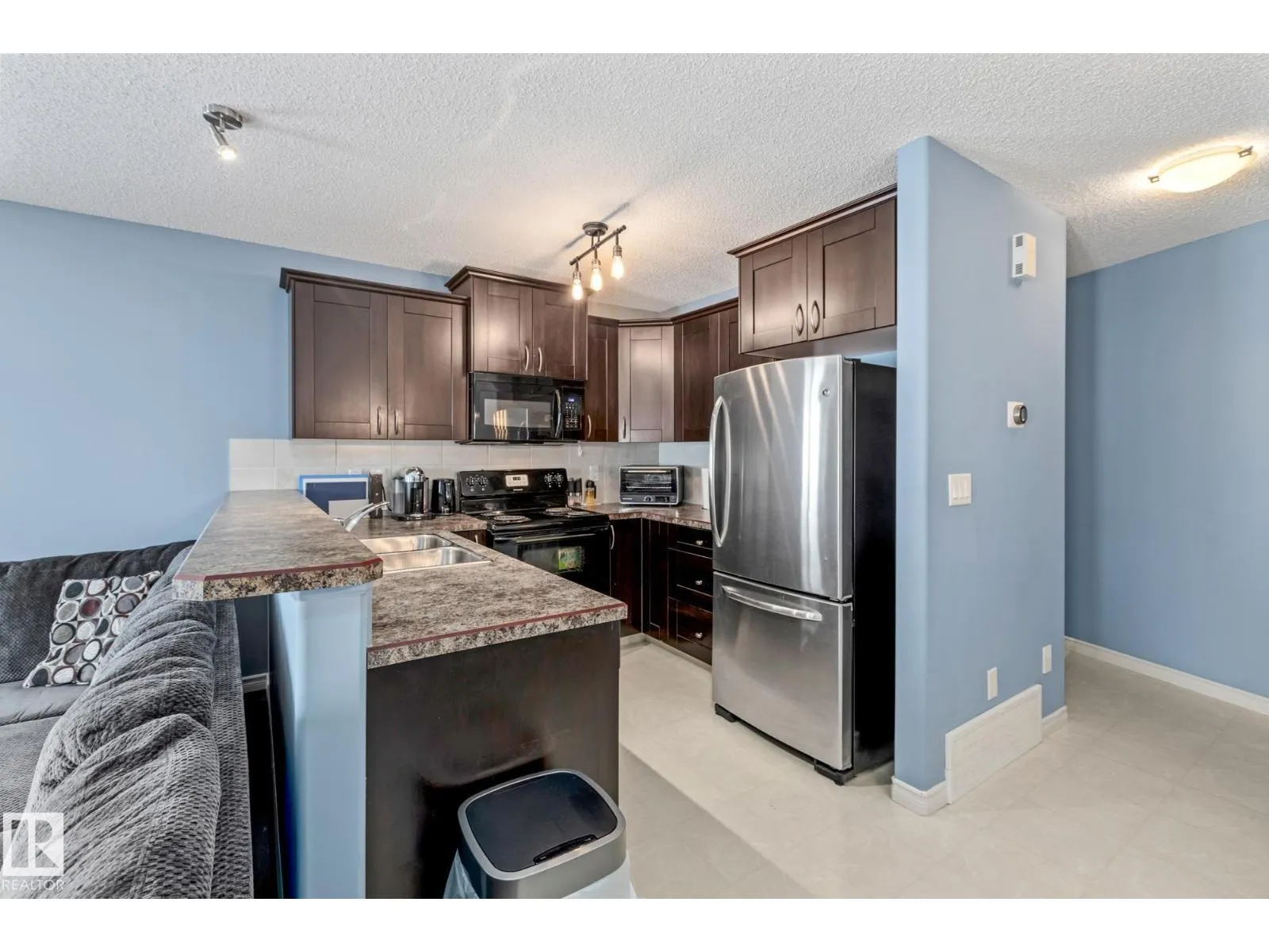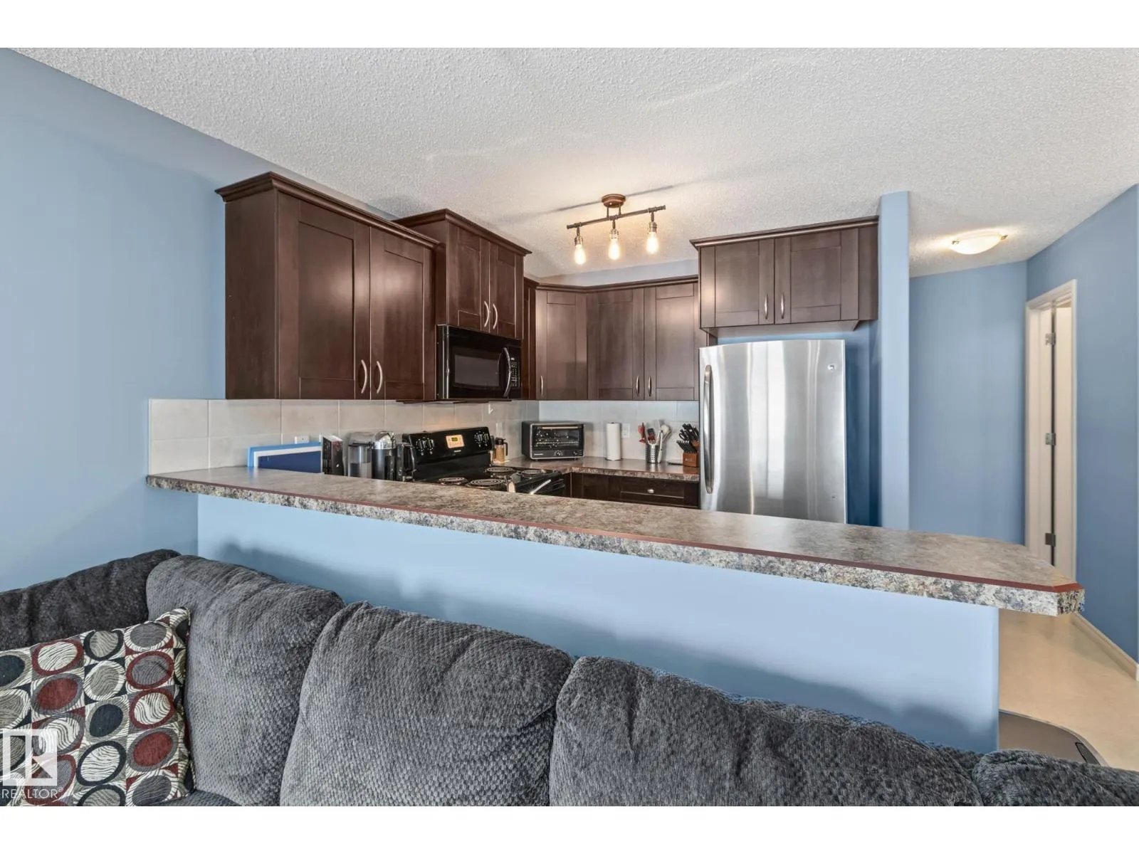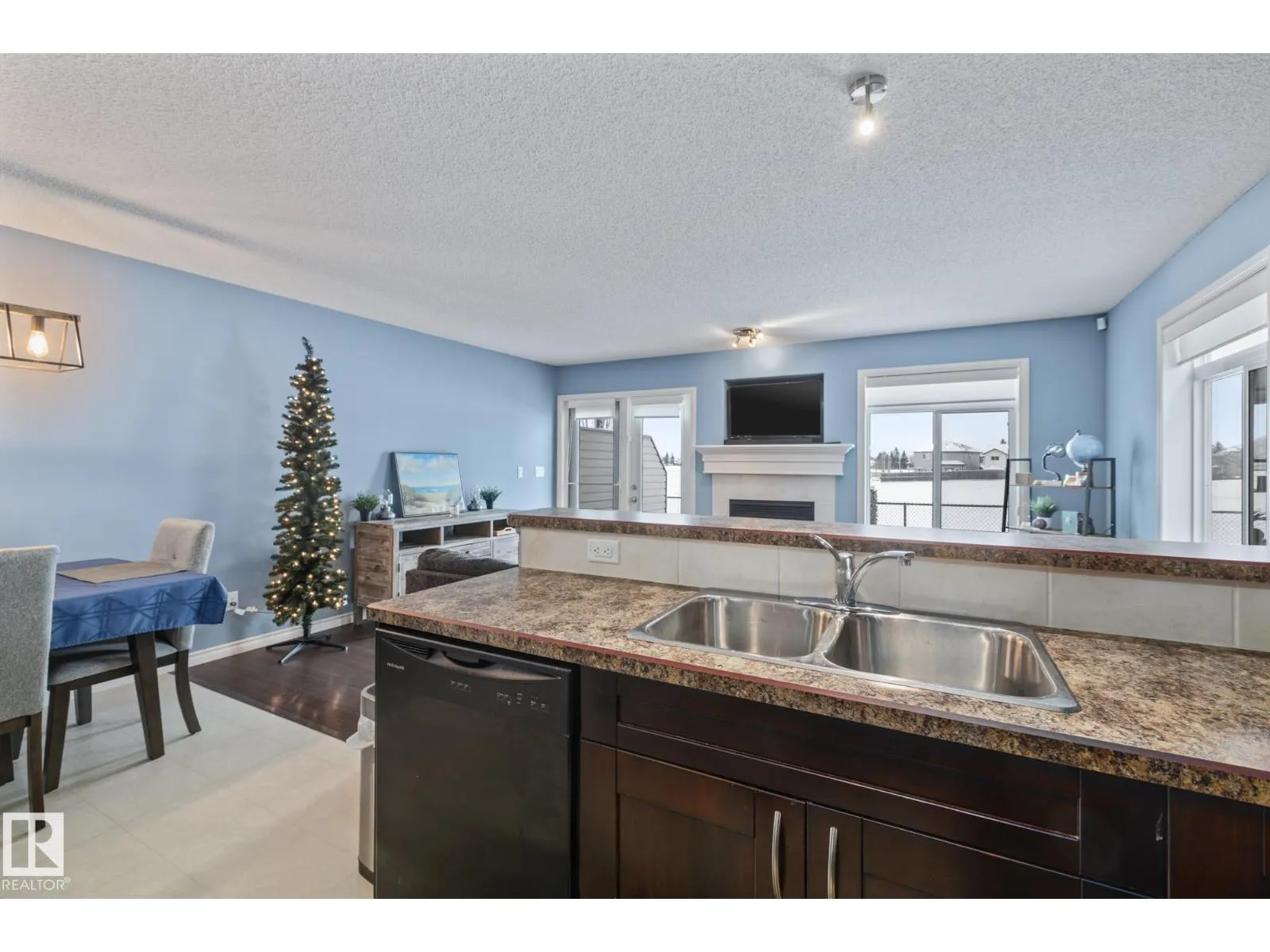 END UNIT TOWNHOUSE! Welcome to this fantastic townhouse in Morinville, perfectly located within walking distance to downtown amenities! Step inside to a generous entryway that leads into a bright kitchen featuring dark maple cabinets, an eating bar, and plenty of counter space. The kitchen flows seamlessly into the cozy living room complete with a gas fireplace and patio doors opening onto your private south-facing deck backing green spaceâideal for relaxing or entertaining. Upstairs, enjoy a spacious primary suite with a vaulted ceiling, an extra-large closet, and a 3-piece ensuite. Two additional well-sized junior bedrooms complete the upper level. The main floor offers durable linoleum and laminate flooring, while the upper level is finished with comfortable carpet. The unspoiled basement is ready for your future development. Recent upgrades include new paint, a new furnace (2023), and central air conditioning (2023) for year-round comfort. A well-maintained home in a great location! (id:27476)
