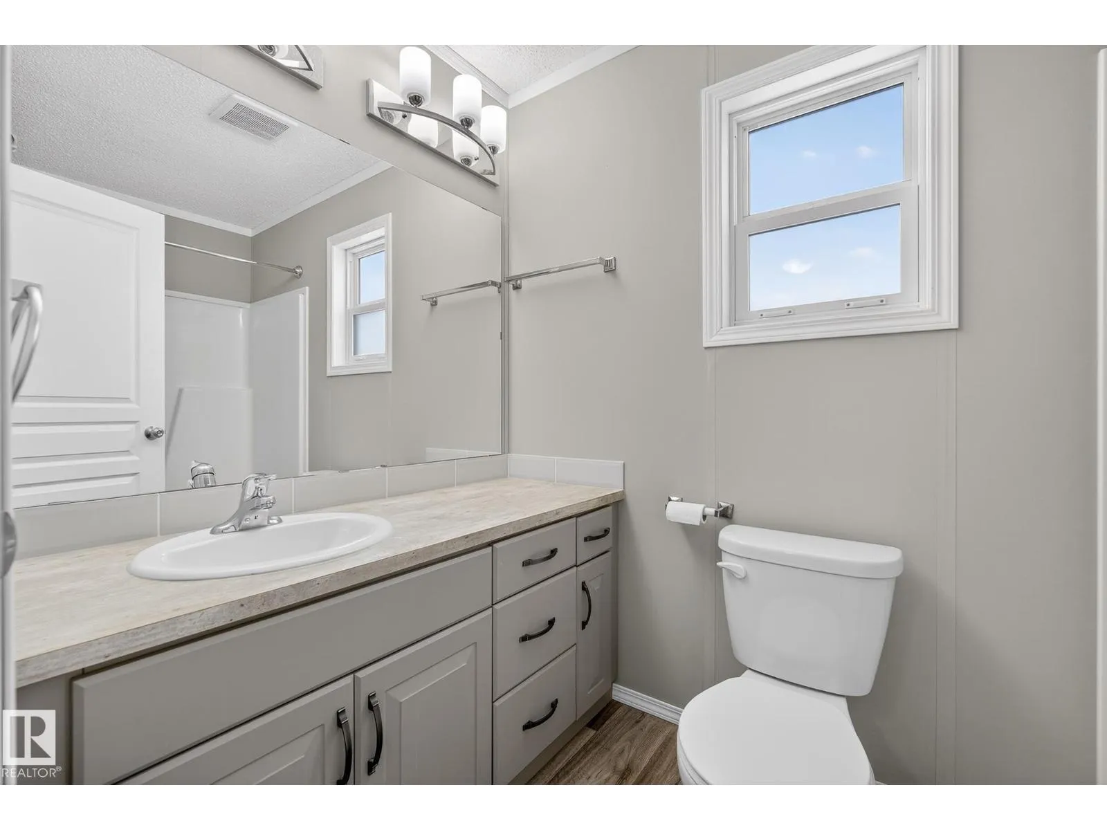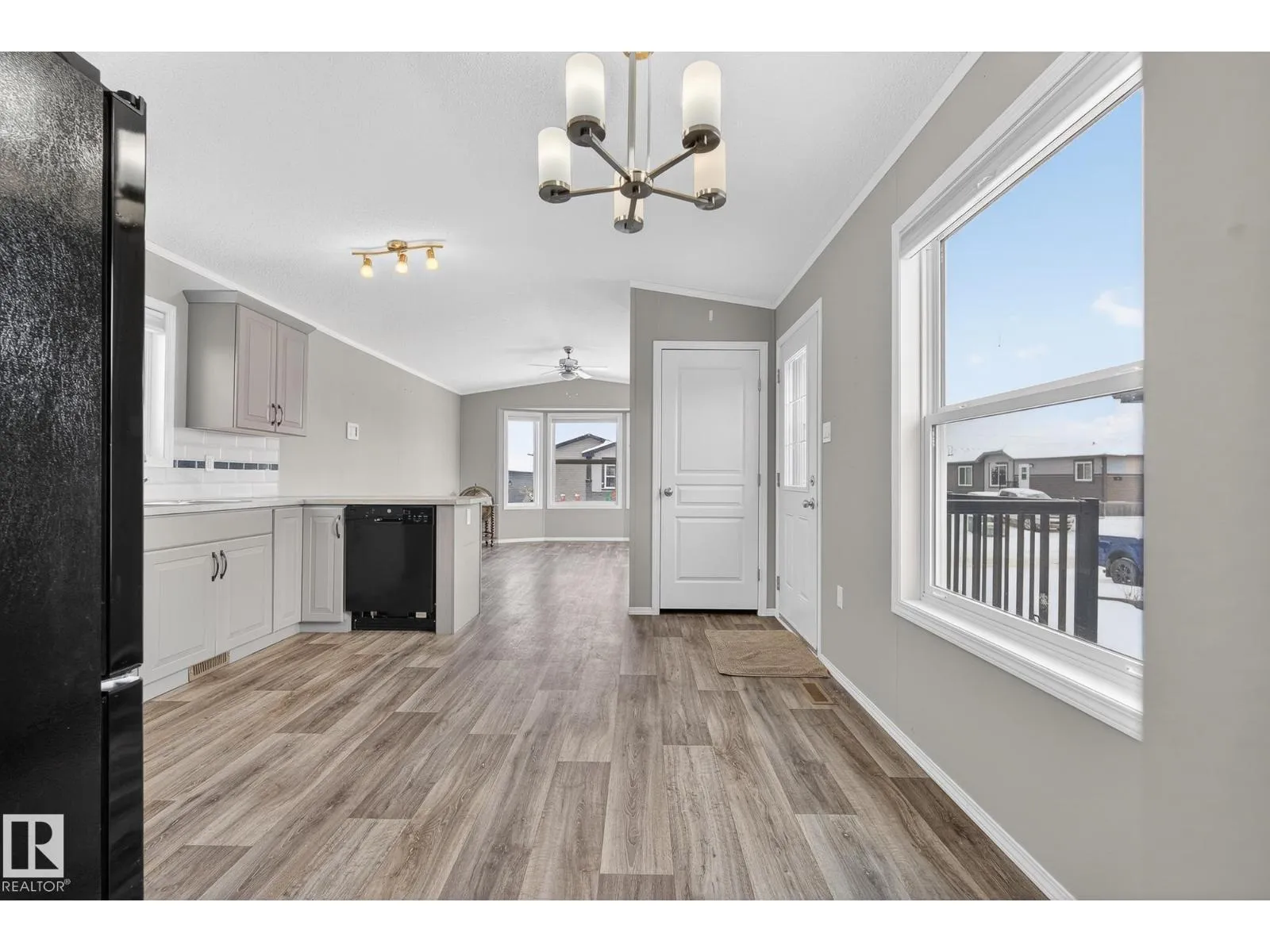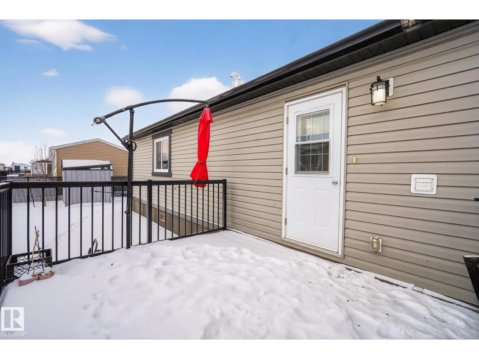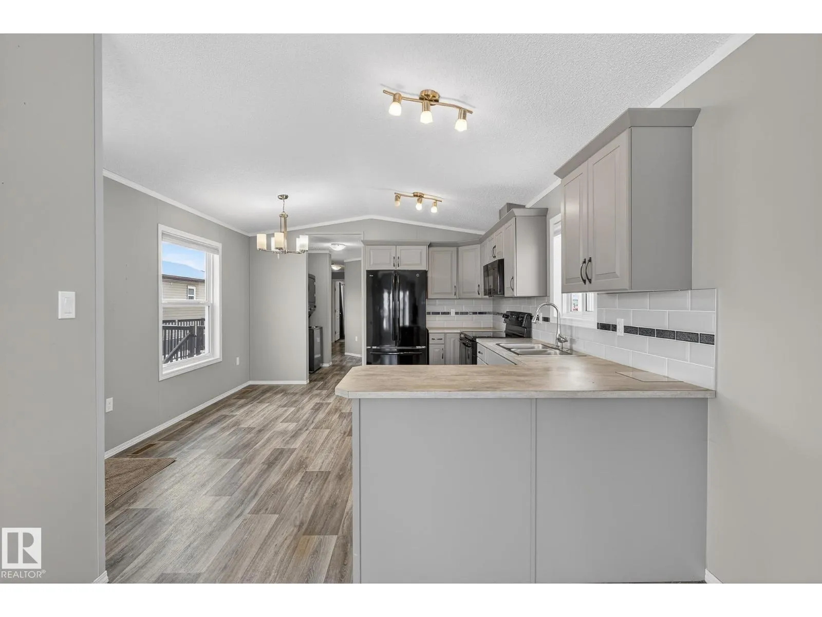 Modern, move-in ready and nicely upgraded, this 2019 home in The Meadows of Morinville offers 941 sq ft of smart, single-level living. The open concept main living area is bright and inviting, with huge front windows, vinyl plank flooring and plenty of room for a full living and dining set. The kitchen features grey shaker cabinets, tile backsplash, black appliances and great counter space, including a peninsula for extra prep and seating. At one end, the spacious primary bedroom includes a walk-in closet and 4-piece ensuite. At the other, a second bedroom, full bath and convenient laundry are perfect for kids, guests or a home office. Outside youâll find a large deck, parking and a low-maintenance lot. Located in a quiet, well-kept community close to Morinville schools, parks and shopping, this is an ideal option for first-time buyers or downsizers. (id:27476)