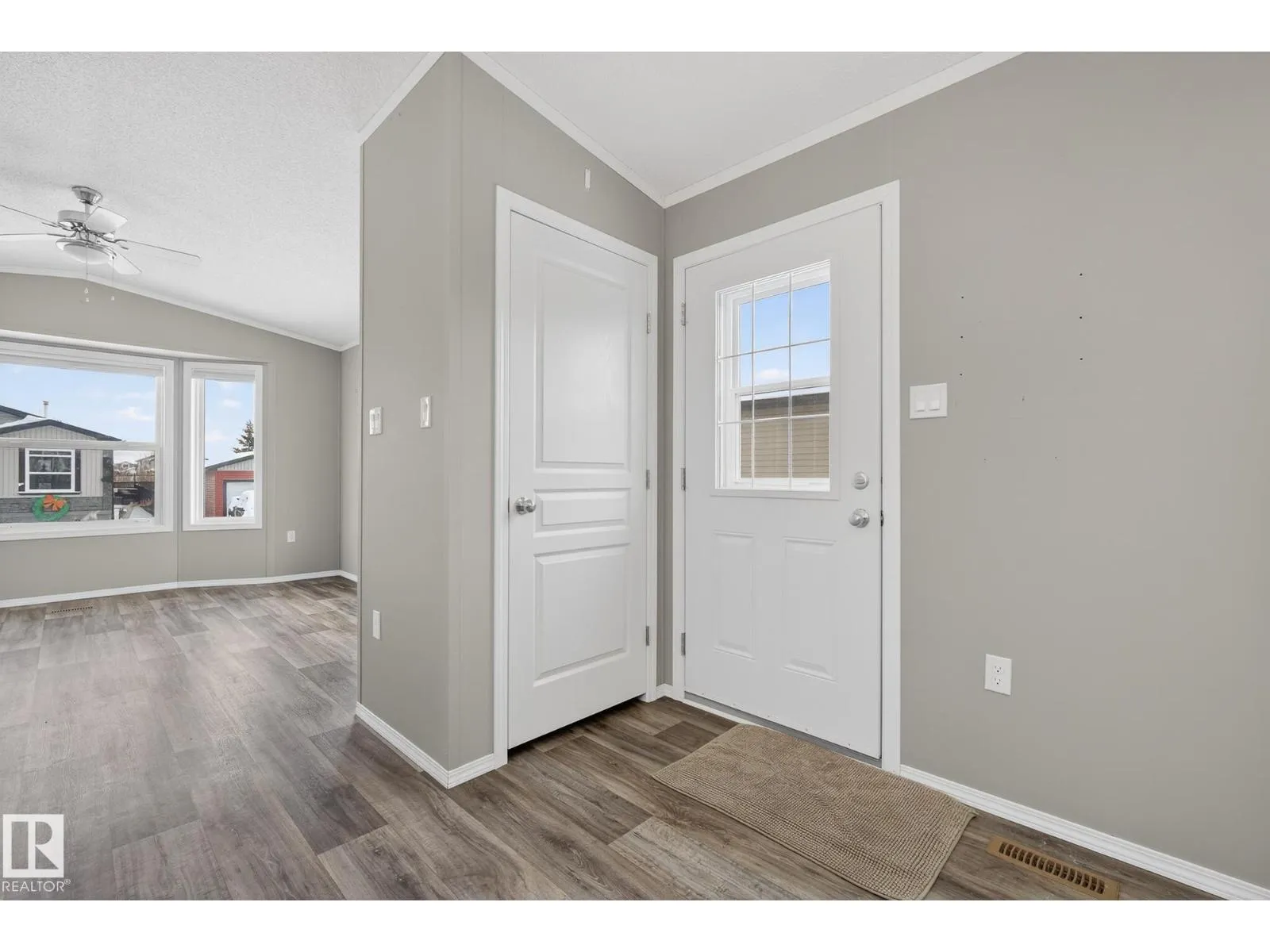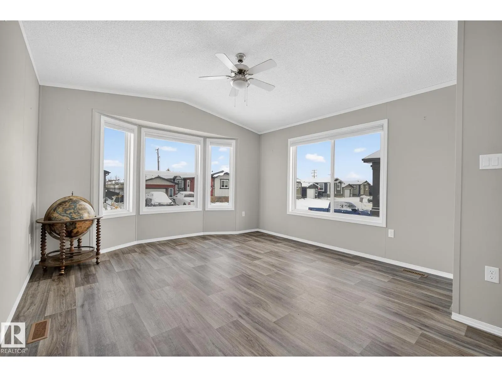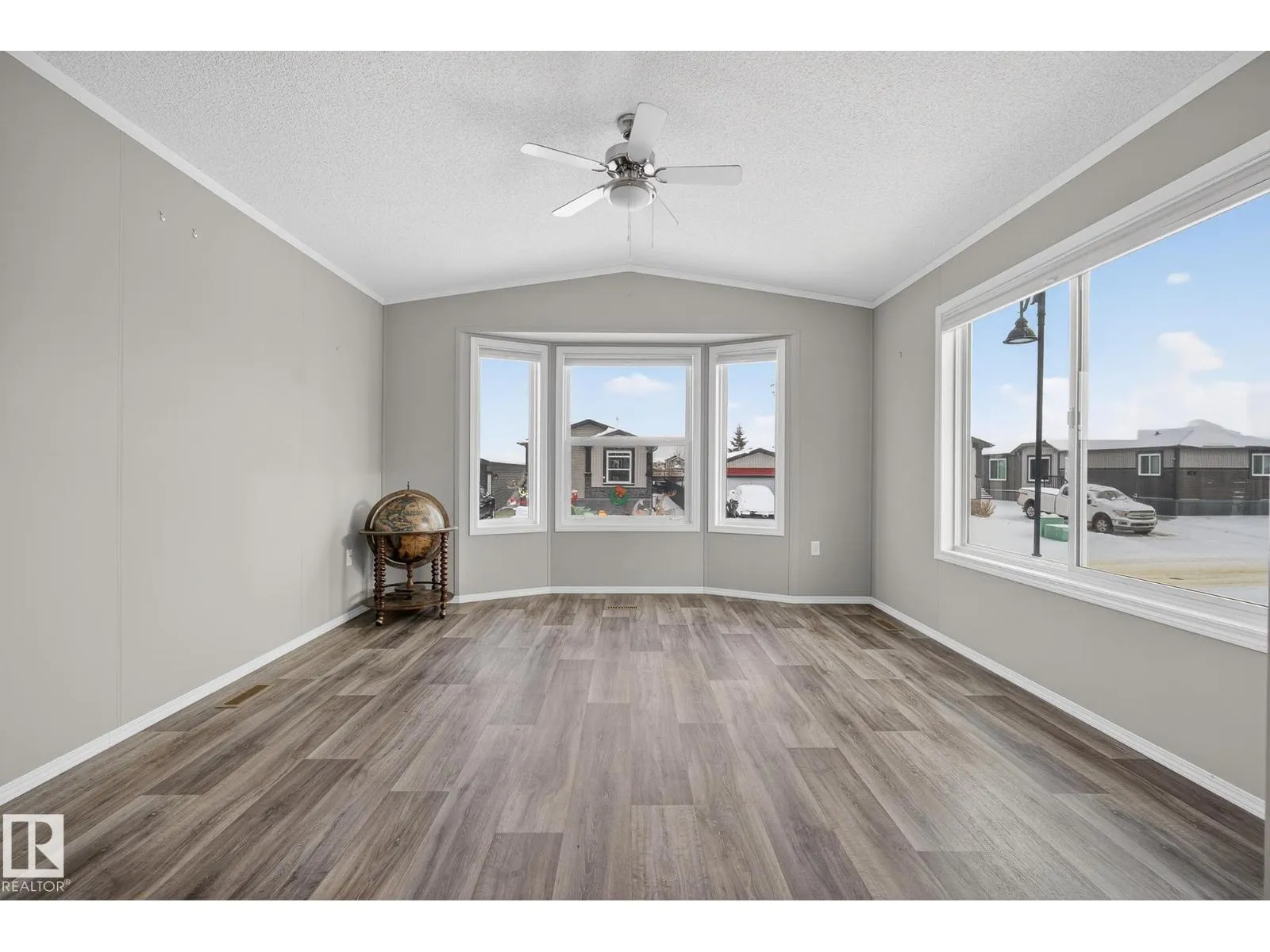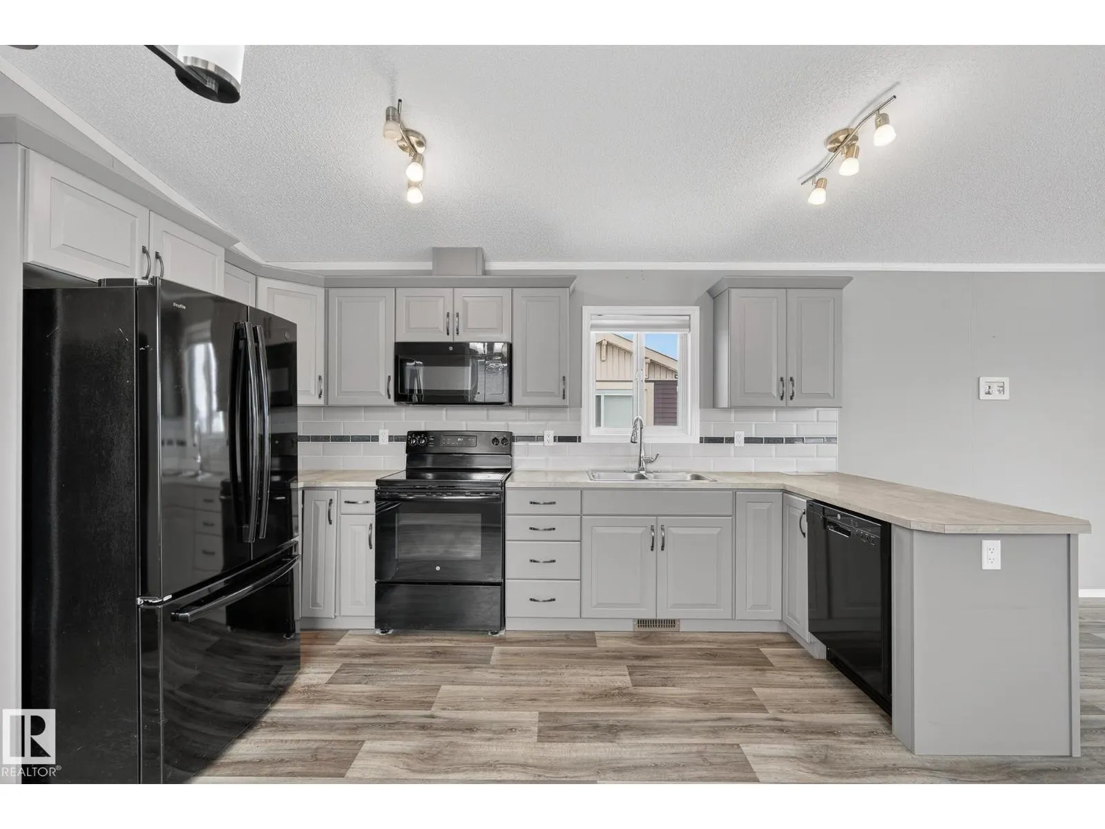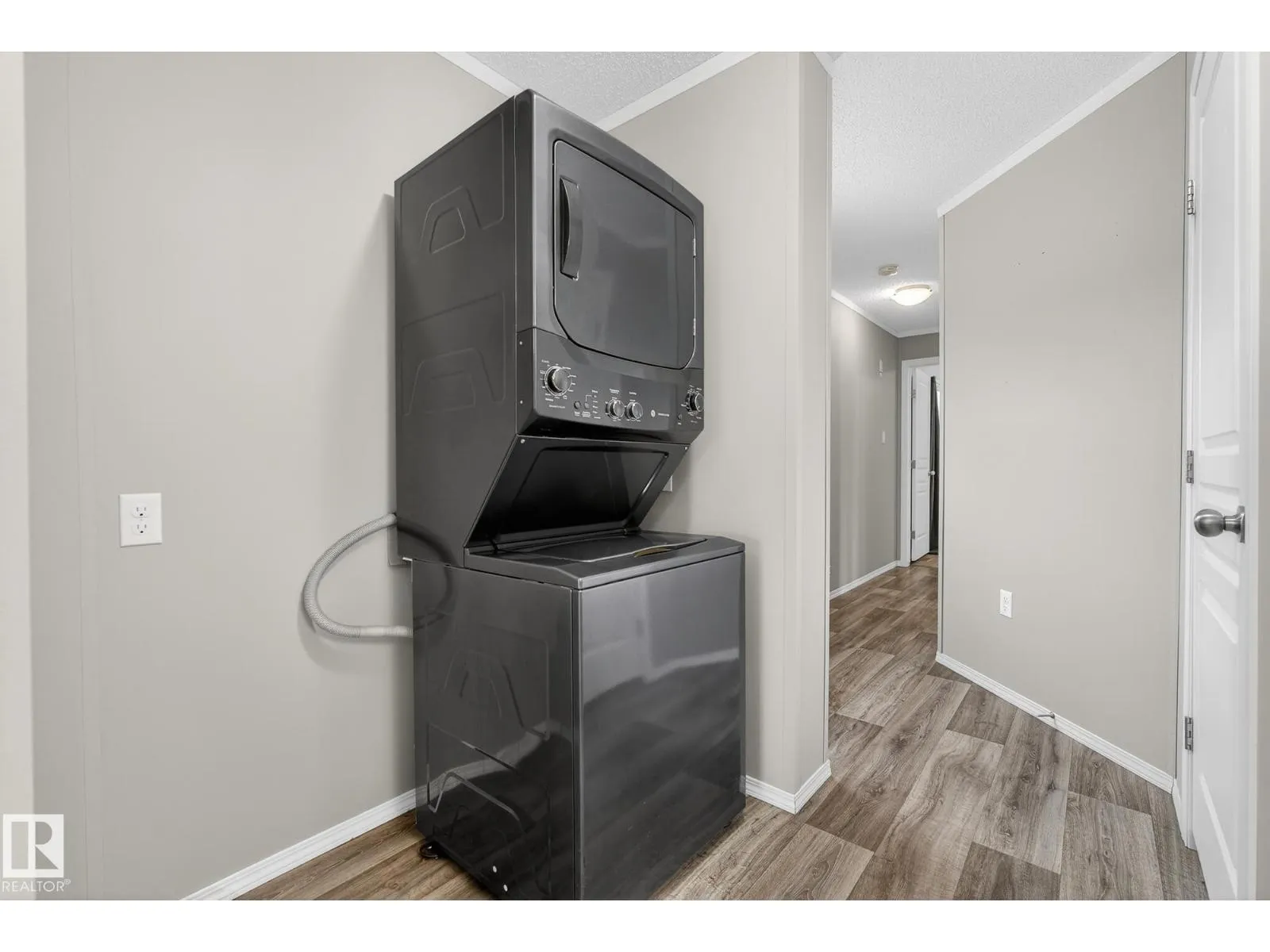 Modern, move-in ready and nicely upgraded, this 2019 home in The Meadows of Morinville offers 941 sq ft of smart, single-level living. The open concept main living area is bright and inviting, with huge front windows, vinyl plank flooring and plenty of room for a full living and dining set. The kitchen features grey shaker cabinets, tile backsplash, black appliances and great counter space, including a peninsula for extra prep and seating. At one end, the spacious primary bedroom includes a walk-in closet and 4-piece ensuite. At the other, a second bedroom, full bath and convenient laundry are perfect for kids, guests or a home office. Outside youâll find a large deck, parking and a low-maintenance lot. Located in a quiet, well-kept community close to Morinville schools, parks and shopping, this is an ideal option for first-time buyers or downsizers. (id:27476)
