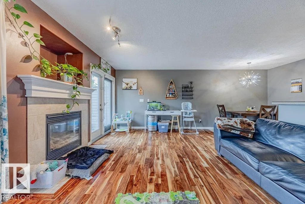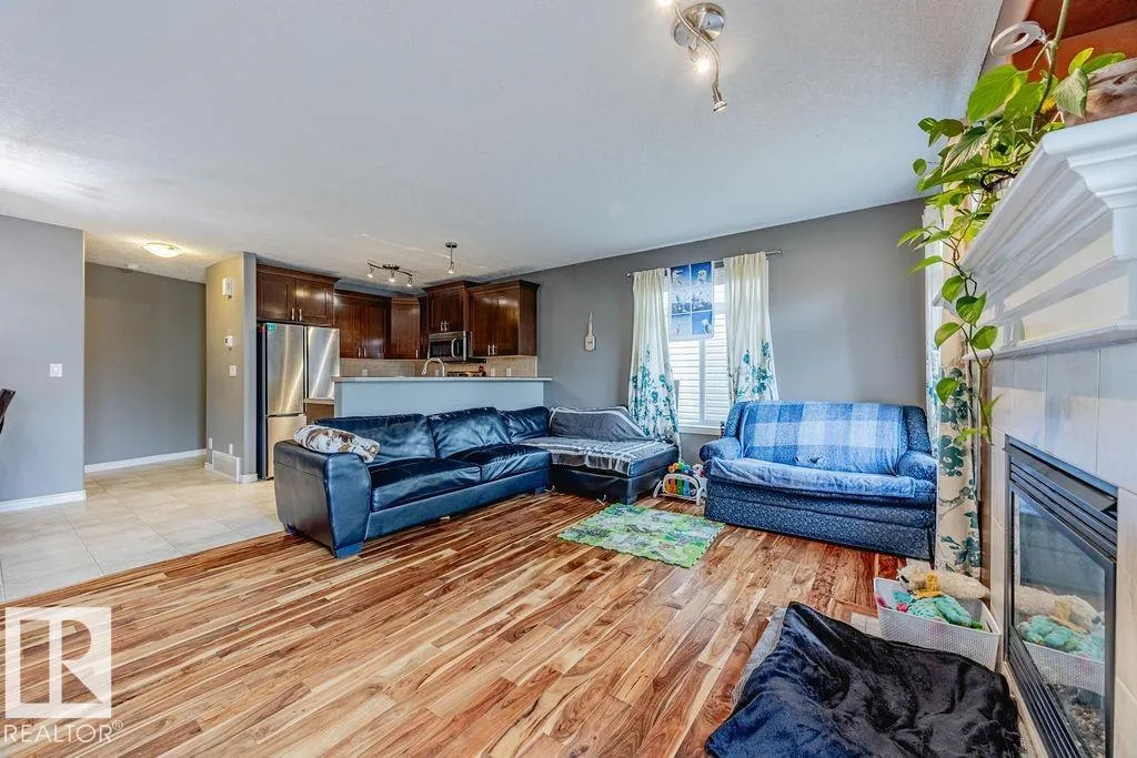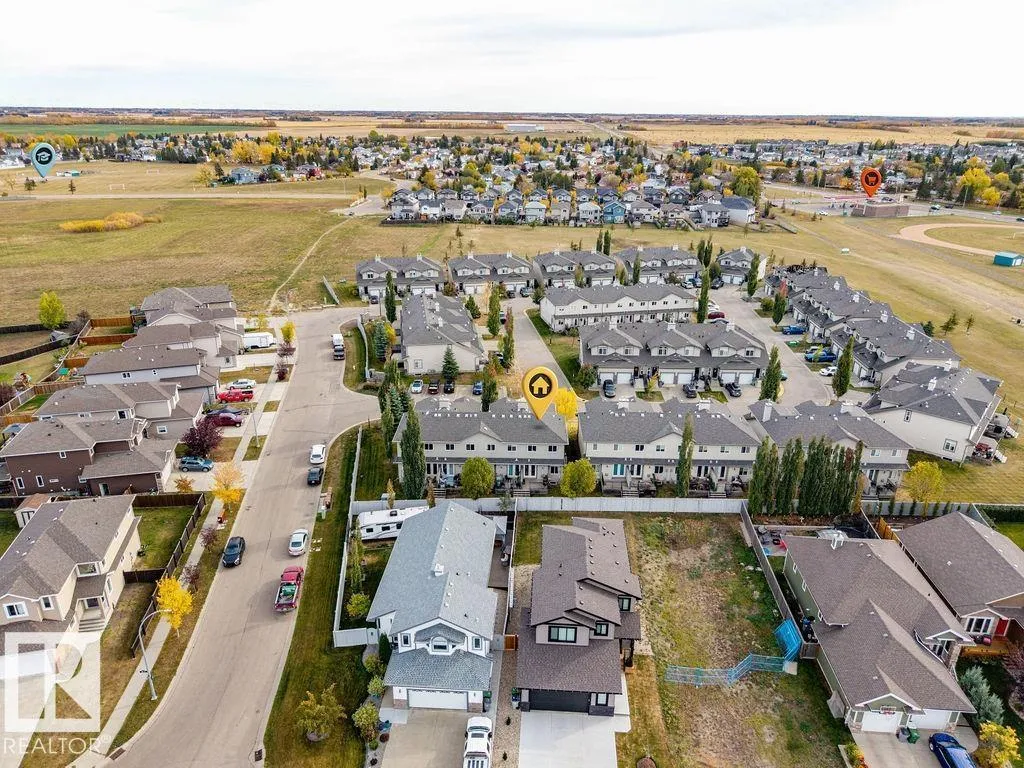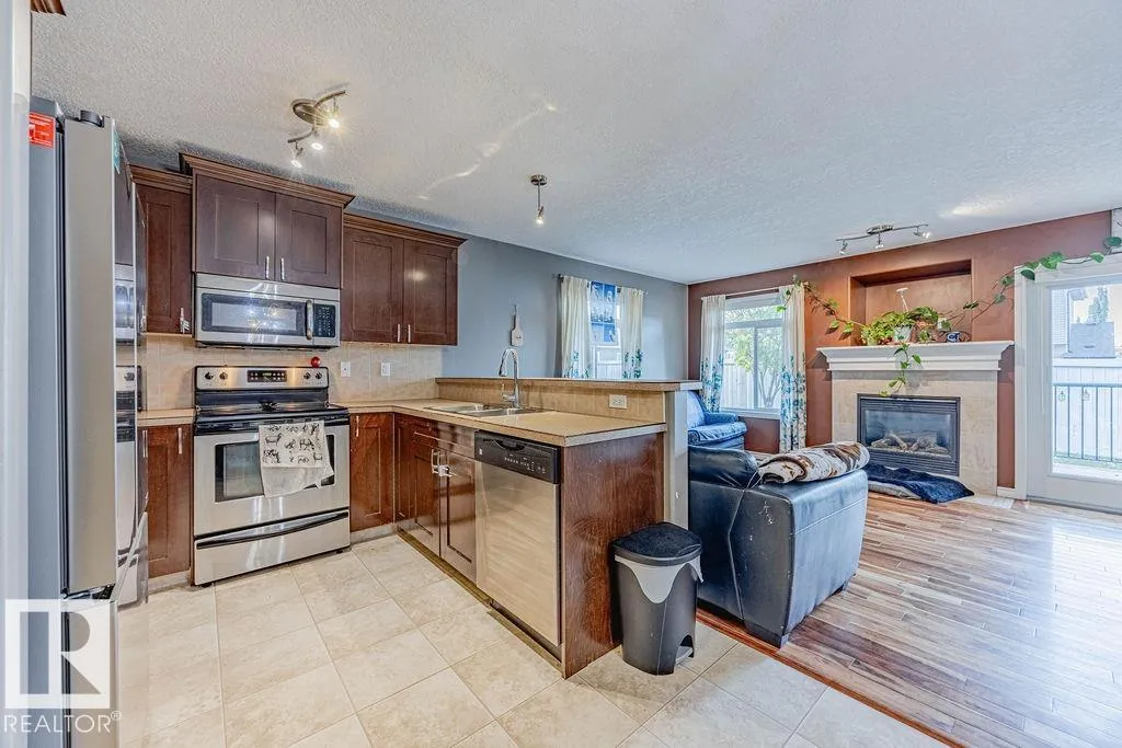 Welcome to this well-kept home in Maple Brooke Villas in Morinville. This 1280 sq ft 2-storey townhouse boasts a FULLY FINISHED basement, single attached garage, 2.5 baths, and an open-concept main floor with gas fireplace, maple cabinets, and 6 appliances included. The showhome features a bright master with vaulted ceilings, ensuite, spacious junior bedrooms, California drop-down ceilings, and a heated, insulated garage. Enjoy a park-like setting in the Lakes neighborhood, close to schools, shopping, and trails. Tons of visitor and street parking make life easy. Affordable, stylish, and move-in ready â perfect for families or anyone looking to enjoy Morinville living! Condo fee $361.68/month. 2025 Taxes $2,798.40 (id:27476)
