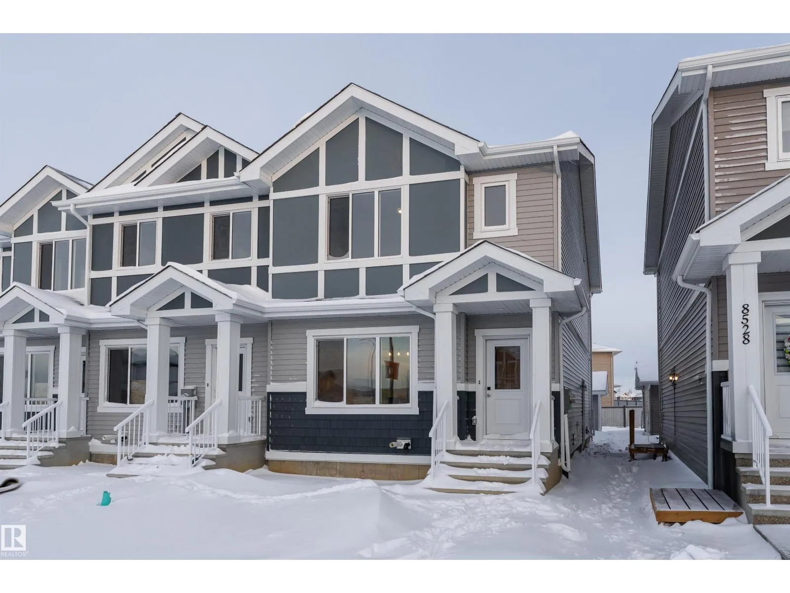Discover the perfect blend of style, comfort, and opportunity in this stunning brand new 1650 sq ft END UNIT triplex in the heart of Morinville. Nearly complete and loaded with modern features, this two storey home delivers an open and inviting main floor with a sunlit great room and a showpiece kitchen offering quartz countertops, full height cabinets, and a spacious island that is ideal for hosting family dinners or weekend get togethers. Upstairs, enjoy three generous bedrooms, including a bright primary retreat with a walk in closet and private ensuite. Upper floor laundry adds everyday convenience, while luxury vinyl plank flooring, elegant tile work, and fresh neutral finishes create a polished and timeless feel throughout. The SIDE ENTRANCE and potential for a legal suite open the door to future income or extended family living. Perfectly placed near the Morinville Leisure Centre, scenic trails, parks, shops, and cozy cafes, this home delivers small town charm with unbeatable modern living. (id:27476)