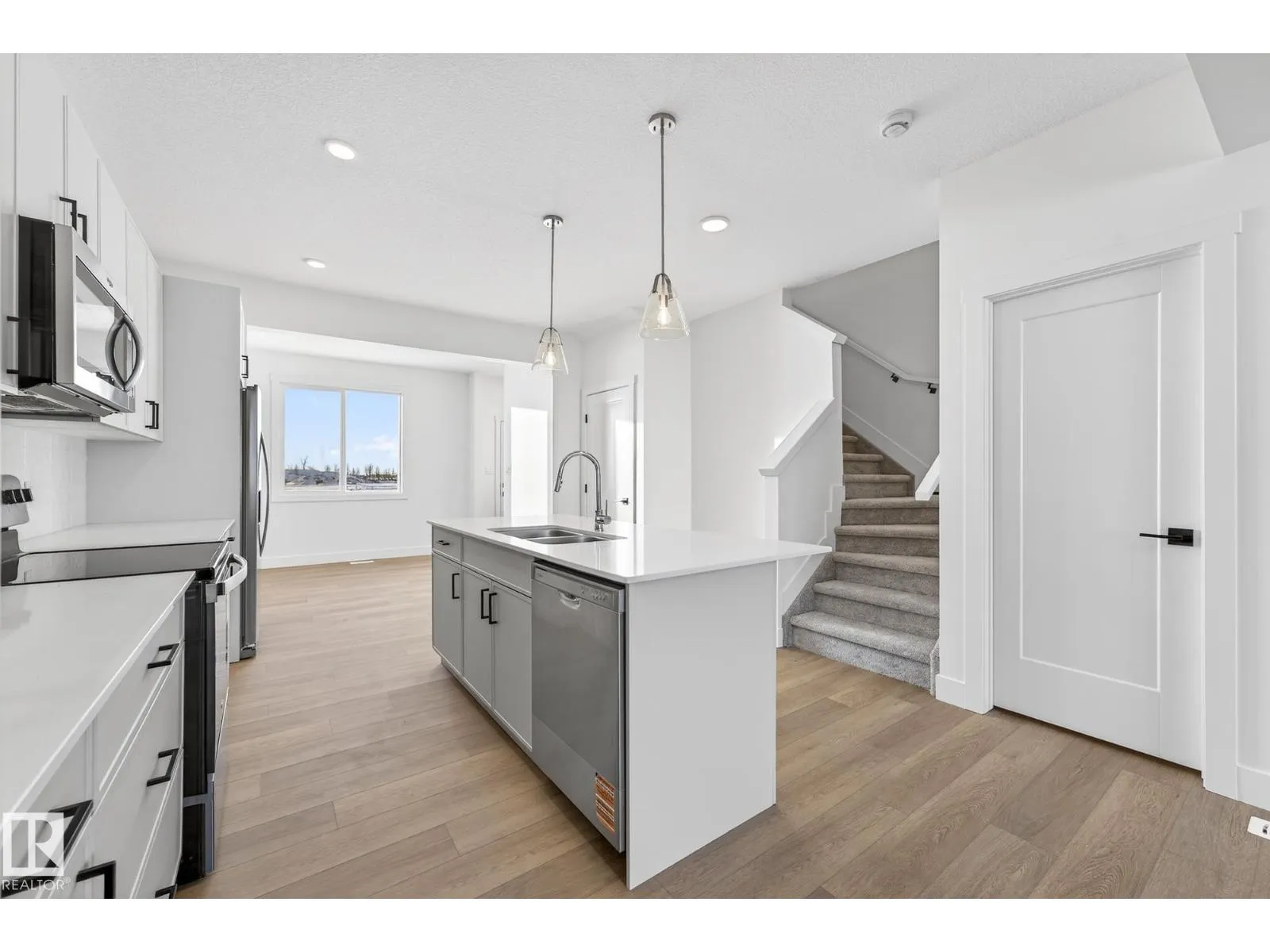 Located just minutes from St. Albert, this beautifully crafted 3 bedroom, 2.5 bathroom home offers 1,600 square feet of modern living space in the desirable community of Morinville. Built by Attesa Homes, the open-concept layout is designed for both entertaining and everyday comfort. The main floor features a bright, spacious living area highlighted by an electric fireplace, along with a stylish kitchen that includes a walk-in pantry for added functionality. A separate entrance to the unfinished basement provides excellent potential for future development. Upstairs, the primary bedroom serves as a private retreat with a well-appointed ensuite. A double detached garage completes this impressive home. (id:27476)