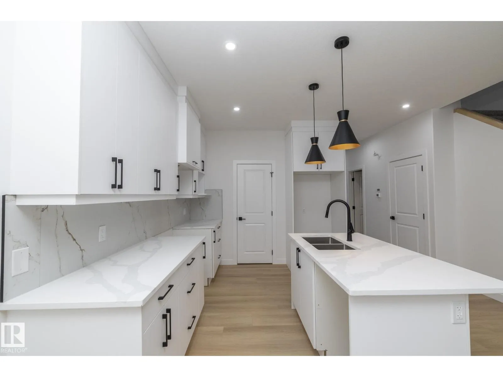 Welcome to this new custom built 2 storey home with all the builder upgrades & more. This modern floor plan will impress, from the large spacious kitchen featuring quartz counter tops, modern custom cabinets, expanded kitchen island, pantry & much more, to the cozy living room w fireplace feature wall & large windows. The oversized dining room will accommodate the largest of gatherings perfect for entertaining. A private den with built-in cabinets and 2 piece bathroom completes the main floor. Upstairs offers 3 good sized bedrooms including a large primary bedroom with full en-suite & walk-in closet with custom built in shelving. Convenient Upper floor laundry room, 2 additional bedrooms and 4 piece bath completes the upper level. Side entry leading to basement offers potential for a future suite and double oversized concrete parking pad in back are just a few of the added features of his home. Modern living with all the comfort features you would want. IMMEDIATE POSSESSION AVAILABLE, (id:27476)