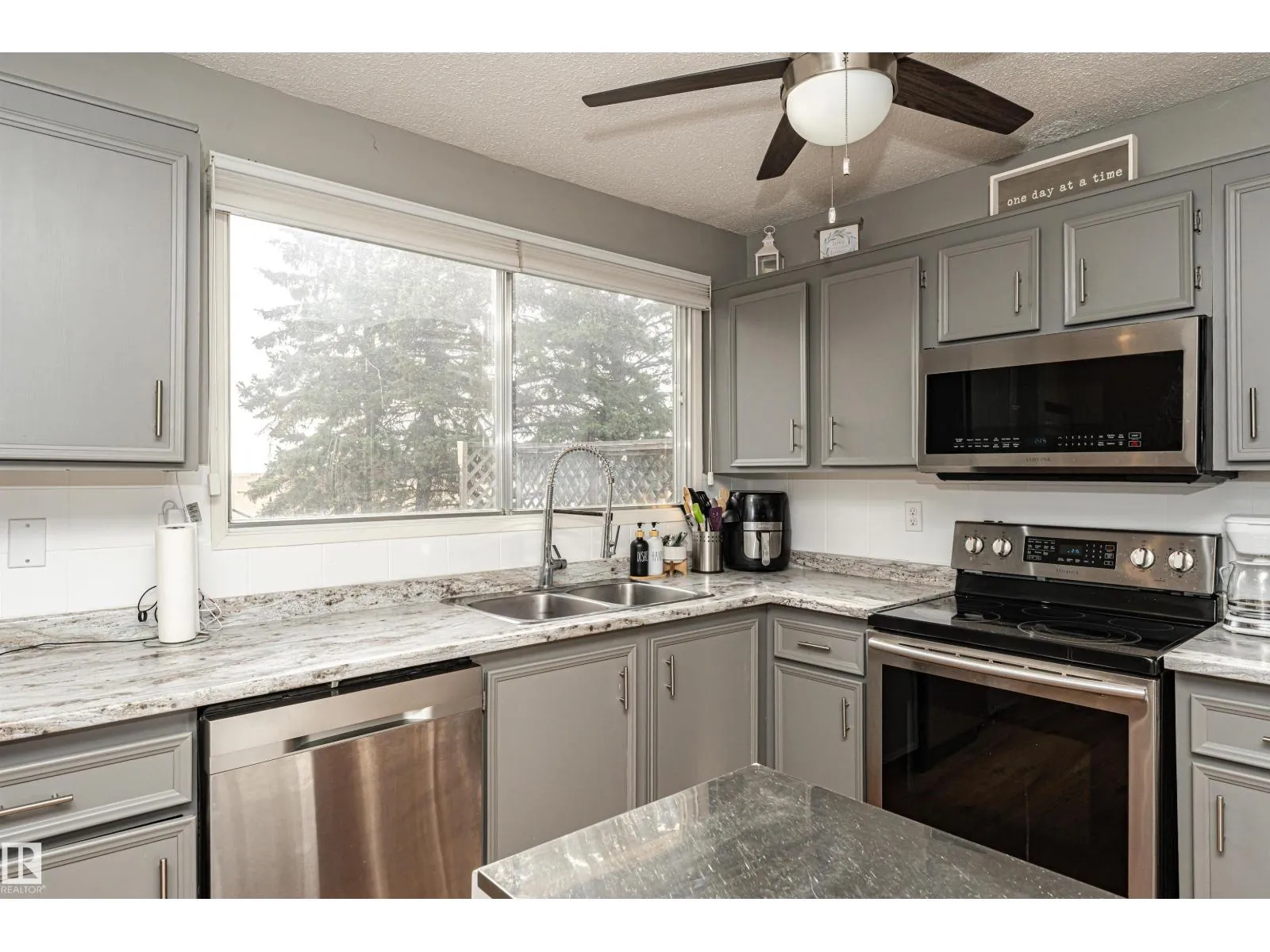 Donât miss out on this 4 bed / 2 bath bungalow with numerous renovations over the years. Located on a quiet street in a mature neighbourhood with no homes behind, make this a perfect setting. The bright and open great room leads to the dining area & kitchen with an oversized window looking into the south facing back yard. Three good sized bedrooms and 4 pc main bath complete the main level. A convenient extra sink in the primary bedroom makes getting ready for the day a little easier. The recently developed basement features a bedroom, 3 pc bath, laundry area, flex room, family room, and plenty of storage. Upgrades over the years include main floor paint, laminate flooring & hot water tank (2018), shingles & fence (2016), S/S appliances (2019), and new cement walkway. The spacious, private backyard with a deck and addtâl gazebo is great for entertaining, wonderful family times or just letting the kids run & play. (id:27476)