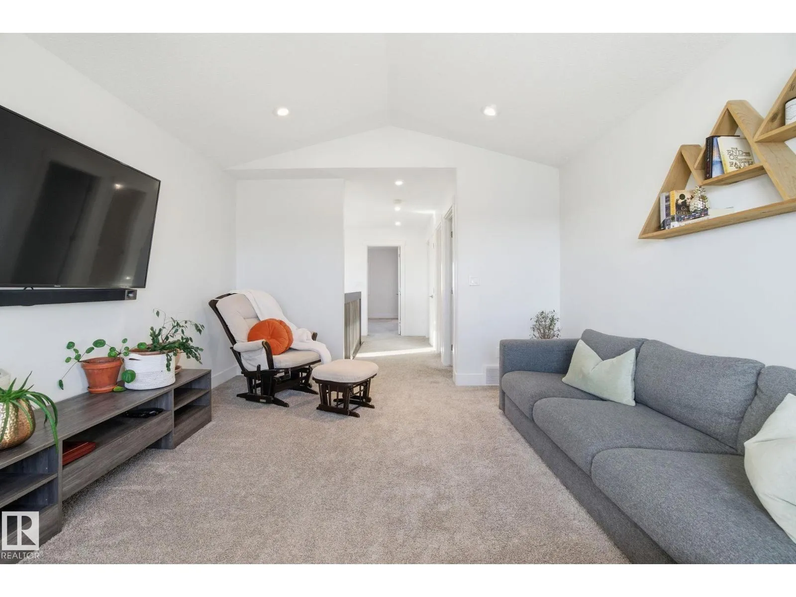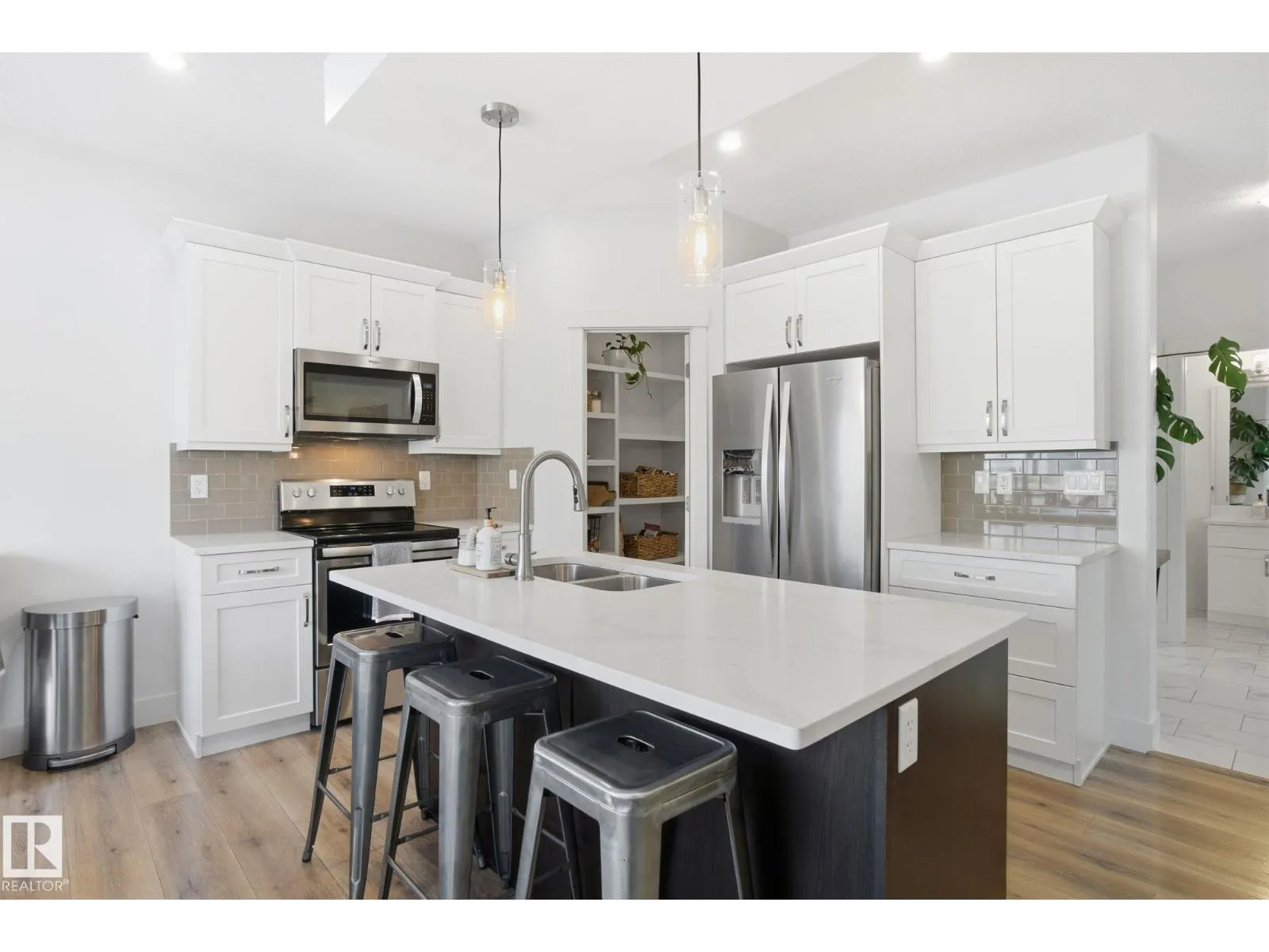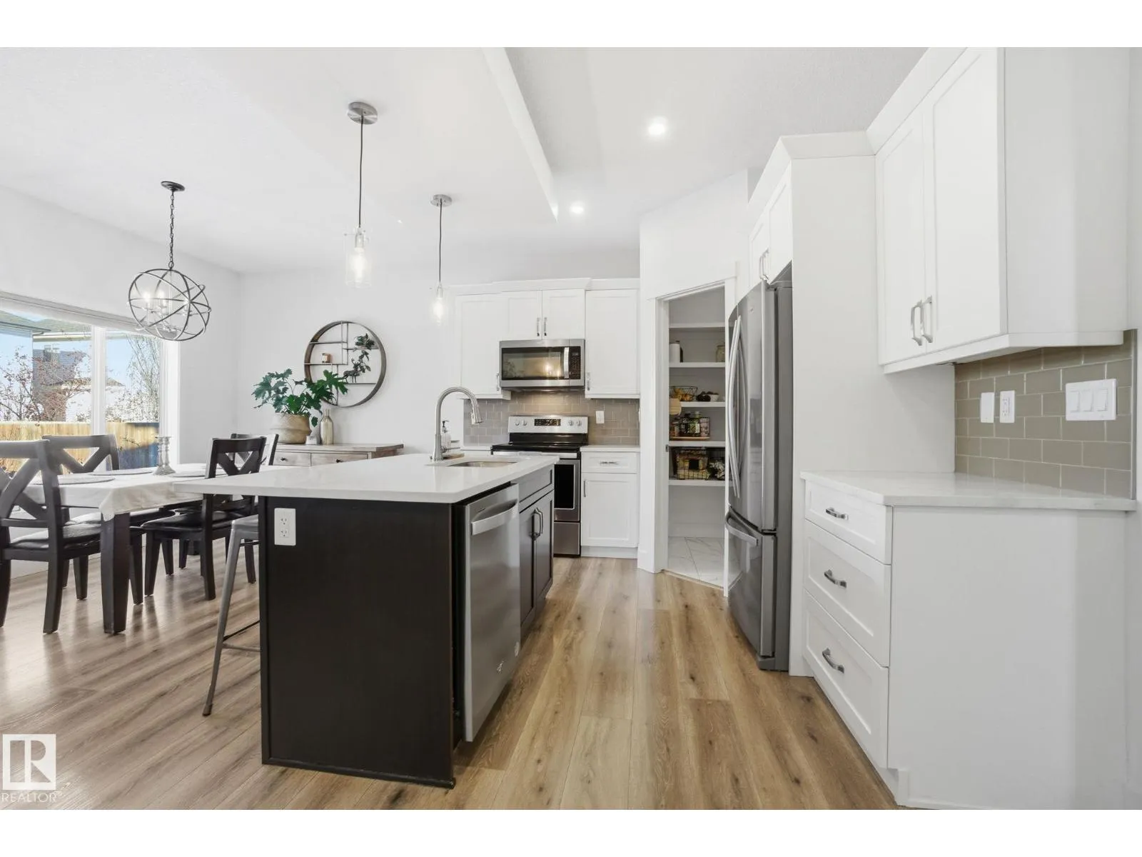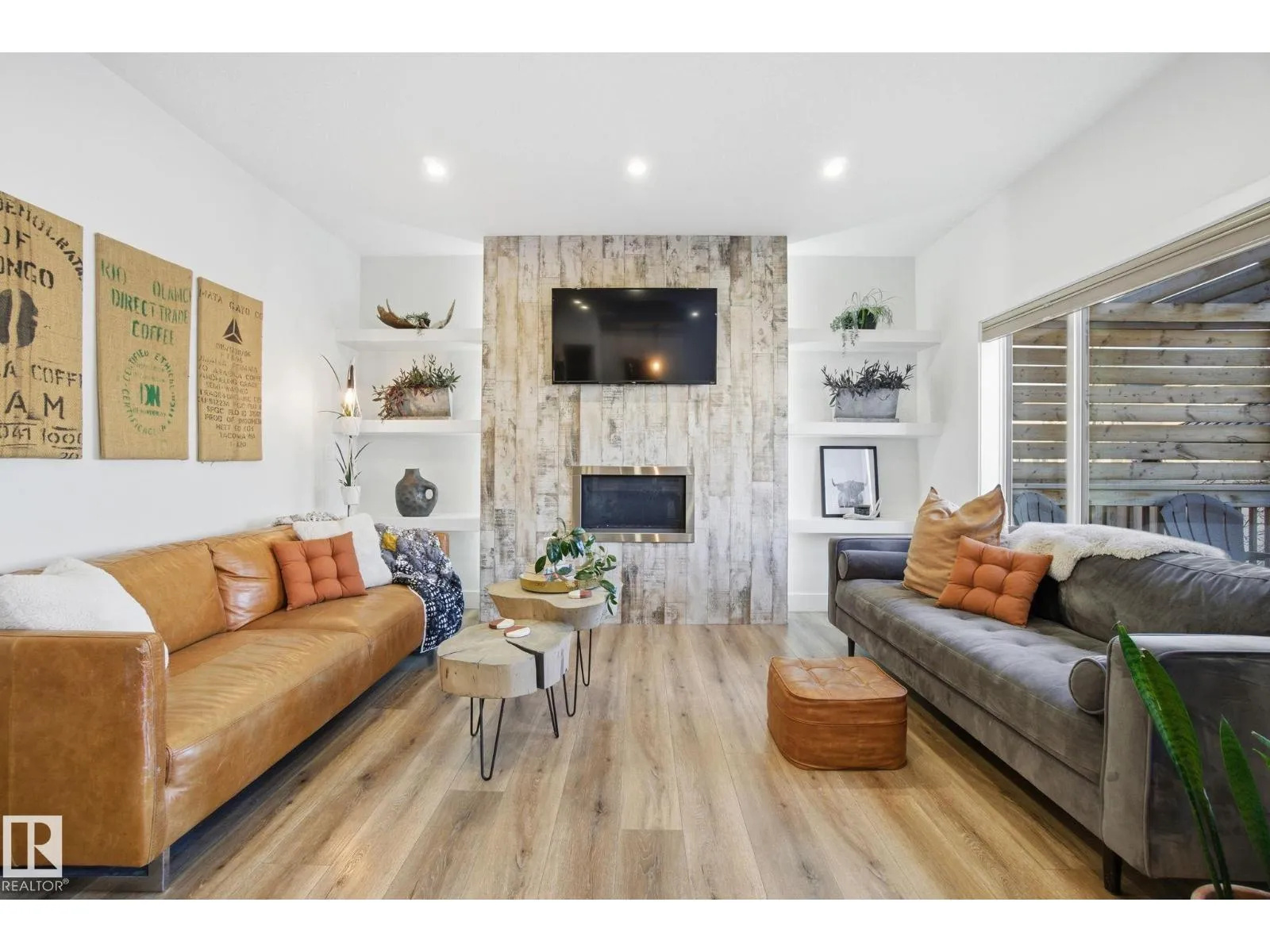 Welcome to this gorgeous home featuring stunning entry w/accent wall, custom stairway & open to above ceiling. Quartz counters throughout, ½ bath, generous main floor laundry w/sink, large kitchen w/under-cabinet lighting, soft closing drawers, walk thru pantry w/built-in shelving, ss appliances, & island w/seating. Generous dining area ideal for hosting & access to deck. The living room has floor to ceiling tile feature wall w/gas fireplace & decorative shelving. Upstairs offers great family room + 3 large bdrms, including primary w/walk-in closet, beautiful ensuite w/his & hers sinks, tiled glass walk-in shower & stand-alone tub. Basement contains good sized bdrm, framing complete + wiring for rec room, mechanical, storage & roughed-in bath. OS double garage w/floor drain, water tap, convenient side door & high ceilings w/2 storage racks. Landscaping done w/numerous fruit trees & specialty plants. Enjoy the summer on your large deck w/gas hookup & pergola. High quality build by Arcadia Homes. (id:27476)