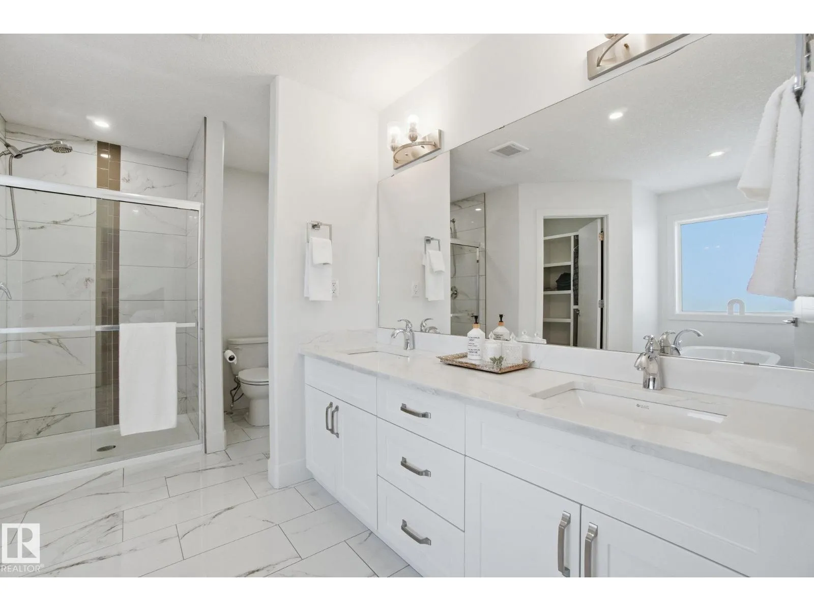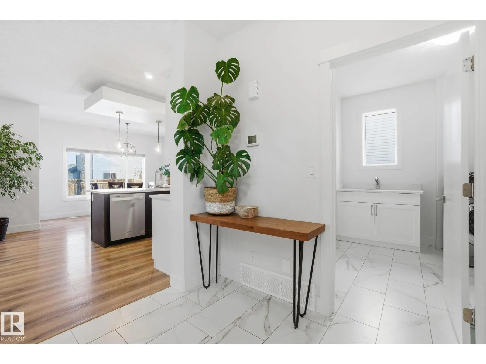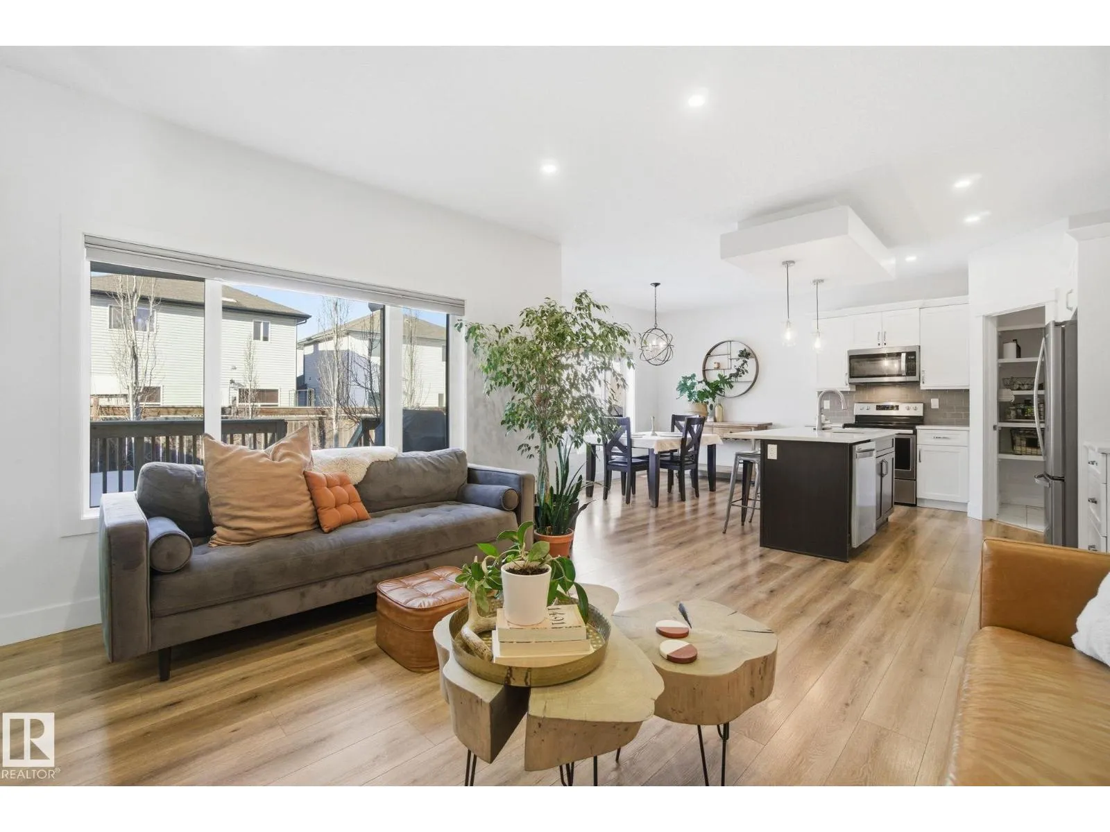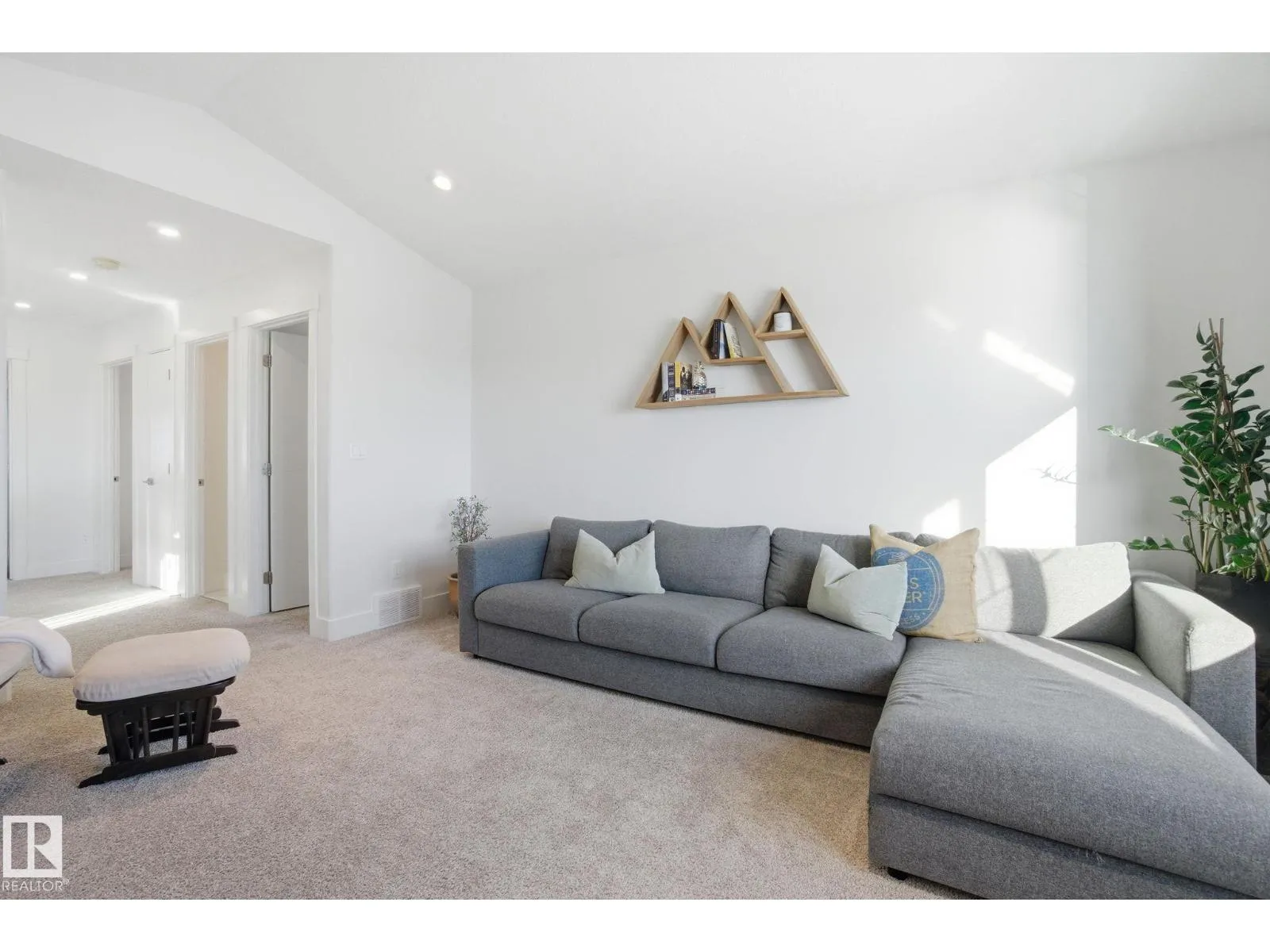 Welcome to this gorgeous home featuring stunning entry w/accent wall, custom stairway & open to above ceiling. Quartz counters throughout, ½ bath, generous main floor laundry w/sink, large kitchen w/under-cabinet lighting, soft closing drawers, walk thru pantry w/built-in shelving, ss appliances, & island w/seating. Generous dining area ideal for hosting & access to deck. The living room has floor to ceiling tile feature wall w/gas fireplace & decorative shelving. Upstairs offers great family room + 3 large bdrms, including primary w/walk-in closet, beautiful ensuite w/his & hers sinks, tiled glass walk-in shower & stand-alone tub. Basement contains good sized bdrm, framing complete + wiring for rec room, mechanical, storage & roughed-in bath. OS double garage w/floor drain, water tap, convenient side door & high ceilings w/2 storage racks. Landscaping done w/numerous fruit trees & specialty plants. Enjoy the summer on your large deck w/gas hookup & pergola. High quality build by Arcadia Homes. (id:27476)