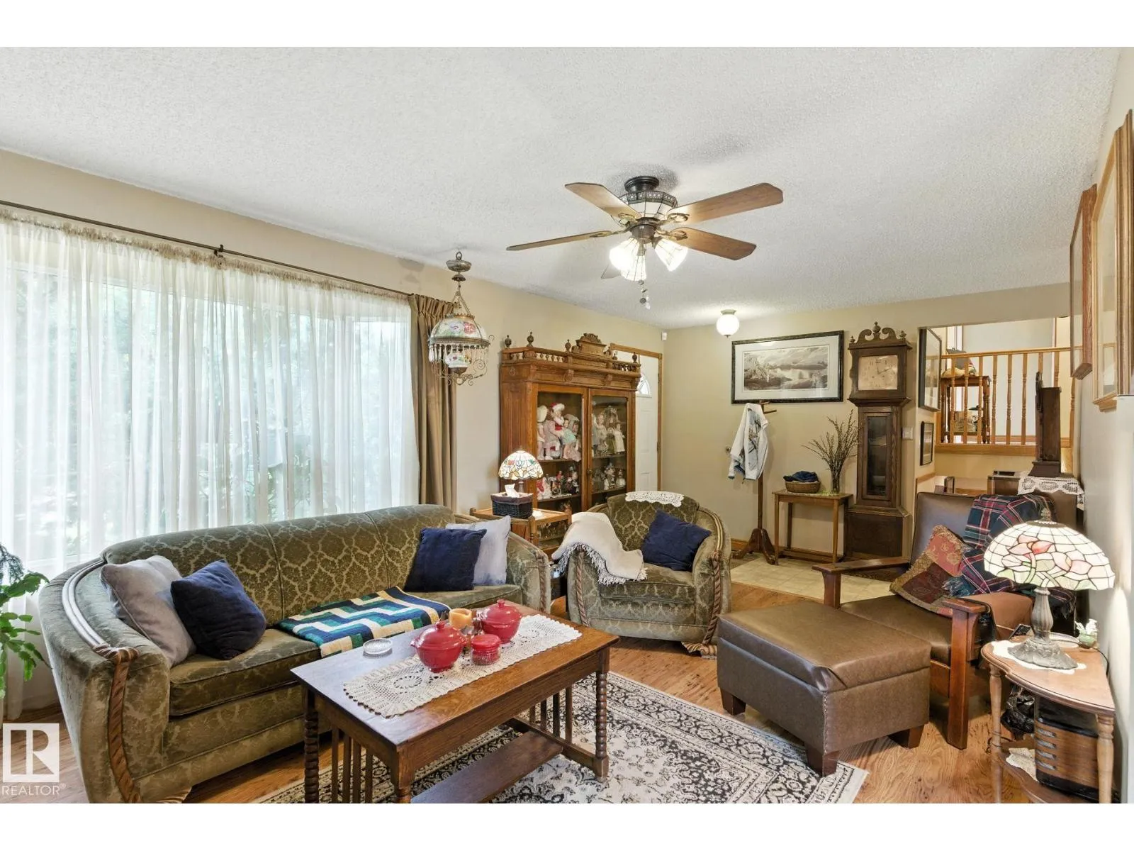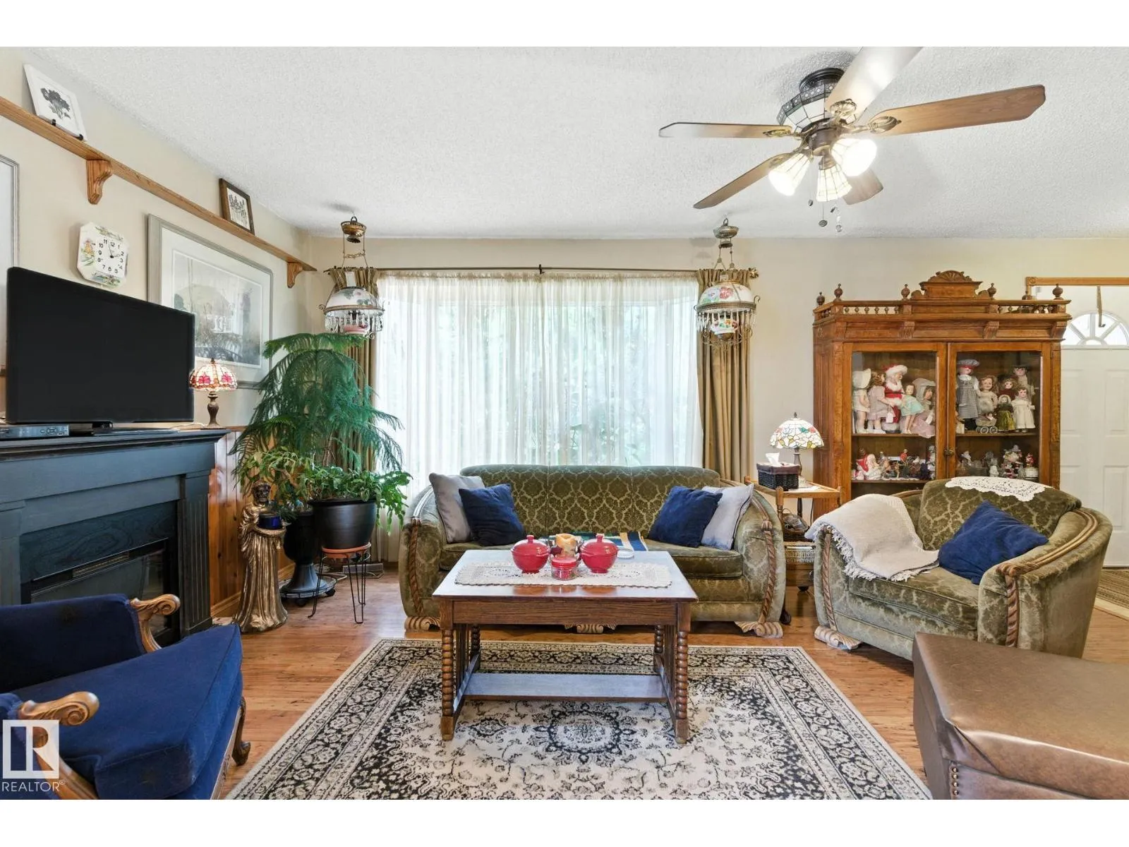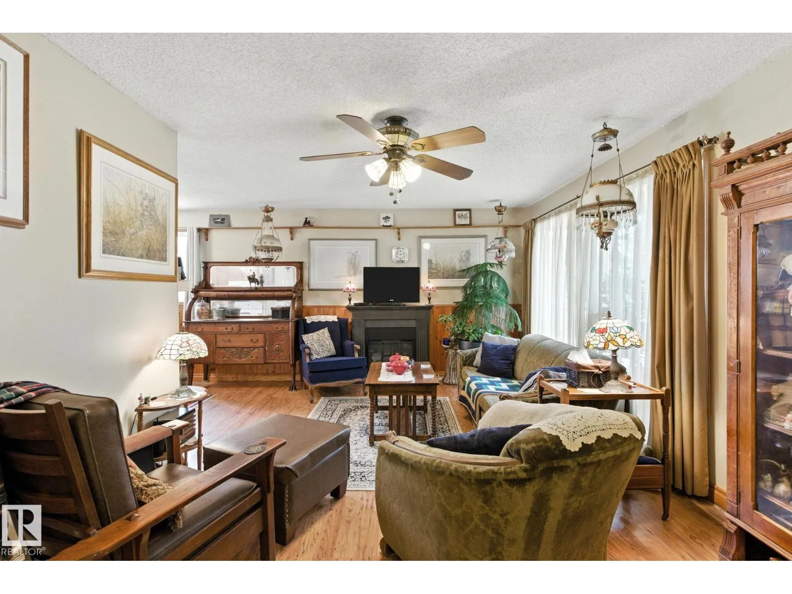 Flexible possession available! Full of warmth and character, this well-maintained 3-bedroom, 2-bathroom home is perfectly situated on a quiet street in Morinville. The inviting layout offers comfortable living spaces with a cozy lower level featuring a wood burning fireplace, ideal for relaxing evenings. Outside, you'll find a lovingly cared for yard with garden space and room to enjoy the outdoors. The double detached garage is a standout, with a portion converted into a heated shop for hobbies, projects, or extra storage. A charming, move-in ready home offering a peaceful setting and close proximity to schools, parks, and everyday amenities. (id:27476)