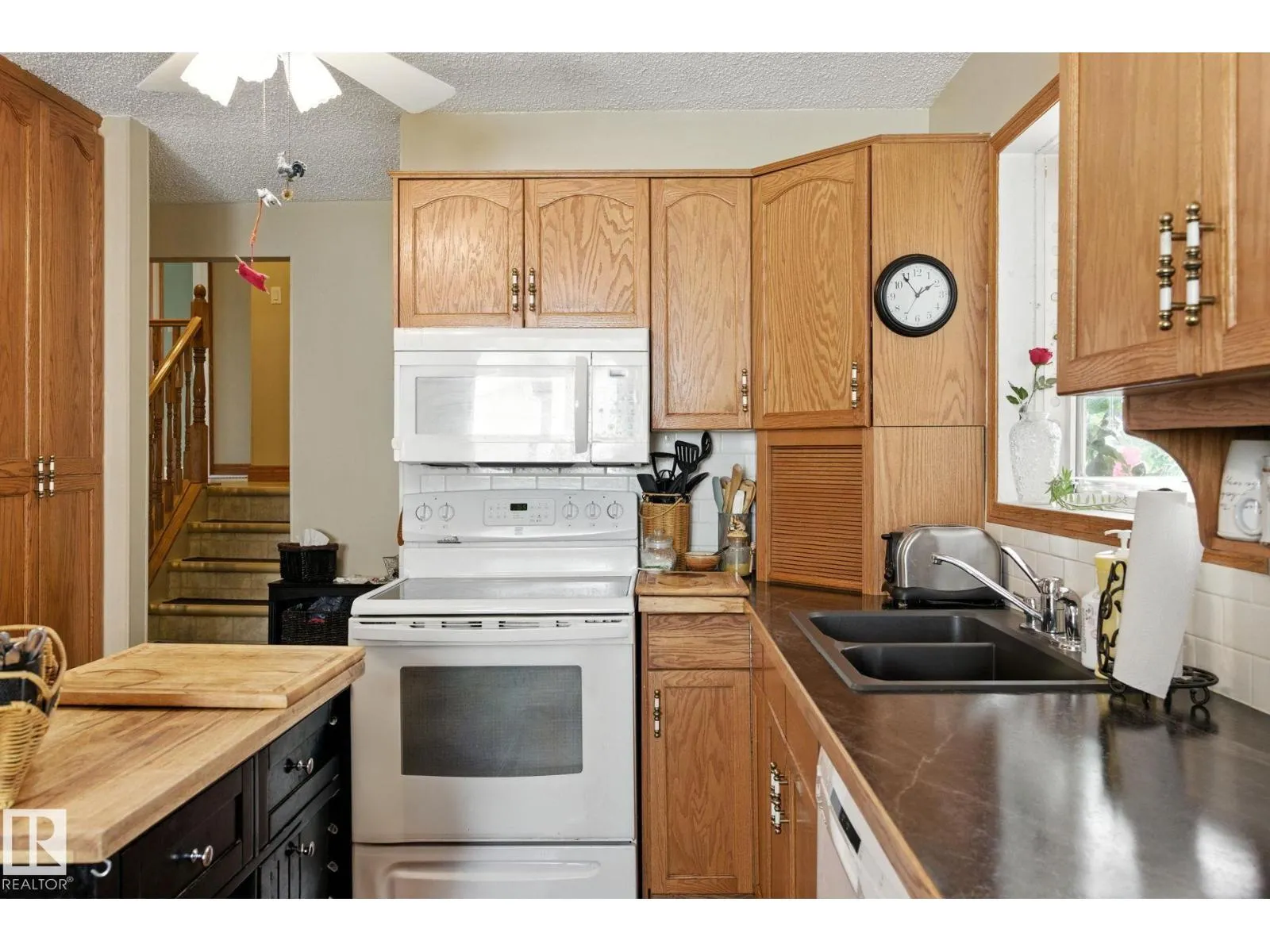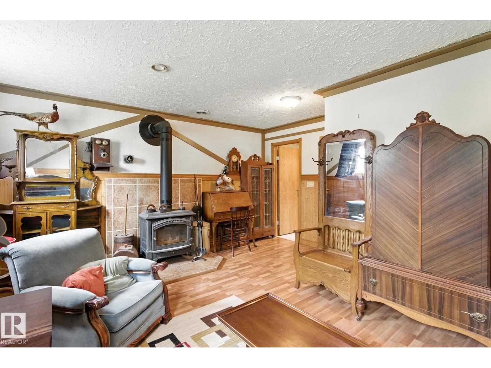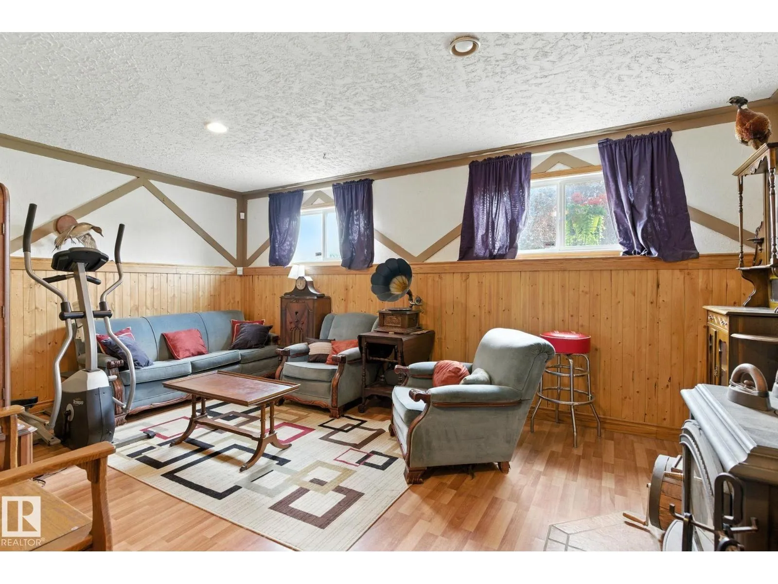 Flexible possession available! Full of warmth and character, this well-maintained 3-bedroom, 2-bathroom home is perfectly situated on a quiet street in Morinville. The inviting layout offers comfortable living spaces with a cozy lower level featuring a wood burning fireplace, ideal for relaxing evenings. Outside, you'll find a lovingly cared for yard with garden space and room to enjoy the outdoors. The double detached garage is a standout, with a portion converted into a heated shop for hobbies, projects, or extra storage. A charming, move-in ready home offering a peaceful setting and close proximity to schools, parks, and everyday amenities. (id:27476)