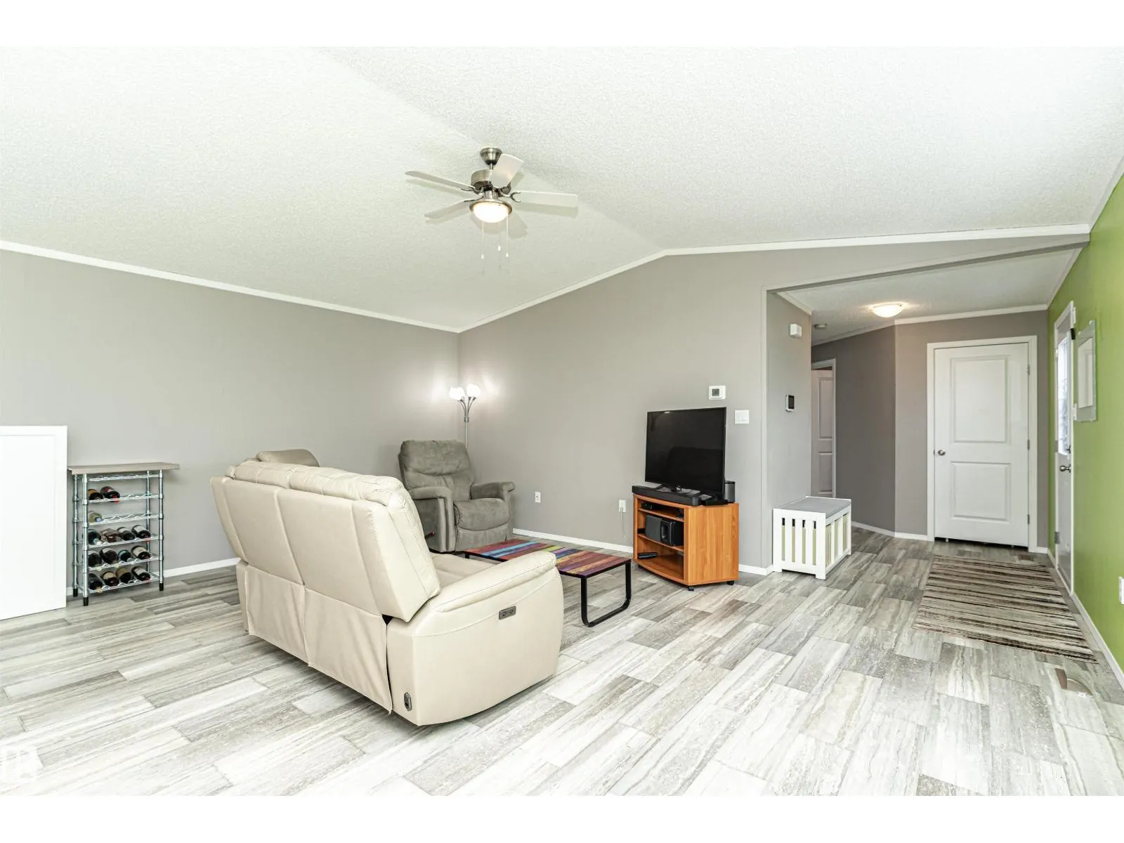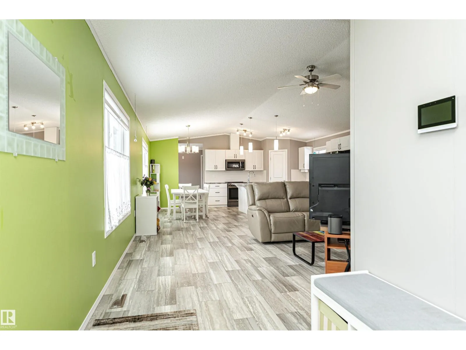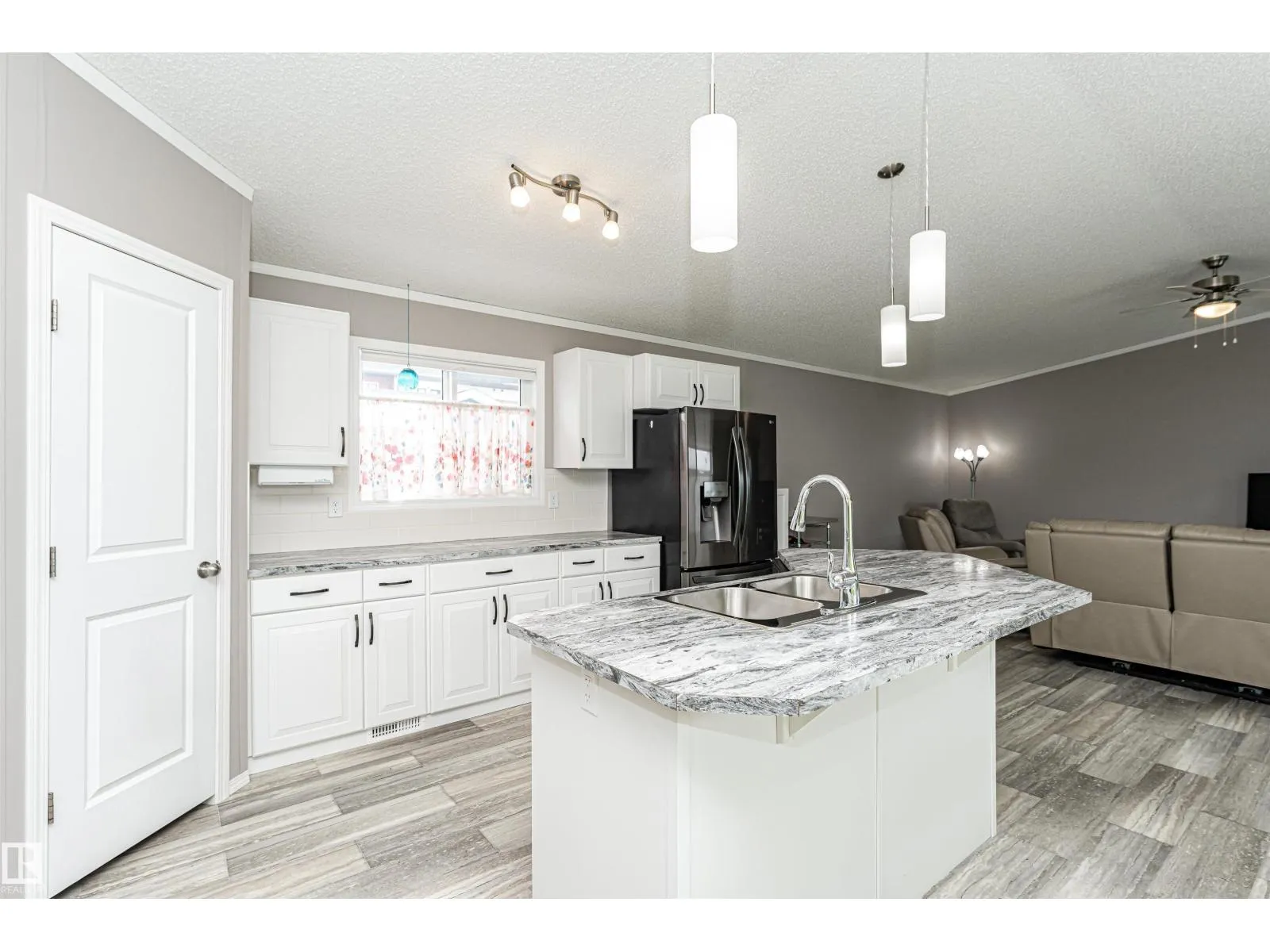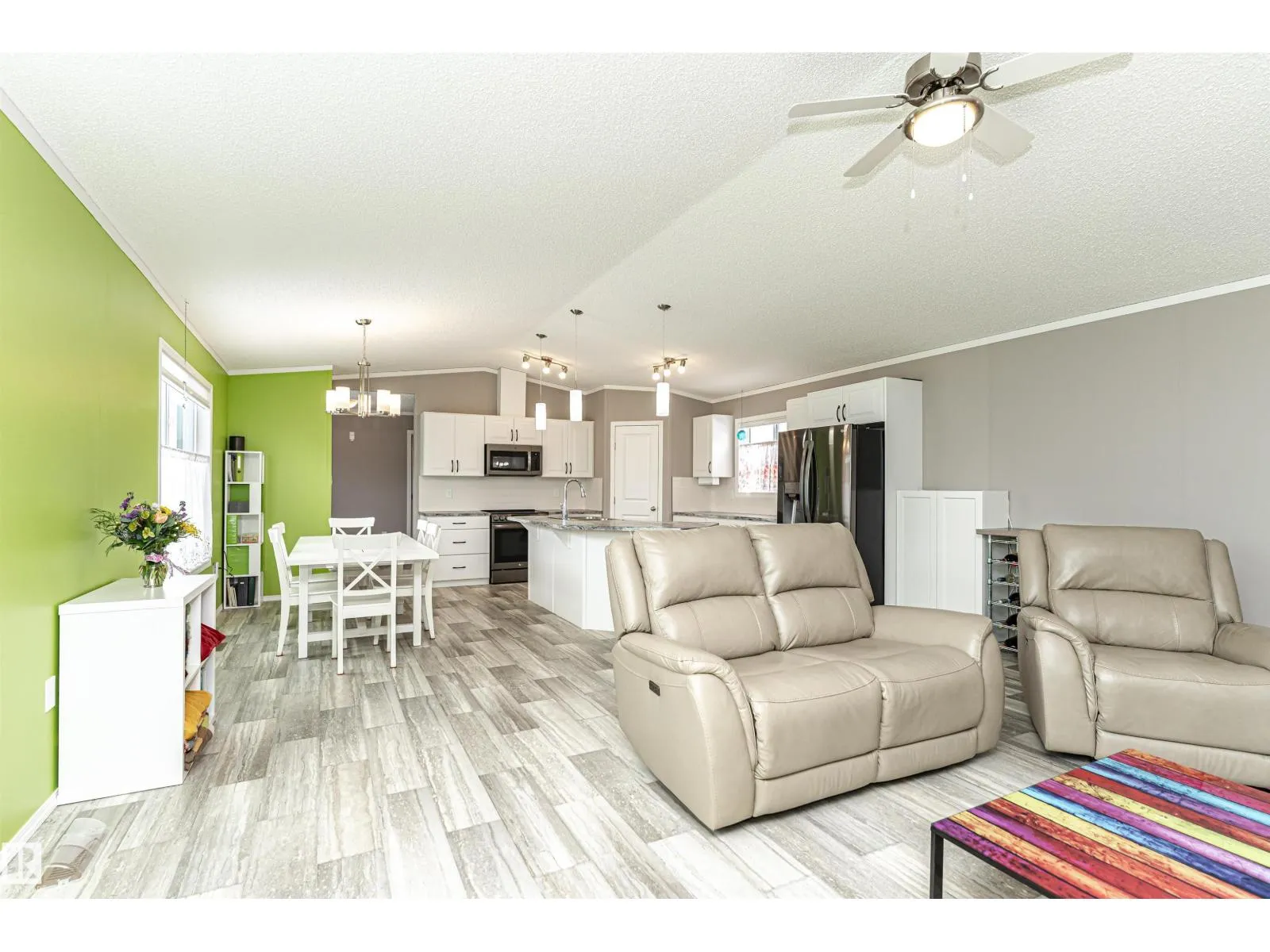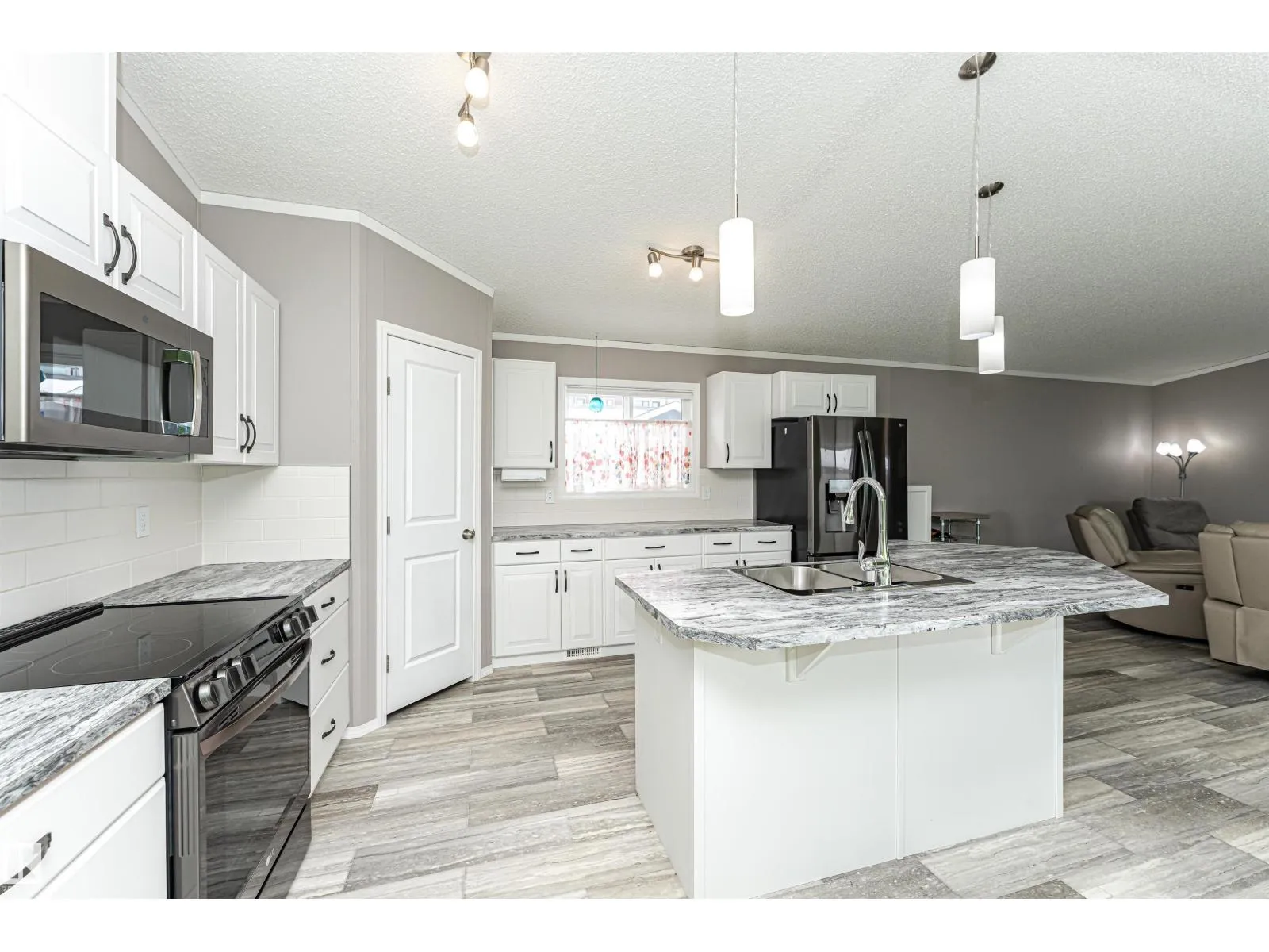 CUSTOMIZED MANUFACTURED HOME! Nestled in the quiet community of the Meadows of Morinville, just minutes from all town amenities, is this beautiful 1514 sq. ft. manufactured home boasts Central Air Conditioner, 3 bedrms, 2 full baths, & separate laundry rm. The large entrance flows through the open-concept living room and kitchen that features a large island with built-in sink & dishwasher, gorgeous upgraded countertops & high end Stainless Steel Appliances. There's ample cabinetry & a spacious corner pantry. The dining area has loads of room for your table & chairs, while vaulted ceilings & large windows create a bright, airy feel. The primary bedroom comes complete with a 3-pc ensuite & generous walk-in closet, with the laundry/utility room nearby. The two roomy junior bedrooms & another 4-piece bath completes this lovely home. Outside, enjoy the fully landscaped yard with gas BBQ hookup and oversized single garage! This affordable property is move-in ready for its next owner! Come check it out today! (id:27476)