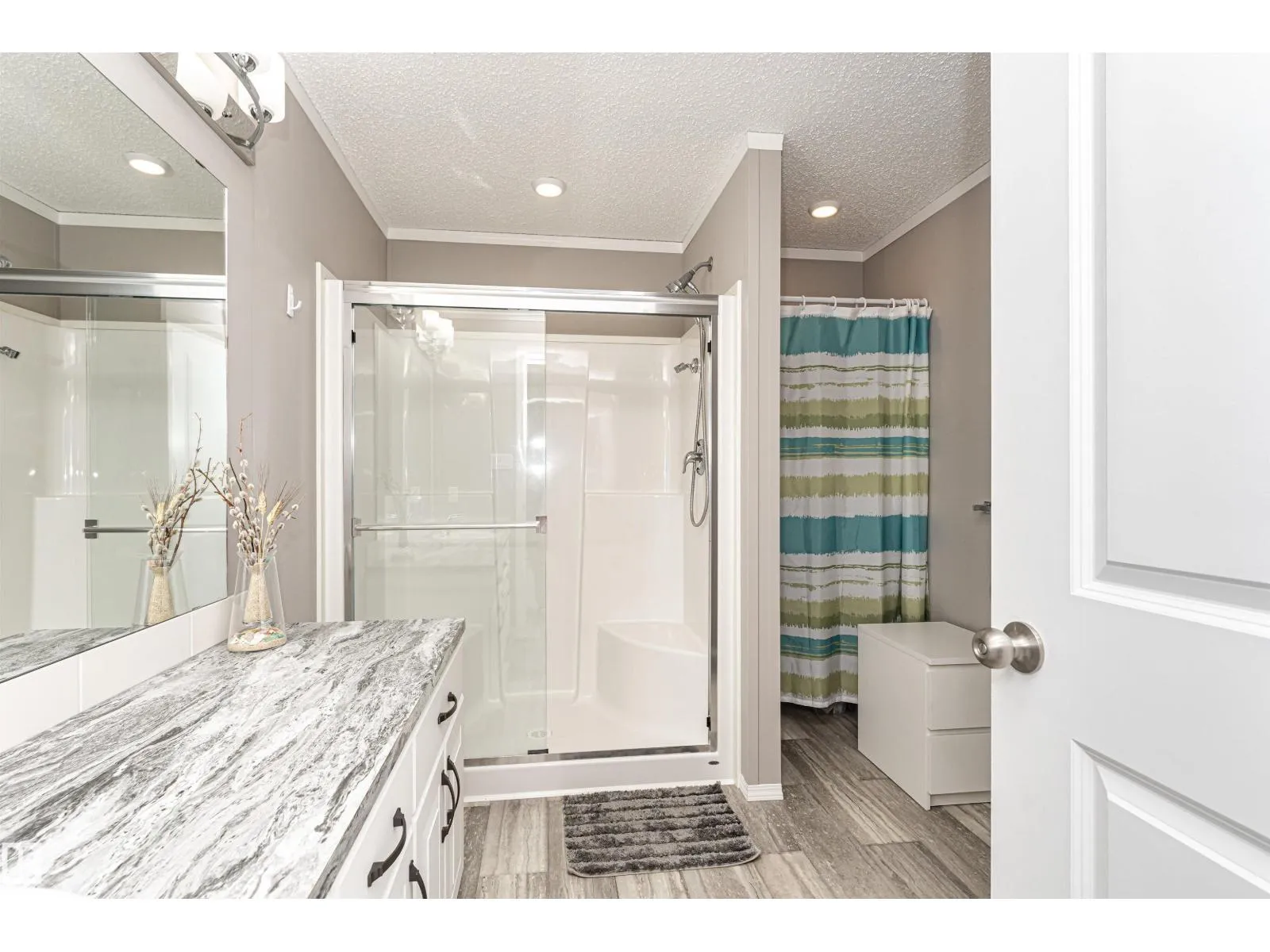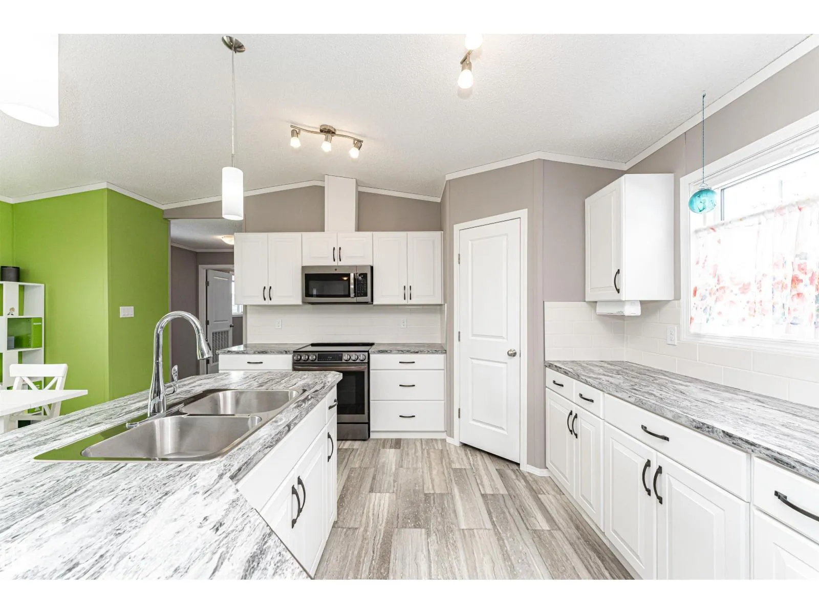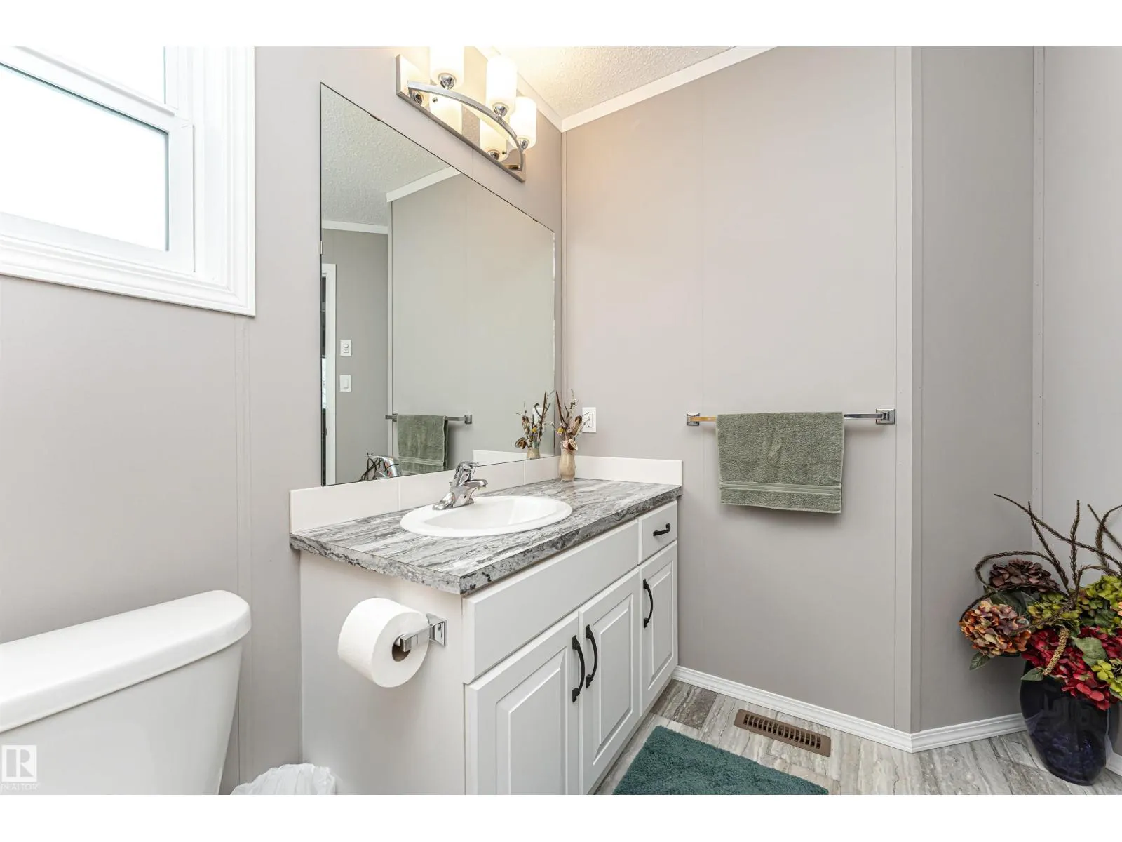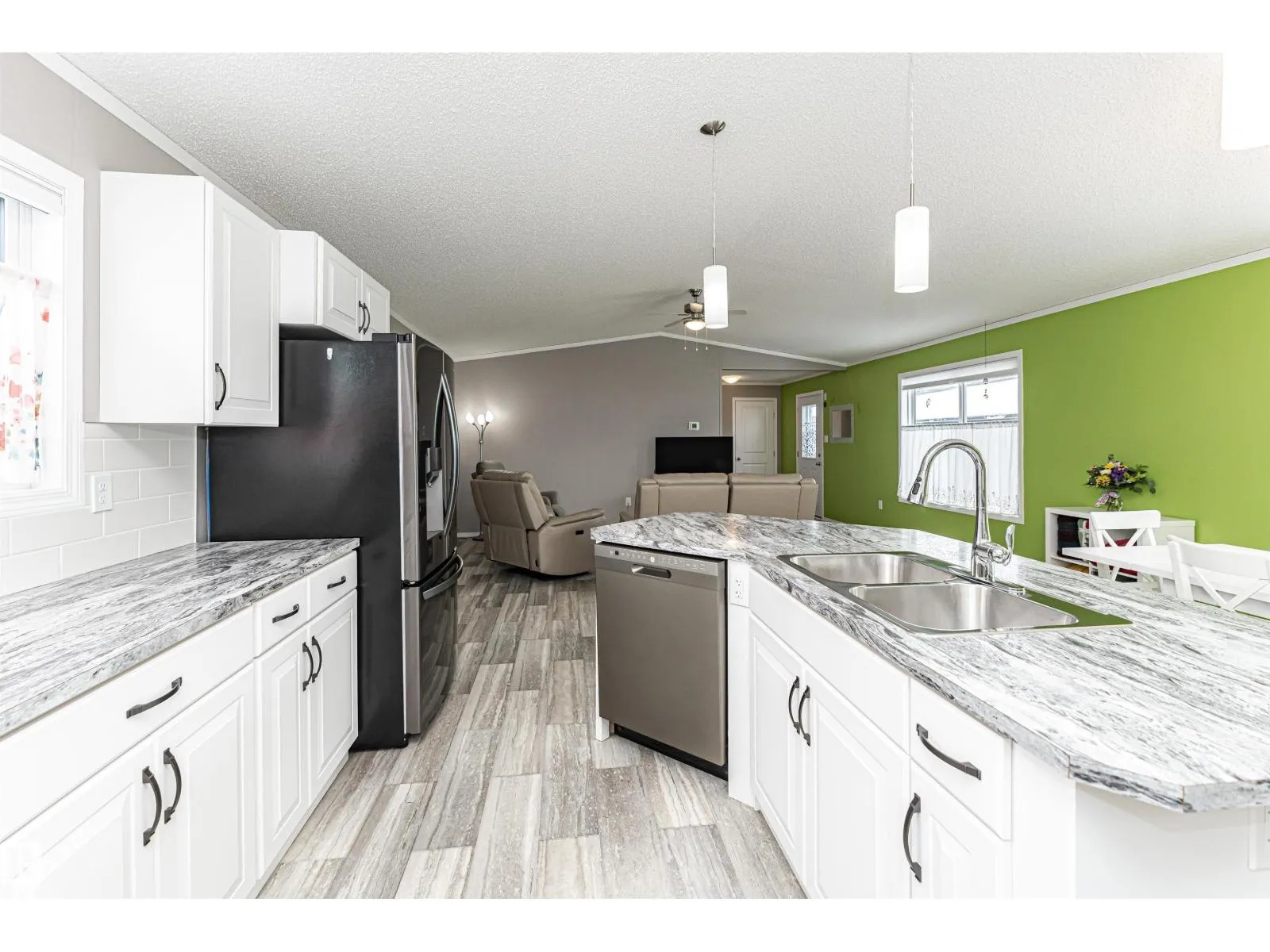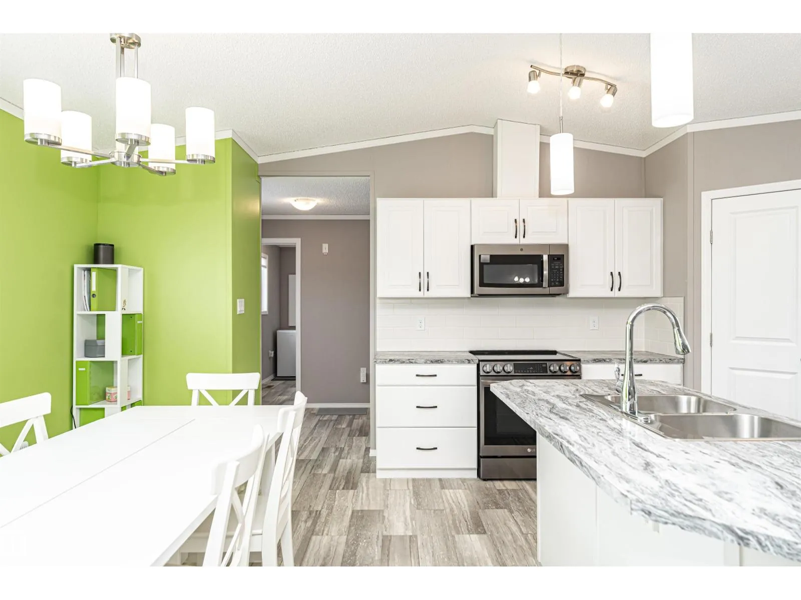 CUSTOMIZED MANUFACTURED HOME! Nestled in the quiet community of the Meadows of Morinville, just minutes from all town amenities, is this beautiful 1514 sq. ft. manufactured home boasts Central Air Conditioner, 3 bedrms, 2 full baths, & separate laundry rm. The large entrance flows through the open-concept living room and kitchen that features a large island with built-in sink & dishwasher, gorgeous upgraded countertops & high end Stainless Steel Appliances. There's ample cabinetry & a spacious corner pantry. The dining area has loads of room for your table & chairs, while vaulted ceilings & large windows create a bright, airy feel. The primary bedroom comes complete with a 3-pc ensuite & generous walk-in closet, with the laundry/utility room nearby. The two roomy junior bedrooms & another 4-piece bath completes this lovely home. Outside, enjoy the fully landscaped yard with gas BBQ hookup and oversized single garage! This affordable property is move-in ready for its next owner! Come check it out today! (id:27476)