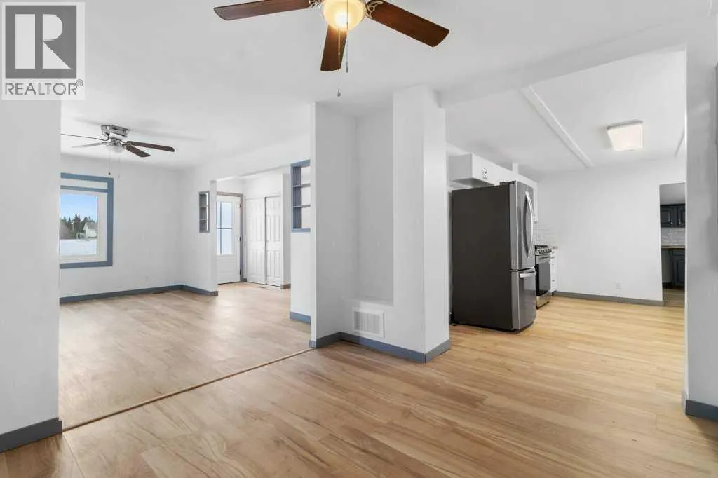 This beautifully updated bungalow offers bright, comfortable living on a large, fenced lot in a welcoming community setting. Painted in crisp white tones, the home feels airy and welcoming, with an open living room that flows nicely into the rest of the space. The kitchen features white cabinetry, stainless steel appliances, a gas stove, and a convenient pantry, creating a functional heart of the home. Vinyl plank flooring, new windows installed in 2025, and updated wiring add modern comfort and peace of mind. The spacious primary bedroom includes a private 4-piece ensuite, with two additional bedrooms located on the main level. The partially developed basement offers added flexibility with one additional bedroom. Major updates include a drilled well completed in 2003 with an iron filtration system, a furnace approximately 10 years old, a roof replaced within the last 5 years, and a tank and field replaced in November 2025. Outside, enjoy the expansive yard with mature fruit trees, full fencing, and a single detached 15 x 24 foot garage. Ideally located close to Wolf Creek Golf Course and the community hall with an outdoor skating rink, this property blends small-town charm with nearby recreation. (id:27476)