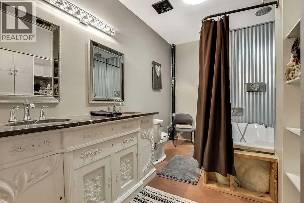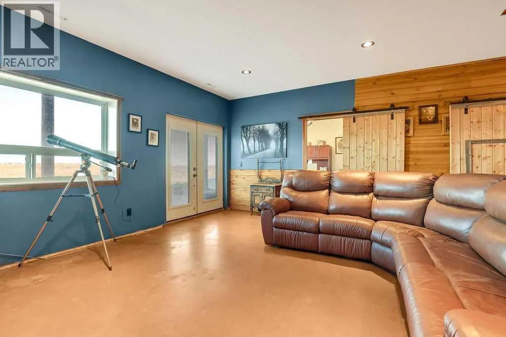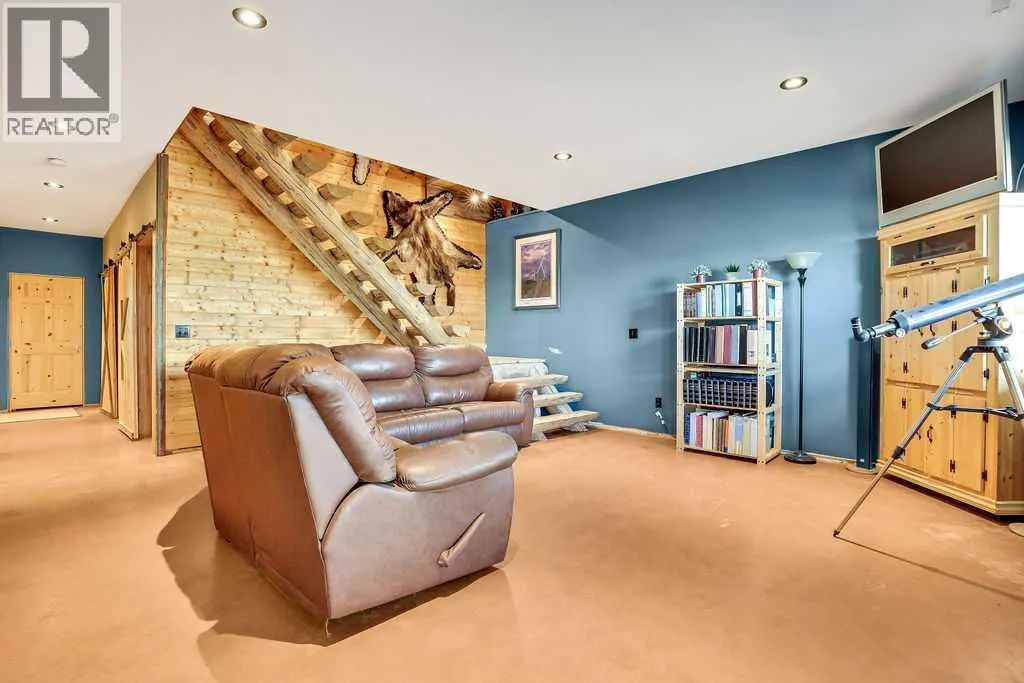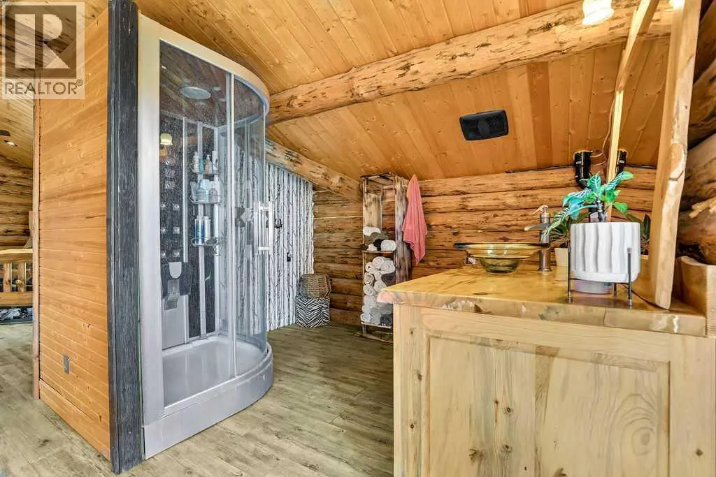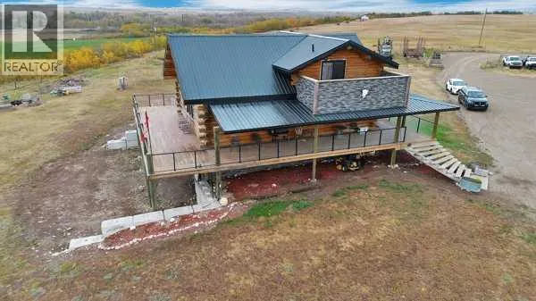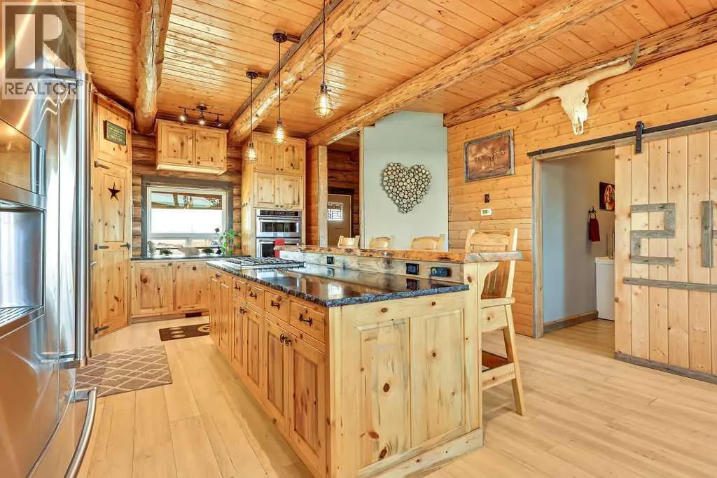 Bring your business and your family to this one-of-a-kind property that blends rugged utility with rustic comfort.Perched high on a hilltop with 360-degree views, this 27.82-acre native pasture property (plus 6 acres of leased land along the river) offers unmatched sunsets, mountain vistas, and a front-row seat to the Bow River valley. Just 40 minutes from Calgary, itâs the perfect balance of rural seclusion and easy access to the city.At the heart of the acreage sits a solid custom-built log homeâwarm, inviting, and uniquely designed.Over 1,800 sq. ft. of living space4+1 bedrooms, 3 bathrooms. Fully Developed Basement.Sun-drenched open-concept living areas with natural wood finishes.Striking live-edge island kitchen for family and entertainingWood-burning stove for cozy eveningsMaster loft retreat with his-and-hers walk-in closets, spa-like ensuite (steam shower, double vanities), private balcony, and two-person hot tub under the stars. The SHOP for mechanics, truckers, and serious operators, the 5,100 sq. ft. shop is second to none.Radiant heat & floor drainageThree overhead cranes (1 Ã 3-ton, 2 Ã 1-ton)Car & truck hoists16x12 walk-in cooler. Warm Storage.On-site bathroom & laundry. Mezzanine Man Cave.3,500-gallon diesel storage tank. Double Decker Storage Can.1,900 sq. ft. man-cave/office spaceIllegal suite for staff housing or rental incomeLifestyle Extras.Ideal for horse lovers with open pasture. Clay Based Area for future riding arenaSpace for trucks, equipment, or large-scale operationsA true blend of work and lifestyleWhy Itâs Special?. This property is more than just land and buildingsâitâs a rare opportunity to live, work, and play without compromise. Whether youâre growing a business, raising a family, or simply looking for wide-open space with top-end amenities, this acreage is in a league of its own.Will not be replaced at this Price! Won't Last Long!Donât miss your chance. Book your private tour today and expe rience the âTop of the Worldâ lifestyle for yourself. Enjoy the Wildlife. Nature's Home. (id:27476)