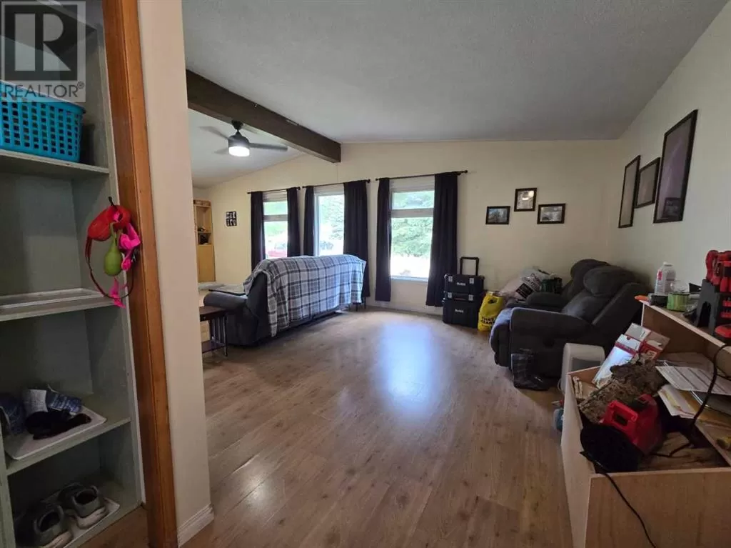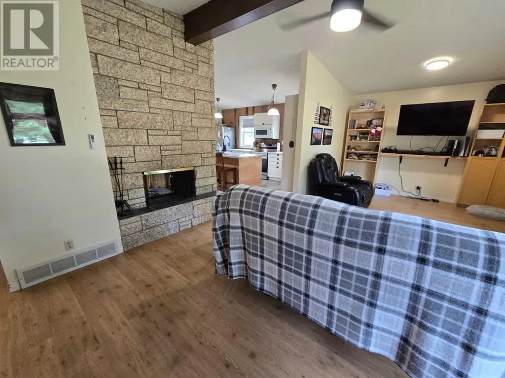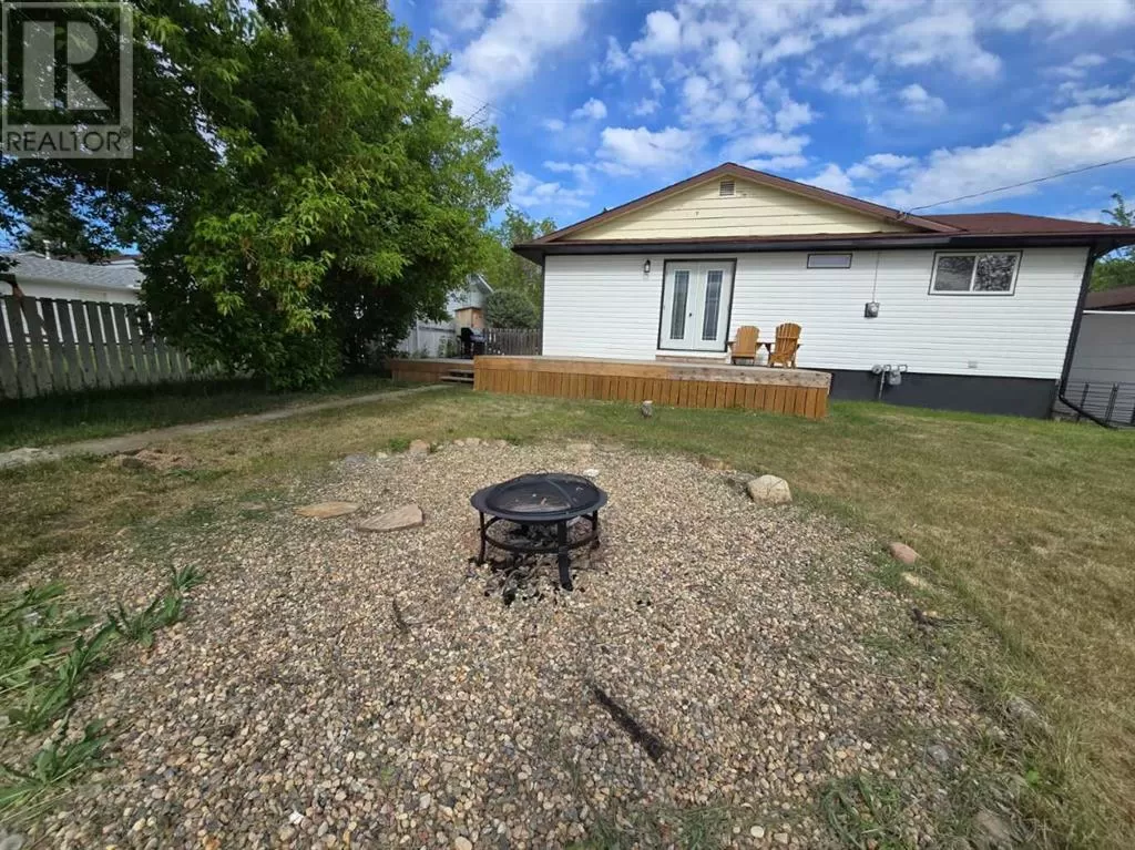 Welcome to this spacious family home nestled on an oversized lot in the peaceful Village of Myrnam. Boasting 3 bedrooms and 2 bathrooms on the main floor, this home offers comfort and functionality for everyday living. The open-concept living and dining area features a cozy two-sided wood-burning fireplaceâperfect for staying warm during chilly Alberta winters. The master suite includes a convenient 2-piece ensuite and patio door access to the back deck. Downstairs, the partially finished basement offers a large family room, additional bedroom or office, bathroom, and ample storage. Outside, enjoy the expansive backyard that backs onto open farmlandâno rear neighbors for added privacy. Complete with a detached garage, this property offers space, serenity, and potential for your family's next chapter. (id:27476)