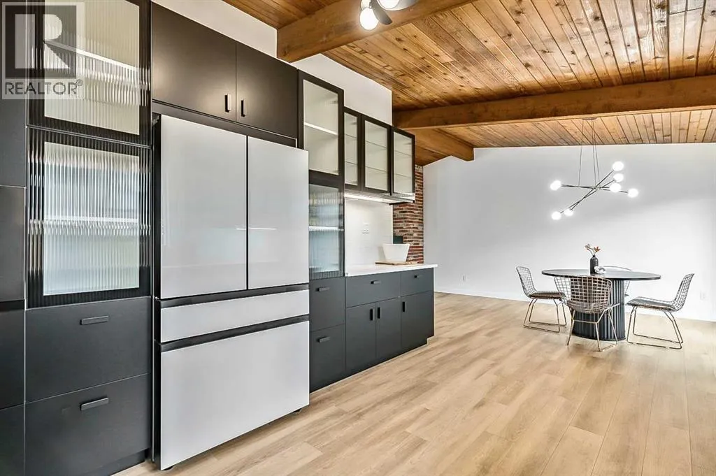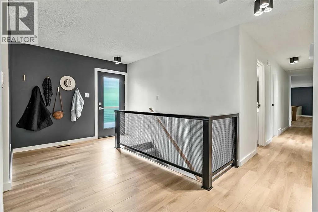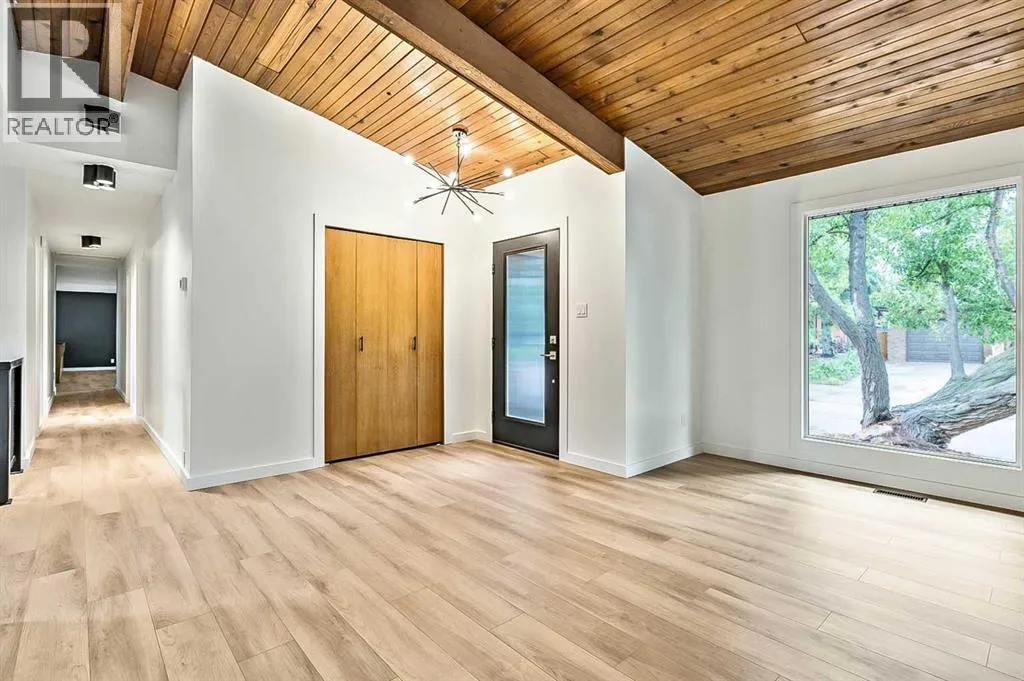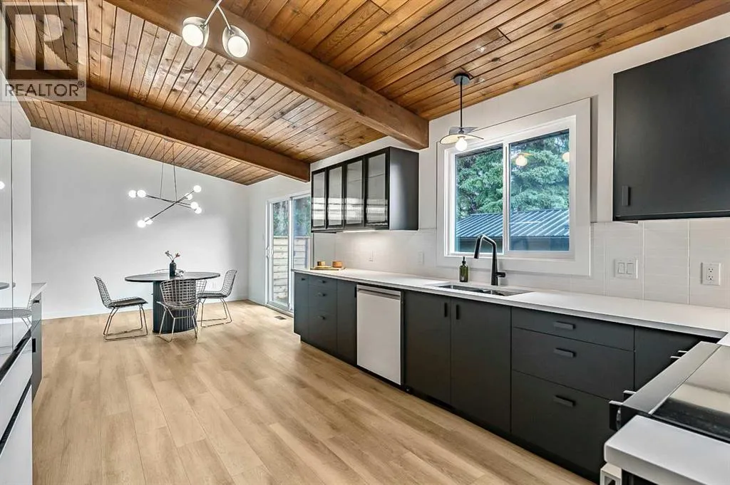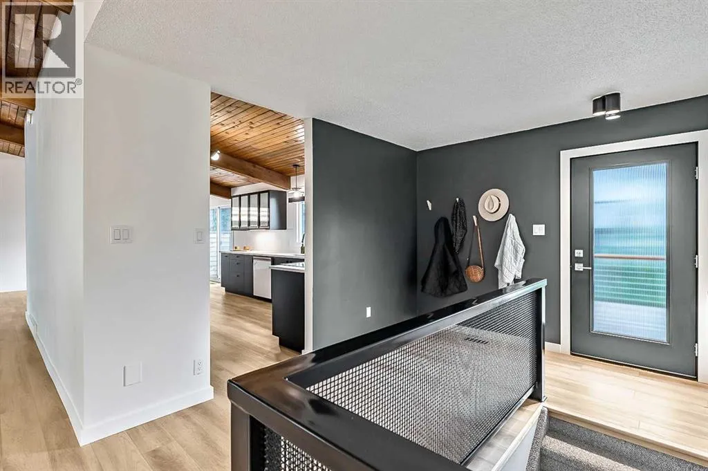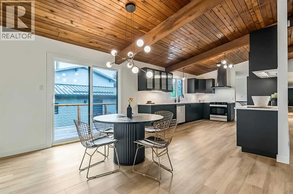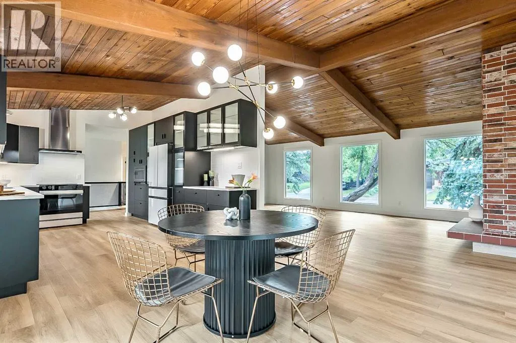 See how far your dollar can go in Nanton . Show-stopping renovation. You canât build this quality for less. Over 3,700 sq ft of reimagined living in a fully transformed five-bedroom, 3.5-bath corner home. Every detail is tailored for modern living while preserving structure and style.This is a move-in-ready home in an established neighbourhood.The exterior makes a refined statement with a new metal roof on both the garage and the home, all-new windows and doors, and sleek steel cable railings on the deck. A secluded yard with mature trees offers privacy and a perfect backdrop for outdoor gatherings, wrapped in new fencing and thoughtfully designed decks.Inside, architectural features abound. A show-stopping vaulted cedar ceiling blends clean lines with organic textures. Two wood-burning fireplaces add character and warmth. All-new flooring flows throughoutâmodern and durable vinyl plank upstairs, plush carpet down, and wall-to-wall tile in the spa bathroom. Fresh cloud-white walls are paired with reclaimed trim and character-rich wood panelling, lovingly restored.The kitchen is a contemporary centrepiece with a mix of solid and glass fronts, an abundance of storage, quartz counters, Samsung Bespoke appliances, and a custom tile backsplash. Each bathroom feels like a boutique spa, from the heated tile floors and cedar sauna in the lower-level bath to the cork wallpaper and floating vanities in the primary suite.A versatile bonus room offers endless possibilities for work, play, or relaxation. Updated mechanicals include a new furnace, serviced secondary furnace, new hot water tank, and upgraded electrical. New hardware, fixtures, lighting, and thoughtful touchesâlike the custom steel railing and reclaimed oak banisterâcomplete the transformation.Close to schools and everyday conveniences, this is a must-see modern masterpiece that effortlessly blends design, function, and comfortâready to welcome your next chapter beautifully. (id:27476)