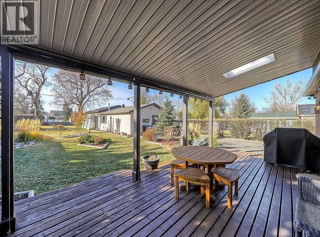 Welcome home to this beautifully maintained 1,686 sq. ft. bungalow, perfectly situated on a rare ½ acre lot in the charming community of Nanton, AB. From the moment you arrive, youâll feel the pride of ownership and care that has gone into every detail of this special property.Step inside to a bright, open-concept main level that blends comfort and functionality.This home features 3 bedrooms and 2 full bathrooms, one being a 3piece ensuite off the primary bedroom. The main-floor laundry adds everyday convenience . The spacious kitchen features high-quality custom oak cabinetry, updated appliances, and plenty of storage. Enjoy family meals in the inviting dining area or relax with a coffee in the sunny front sitting room. The living room offers a cozy retreat with a beautiful gas fireplace, perfect for Alberta evenings.The undeveloped basement is a blank canvas â imagine a large future family room and home gym. Thereâs also an abundance of storage space, two mechanical rooms and an Nanton home isnât complete without a spacious Cold Room!Outside, your own private oasis awaits! Relax on the covered back deck overlooking a park-like yard with mature trees, raised garden beds, and perennial landscaping. Enjoy apple and sour cherry trees, Saskatoon bushes and a Raspberry patch. Water line to the garden, and gardening irrigation lines.A true gardenerâs delight. Entertain family and friends, or simply take in the serenity of this peaceful setting.And hereâs a rare bonusâ¦..this property has its own well!!For the hobbyist or handyman, the oversized garage with attached shop and greenhouse will be a dream come trueâ¦.the ultimate âman caveâ or creative workspace. Thereâs also RV parking at the rear, offering convenience and flexibility.Enjoy the space and privacy of country living, all while being right in town. Nantonâs friendly atmosphere and small-town charm make it a wonderful place to call home.Call your fave Realtor and book a showing today!! (id:27476)