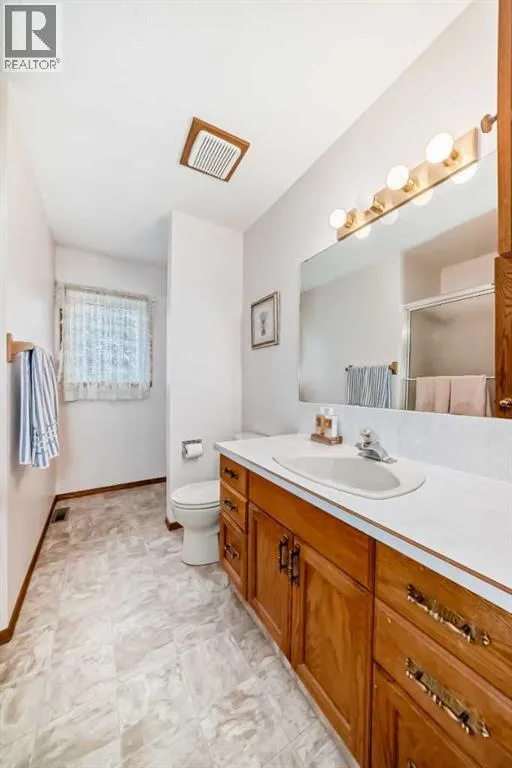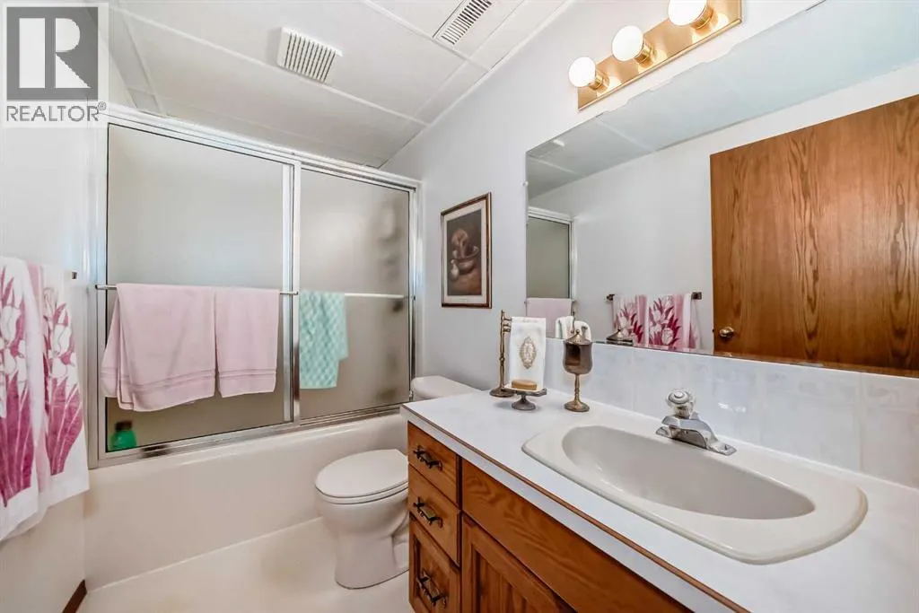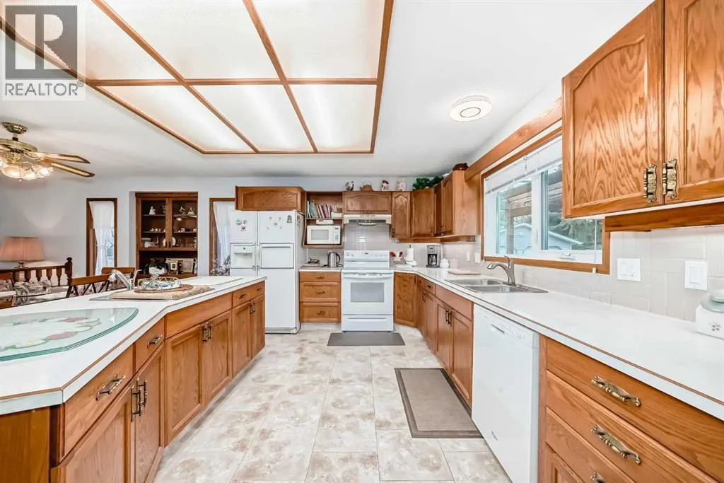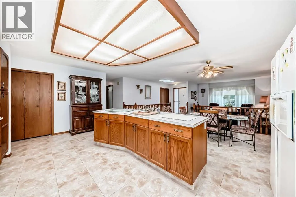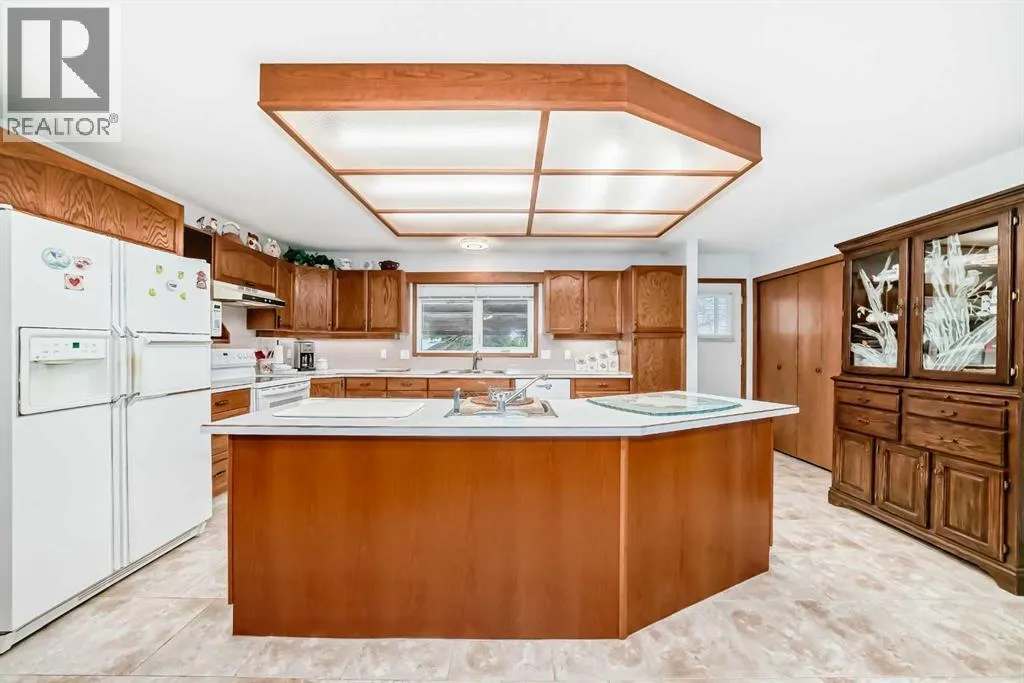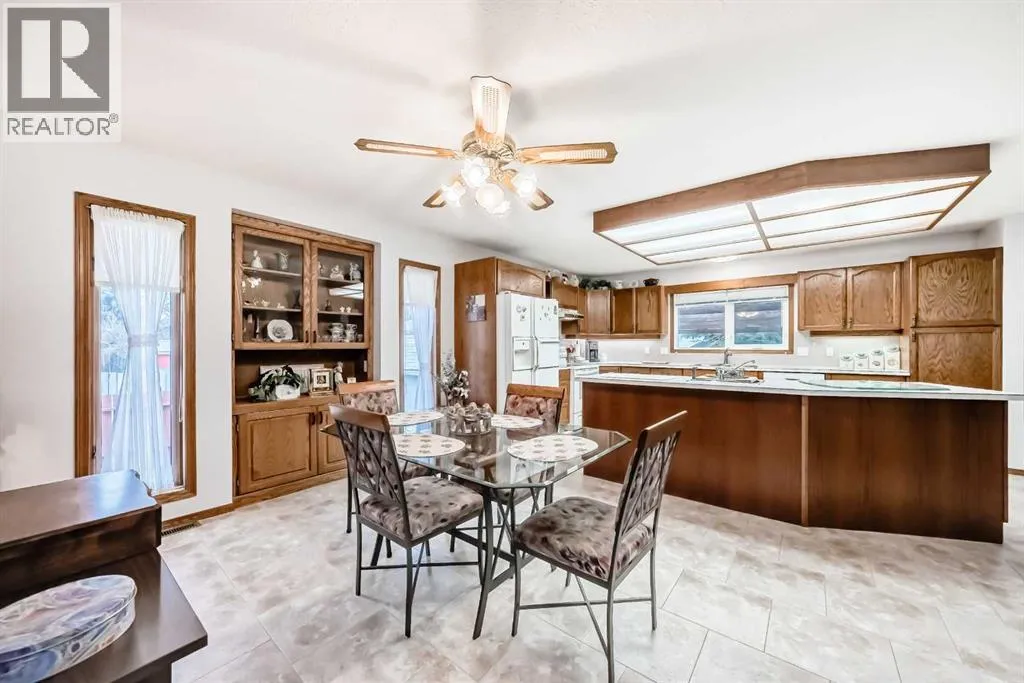 Charming Bungalow for Sale in Nanton â Perfect Family Home or family needing everything on one level.This well maintained bungalow boasts 4 spacious bedrooms and 2 pce bathrooms, main floor bathroom is accessible from from the master bedroom. With nearly 1,400 sq ft of thoughtfully designed living space, this home offers a perfect blend of comfort and functionality. Step inside to discover an inviting open concept main level that seamlessly connects the large kitchen, dining, and living areas. The kitchen is a chef's delight, featuring an island with a convenient sink â perfect for meal prep and entertaining. Bright new windows flood the space with natural light, while upgraded flooring throughout the kitchen and living room enhances the overall aesthetic. The practicality of a main floor laundry room adds ease to everyday living. Downstairs, the basement features a walk-up design that leads to a spacious rec room and additional living area, making it an ideal space for family gatherings or a cozy movie night. You will also find two generous bedrooms and a well-appointed 4-piece bathroom, while the in-floor heating ensures warmth and comfort during the colder months. Enjoy peace of mind with new hot water tanks that provide efficient service for all your needs. The garage is a true standout, featuring high ceilings for additional storage or an ideal workspace for car enthusiasts. It is equipped with heating that is vented directly from the homeâs furnace, providing a comfortable environment year-round. Roof was replaced two years ago. The outside is just as impressive as the inside offering a patio with pergola, garden area, RV access, beautifully landscaped with privacy. Don't miss out on this incredible opportunity to own a versatile and charming bungalow in Nanton. Schedule a viewing today and experience all that this fantastic property has to offer! (id:27476)