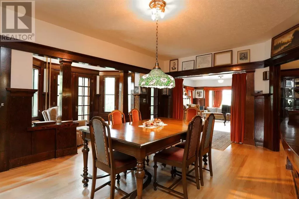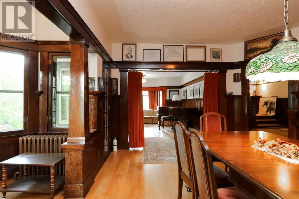 The Noble House is a magnificent property located in the heart of Nobleford. This estate was built in 1917 by the Noble family and the community developed around. This Craftsman style home is surrounded by mature trees and over an acre of privacy. From the grand driveway into the yard to the covered entrance to the home, there were no expenses spared when this property was built. The historical value of the property is priceless. Inside, the rooms are very generous with ample places to relax or entertain guests. The grand dining room and sitting rooms throughout have shared over a century of stories and still welcomes you for more! The detail in all of the woodwork through the home needs to be seen to appreciate. From the built in china cabinet to the multiple book shelves and picture rails, it is a must see. This property has been designated a Municipal Historic Resource and as such is eligible for annual government grants to maintain it's condition. This iconic estate is important to the town of Nobleford and the surrounding community. Truly a magnificent home. Connect with your REALTOR® for a viewing. (id:27476)