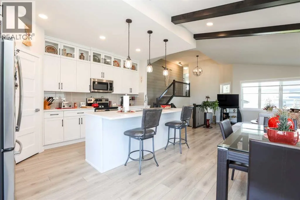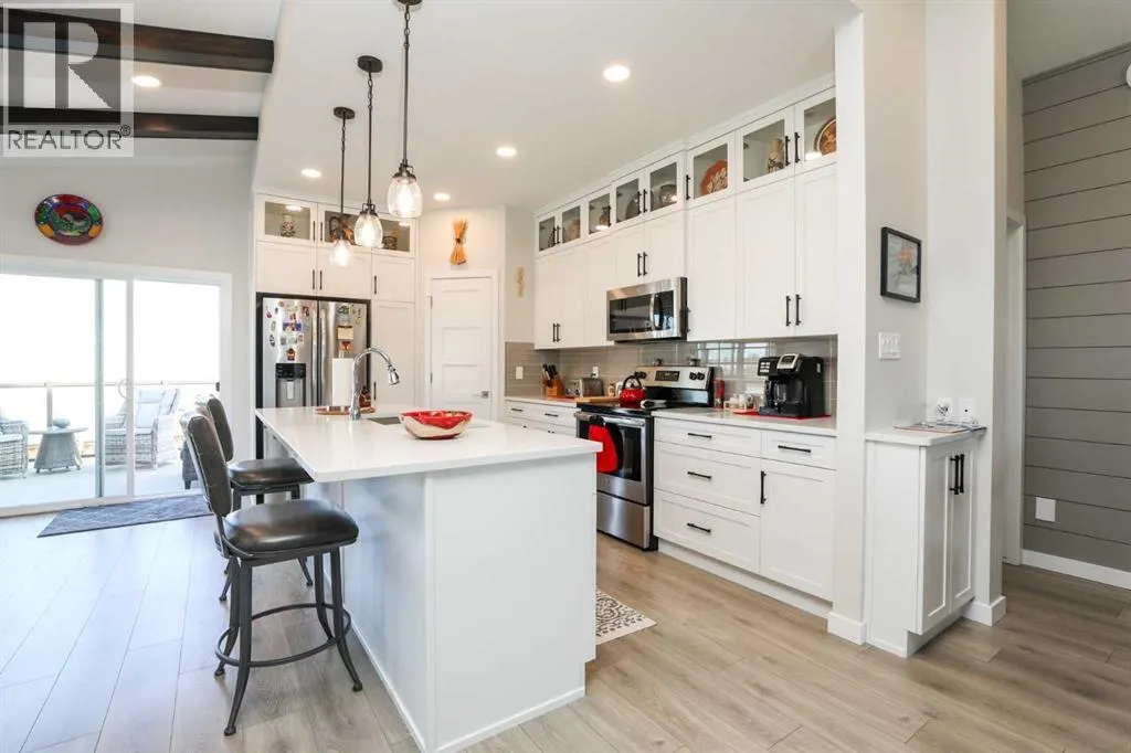 Experience small-town charm paired with modern elegance in this immaculately kept 2020 modified bi-level, located in the welcoming community of Nobleford. With lower property taxes and only a 20-minute commute to Lethbridge, this home strikes the perfect balance between affordability, convenience, and quality living. From the moment you step inside, youâll notice the pride of ownership throughout. A bright, open layout with oversized windows creates a warm and inviting atmosphere, while the kitchenâfeaturing a striking quartz island, ample cabinetry, and thoughtful designâserves as the heart of the home. The primary retreat offers a private haven, complete with dual sinks, a tiled shower, and a generous walk-in closet. Upstairs, above the attached double garage, are two additional bedrooms and a full bathroom. The fully finished basement expands the living space with another bedroom, spacious family room, full bath, and a versatile office/flex room that can easily serve as a fifth bedroom. Designed for everyday comfort, the home also comes with central vacuum system roughed in for convenience. Outdoors, enjoy the lifestyle extras that set this property apart: RV parking, garden boxes, underground sprinkler system, a powered shed, and a covered deck with enclosed, wired storage beneath. This home is a true standout, offering modern style, functional features, and the peace of small-town livingâall presented in pristine condition. Contact your REALTOR ® today to set up your showing! (id:27476)