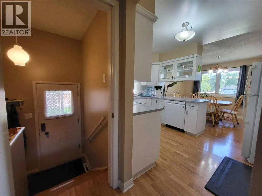 **Attention First-Time Home Buyers: Your Ideal Starter Home Awaits!** Discover this charming property in Nobleford, perfect for those entering the housing market. This home features 4 bedrooms and 2 bathrooms, situated in a friendly community known for its strong family values. Nobleford offers a K-12 public school, churches, restaurants, a convenience store, and a splash park, all with the added benefit of low taxes. The home itself is well-maintained with solid construction. The exterior has recently been painted, enhancing its curb appeal. You'll appreciate the long driveway with a covered carport and a single-car garage. Step inside to find a welcoming, carpeted living room that sets the tone for comfort. The bright and airy kitchen features white cabinetry and ample countertop space, perfect for culinary adventures. The main floor includes the master bedroom and two additional bedrooms, totaling three bedrooms, along with a beautifully renovated 4-piece bathroom. The basement offers a spacious recreational area complete with a brick fireplace (currently non-functional, but featuring an insert). You'll also find an additional bedroom, bathroom, and a large laundry room with plenty of storage space. The basement boasts brand-new flooring throughout. Outside, the generous backyard provides plenty of room for children to play, while the standalone deck is ideal for entertaining guests. Enjoy the shade and beauty of mature trees in the yard, along with the convenience of underground sprinklers for easy maintenance. Recent updates include new PVC windows, the furnace and hot water tank, and roof are just 7 years old. Donât miss this opportunity to own a lovely home in a vibrant community! Come and see for yourself! (id:27476)