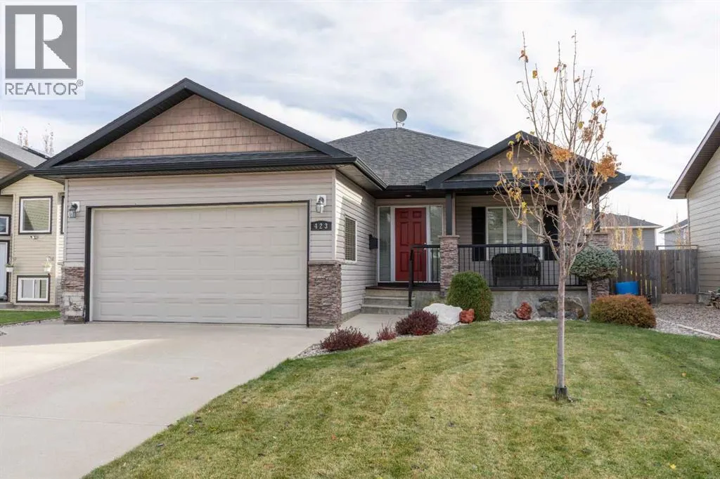 Welcome to 423 Centennial Ave in Nobleford! Located on an ideal street surrounded by beautifully manicured yards and friendly neighbors, this meticulously cared-for home offers the perfect blend of small-town charm and convenience. Enjoy low taxes, peaceful living, and great proximity to Lethbridge (just 25 minutes) and Calgary (1.5 hours).This bungalow was built in 2009 and is an open-concept home featuring vaulted ceilings, a spacious double garage, and great curb appeal. The main floor laundry, two generous bedrooms, and a primary suite with a walk-through closet and 3-piece ensuite make day-to-day living easy. The unfinished basement offers room to grow, with framing, electrical, and lighting rough-ins already completed and permitted.Outside, youâll find a shed, dog run, and green space behind for added privacy and outdoor enjoyment. Located close to the Kâ12 school, where students are known by name, this property is ideal for retirees, young families, or anyone seeking a move-in-ready home in a wonderful community.Donât miss out on this fantastic opportunity! Contact Hans Bowden today for a private showingâor bring your agent and come see this great space. (Lawn mower, snow blower, and pressure washer are negotiable with the sale.) (id:27476)