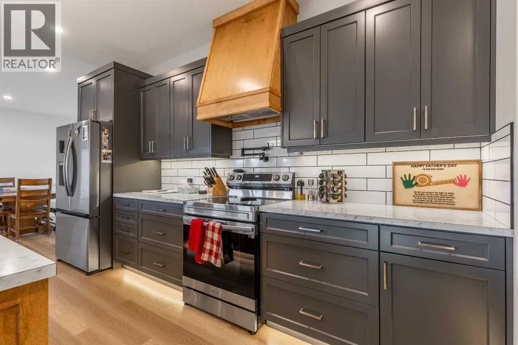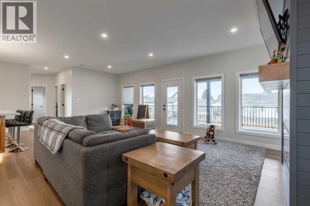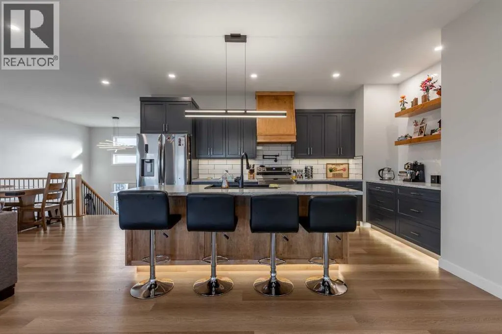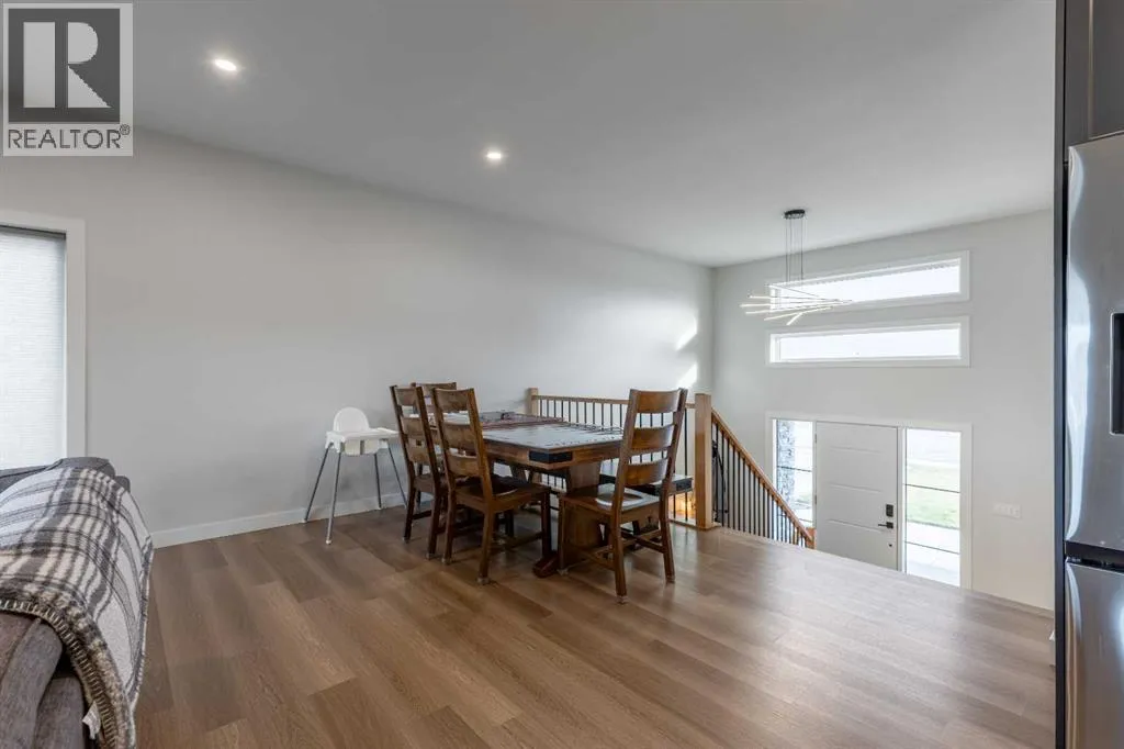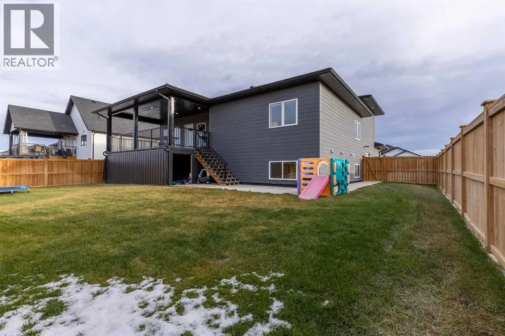 This Nobleford bi-level home was built with comfort in mind, offering a perfect layout for for busy families with enough space to work, play, entertain, and relax! Past the triple attached garage and front porch you'll enter into a bright front foyer with high ceilings and closet storage. On the main level, a large living room with a gas fireplace is located beside a comfortable dining room and a spacious kitchen with tons of cupboard space and a huge central island with a sink and breakfast bar. Past the walk-in pantry and down the hall, you'll find two bedrooms and a four-piece bathroom. The entire upper level is a luxurious primary bedroom suite with a walk-in closet and ensuite bath which features a double vanity and a walk-in rain shower with built-in ledge shelving. Downstairs, you can set up the play room or entertainment centre of your dreams, with a large rec room leading down a hall to two more bedrooms, another four-piece bath, a storage area, and a laundry room. On the covered rear deck complete with seating space and recessed lighting, you can look out over the landscaped back yard, keeping an eye on the kids as they play while entertaining friends and family in style. If a stunning home in a quiet neighborhood sounds like the place for you, give your REALTOR® a call and book a showing today! (id:27476)