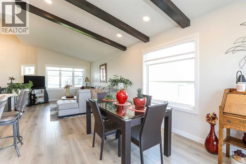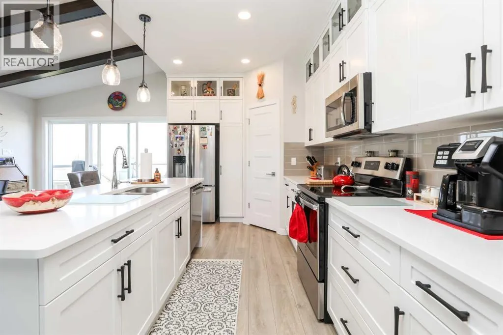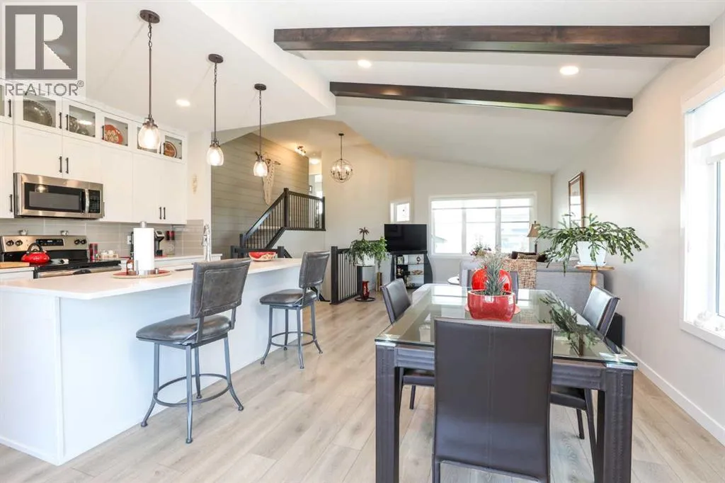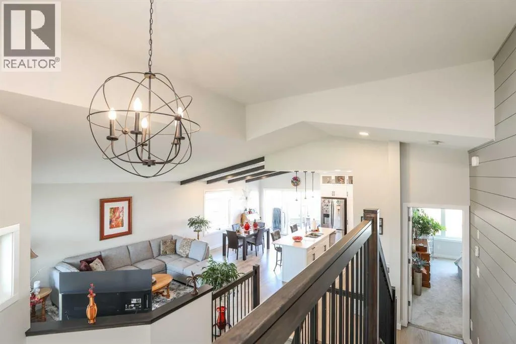 Experience small-town charm paired with modern elegance in this immaculately kept 2020 modified bi-level, located in the welcoming community of Nobleford. With lower property taxes and only a 20-minute commute to Lethbridge, this home strikes the perfect balance between affordability, convenience, and quality living. From the moment you step inside, youâll notice the pride of ownership throughout. A bright, open layout with oversized windows creates a warm and inviting atmosphere, while the kitchenâfeaturing a striking quartz island, ample cabinetry, and thoughtful designâserves as the heart of the home. The primary retreat offers a private haven, complete with dual sinks, a tiled shower, and a generous walk-in closet. Upstairs, above the attached double garage, are two additional bedrooms and a full bathroom. The fully finished basement expands the living space with another bedroom, spacious family room, full bath, and a versatile office/flex room that can easily serve as a fifth bedroom. Designed for everyday comfort, the home also comes with central vacuum system roughed in for convenience. Outdoors, enjoy the lifestyle extras that set this property apart: RV parking, garden boxes, underground sprinkler system, a powered shed, and a covered deck with enclosed, wired storage beneath. This home is a true standout, offering modern style, functional features, and the peace of small-town livingâall presented in pristine condition. Contact your REALTOR ® today to set up your showing! (id:27476)