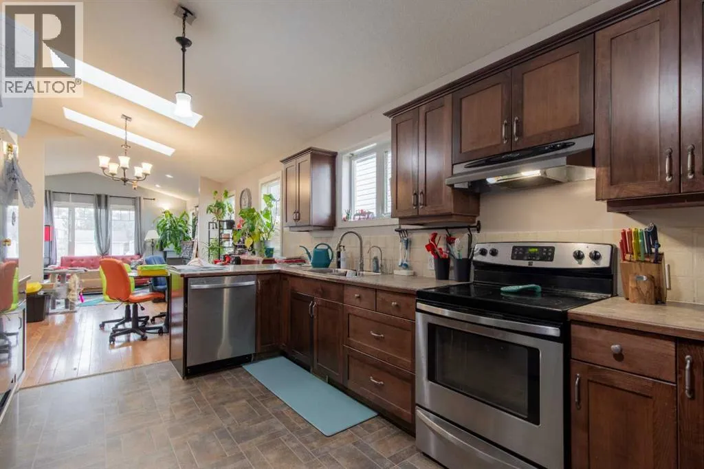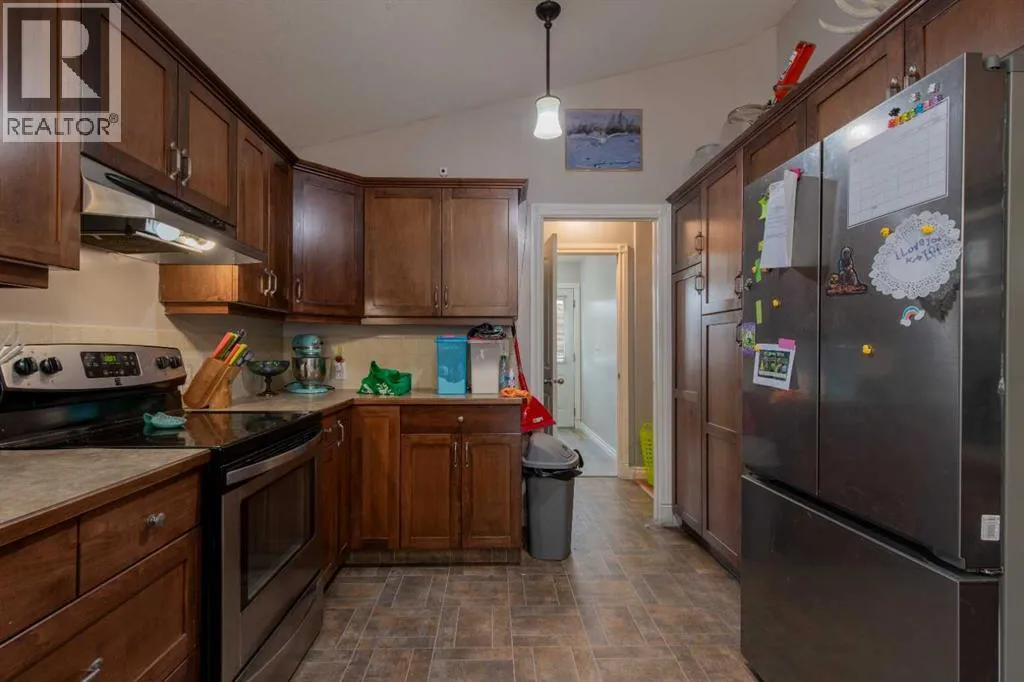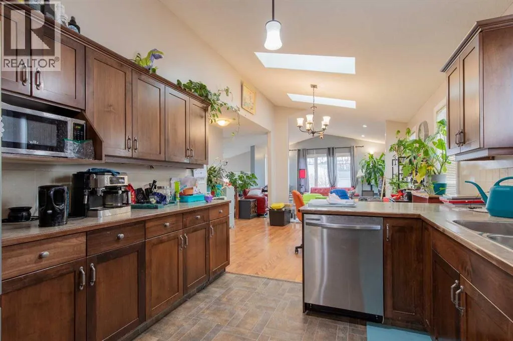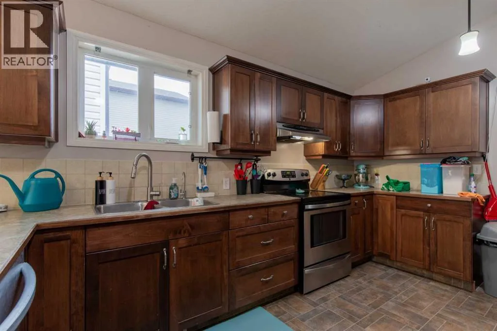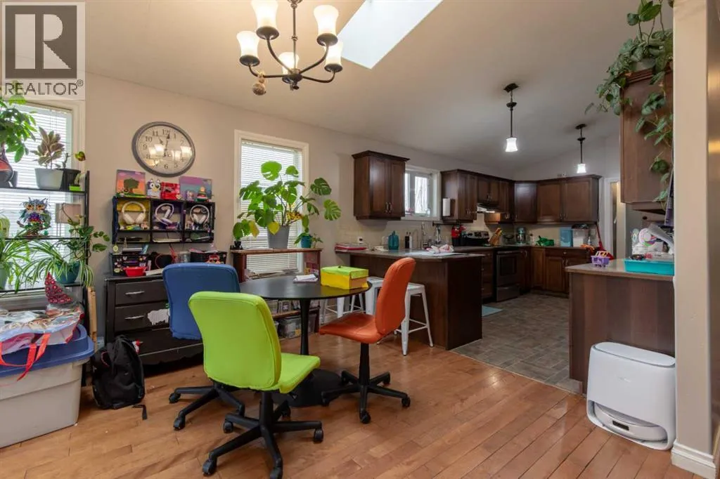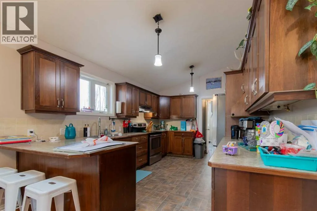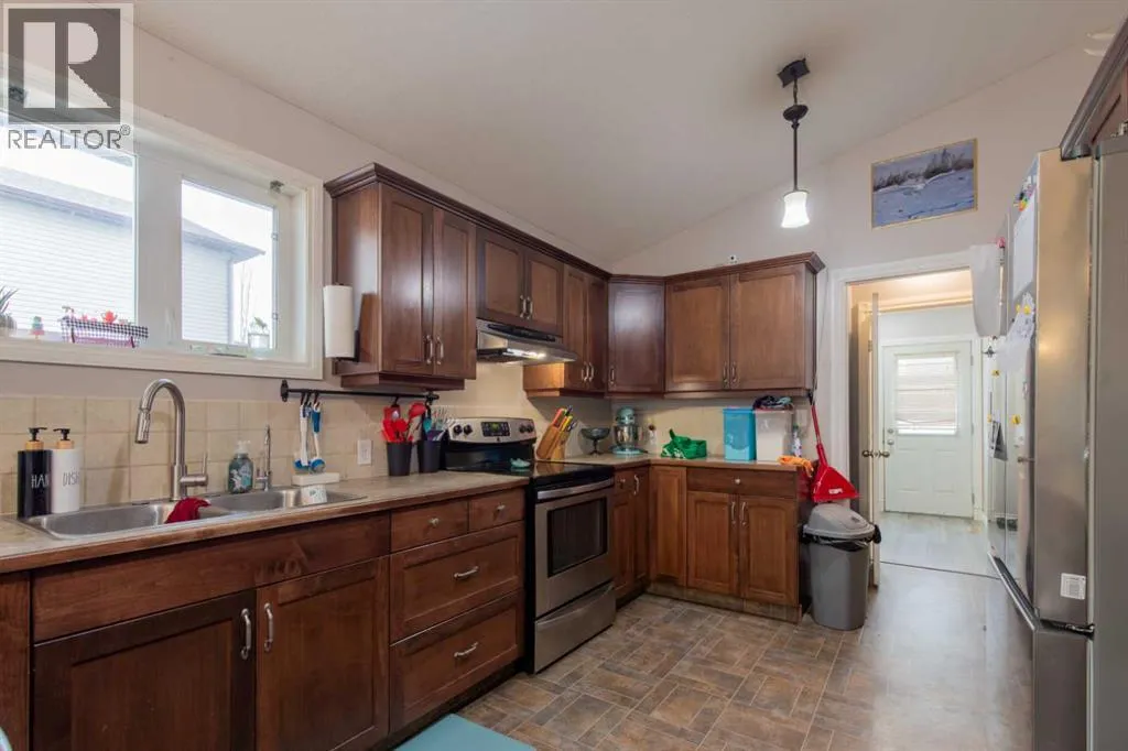 Excellent Nobleford property right beside a spray park and playground, perfect for growing families or growing rental portfolios! This home features five bedrooms, two bathrooms, a single detached garage, and an ideal location within walking distance to schools and green spaces. On the main level, a combined living and dining room create a comfortable space to relax solo or host friends. The kitchen is full of beautiful cabinet storage. Down the hall, two bedrooms surround a four-piece bathroom, perfect for setting up a nursery, guest suite, or home office. Downstairs, three bedrooms and a three-piece bath provide plenty of space to spread out with a rec room at the rear of the home waiting for you to set up a playroom, home theatre, or whatever else you can imagine. If a five-bedroom home in a great location right next to a spray park and playground sounds like the spot for you, give your REALTOR® a call and book a showing today! (id:27476)