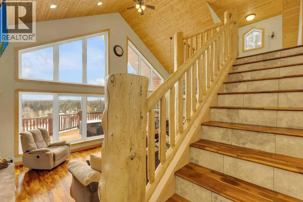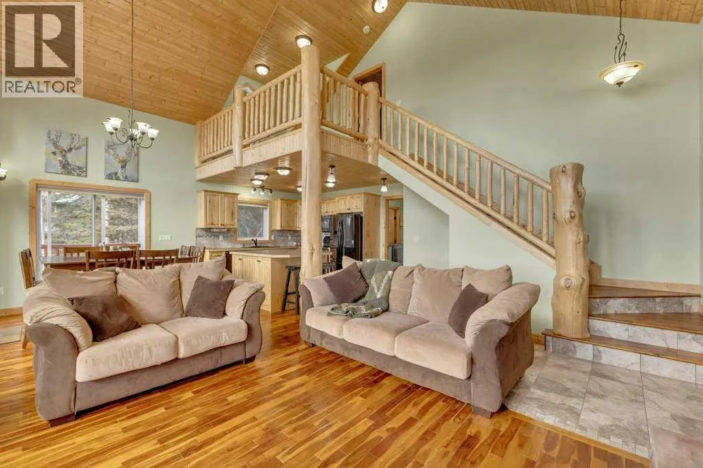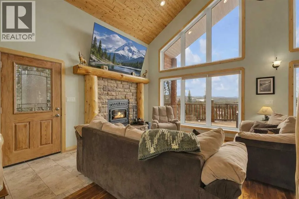 Set among the natural beauty of Nordegg, this exceptional cabin offers the perfect blend of rustic elegance and modern comfort. Designed with intention and craftsmanship, this conventionally framed home is highlighted by signature log railing details and warm natural finishes that create an inviting, upscale mountain atmosphere. Inside, the home opens to a dramatic great room with soaring vaulted ceilings and a striking wall of windows that capture uninterrupted valley views. Natural light pours in throughout the day, enhancing the rich textures and tones of the interior.The thoughtfully designed layout includes: A spacious open-concept living and dining area centered around a cozy fireplace.A well-equipped kitchen featuring hickory cabinetry and generous workspace. Currently configured to comfortably accommodate 7 beds and 3 baths, this property offers exceptional flexibilityâwhether for personal use, or hosting family and friends, with the basement conveniently having its own entrance. Step outside to the expansive deck, where the surrounding forest and distant views create a peaceful, private setting. Whether enjoying your morning coffee or watching the sun set over the valley, this outdoor space is truly a highlight. This home is being offered furnished - as is, making it an ease to start enjoying right away. Located just a short drive from Crescent Falls, Abraham Lake, and an abundance of outdoor activities, this property offers year-round enjoyment in one of Albertaâs most scenic destinations. (id:27476)