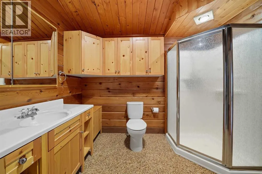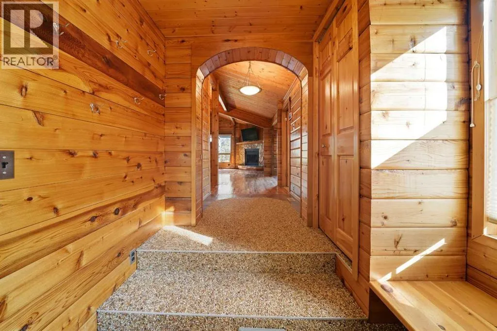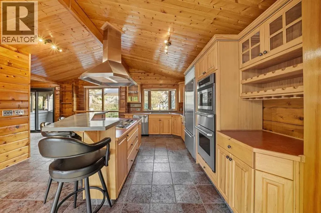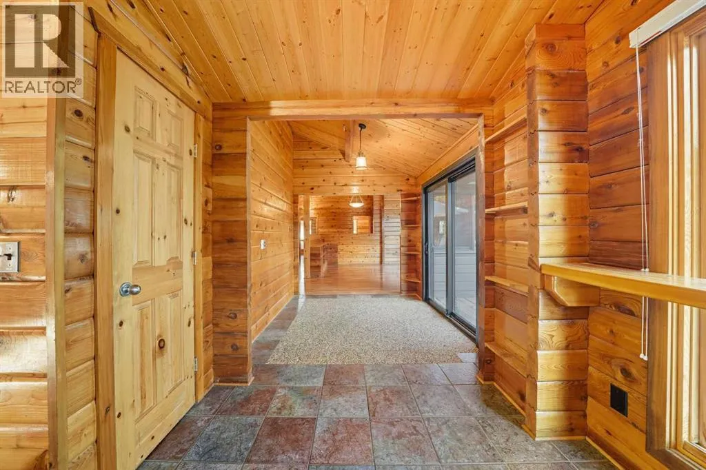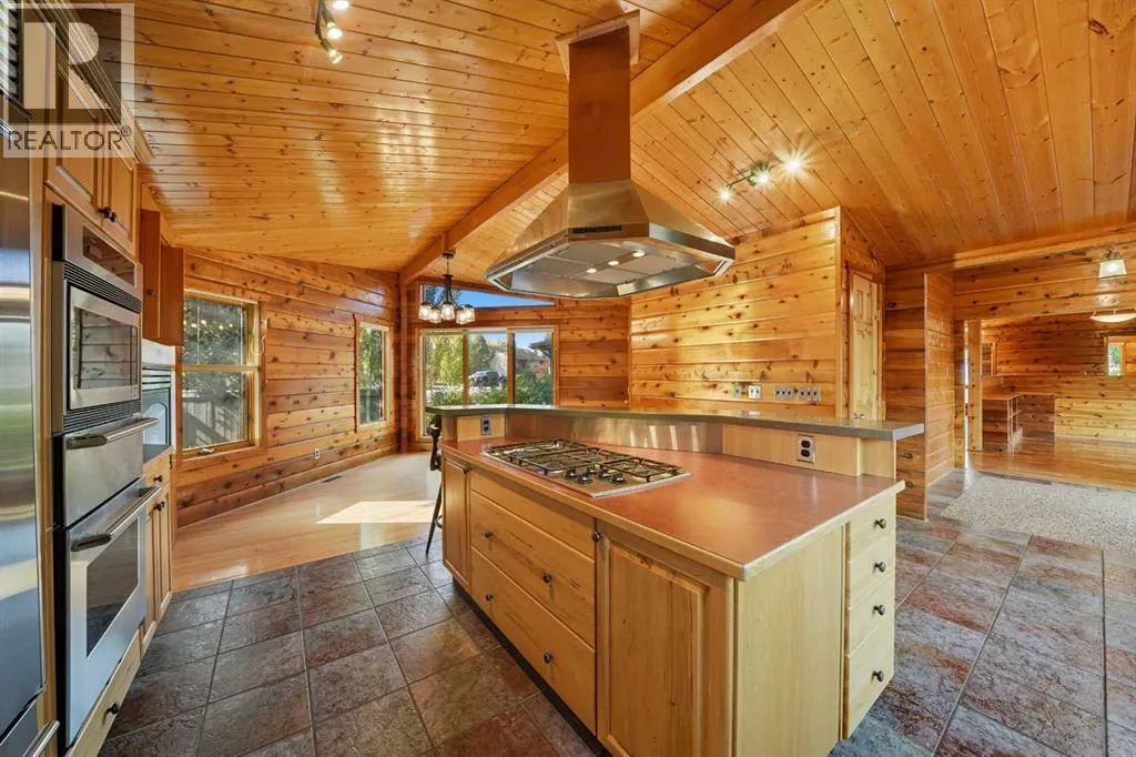 Welcome to your own slice of lakeside paradise in this charming log-constructed home nestled on a peaceful crescent in the Summer Village of Norglenwold. Lake access is just a short walk away with the possibility of putting in a boat lift. Whether you're launching your boat, a kayak for a morning paddle, or simply enjoying the sunset views, lakefront living doesn't get much better than this.This unique two bedroom retreat features vaulted ceilings that create an airy, spacious atmosphere throughout. The heart of this home is the gourmet kitchen, complete with a gas range, granite sink, overhead range hood, and the unique charm of its own gas fireplace. A second, wood burning fireplace adds warmth and ambiance to the main living area, perfect for those crisp Alberta evenings. Both bedrooms offer comfortable accommodations with impressive vaulted ceilings, while the two full bathrooms ensure convenience for family and guests alike. The large pie-shaped corner lot provides plenty of space for outdoor activities and entertaining on the expansive deck, along with the beautifully landscaped yard and welcoming fire pit area. The deck has a NG line ready for a bbq or gas fireplace, and it is also roughed in for a hot tub in the private area adjacent to the primary suite. Upgrades include a new high efficiency furnace, hot water tank, new water lines, air conditioning, and yard irrigation system, and a fresh exterior paint job. The oversized heated double car garage and additional parking space on the side of the house provide ample space for parking guest vehicles, an RV or boat. The location strikes the perfect balance between tranquil retreat and convenient access to many amenities. Located close to the Sylvan Lake Golf & Country Club, shopping, restaurants, AquaSplash, walking paths, and of course, the beautiful Town of Sylvan Lake for endless recreational opportunities. This home truly offers the ideal blend of rustic charm and modern comfort in one of Alberta's most sought-after lakeside communities. (id:27476)