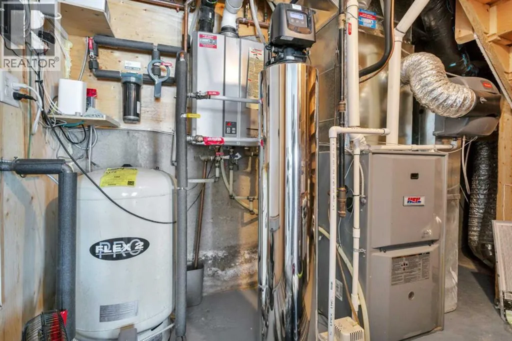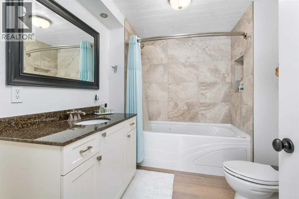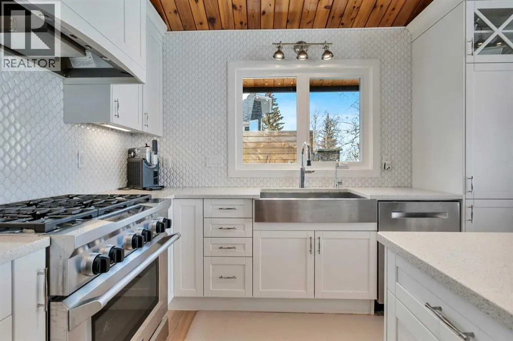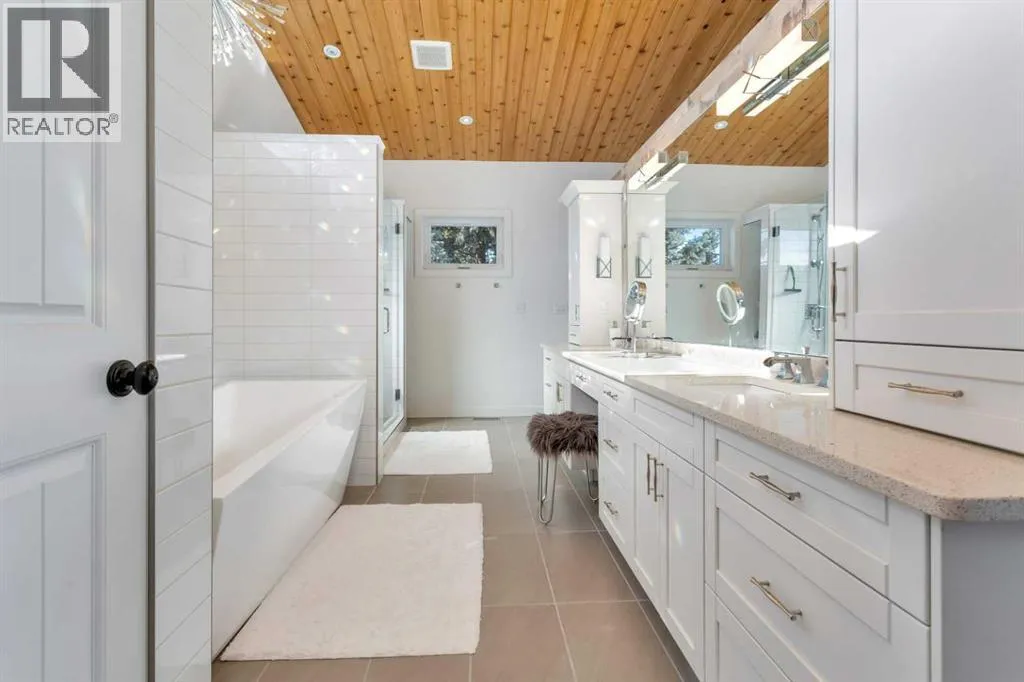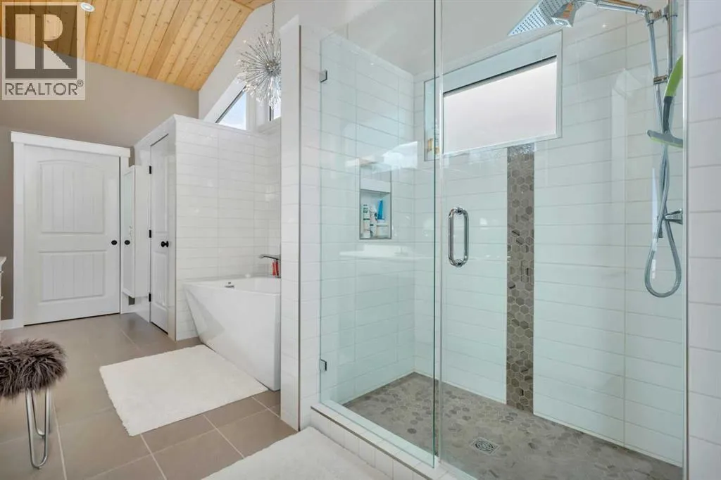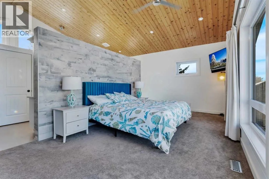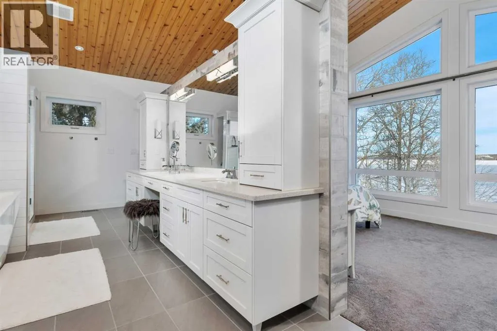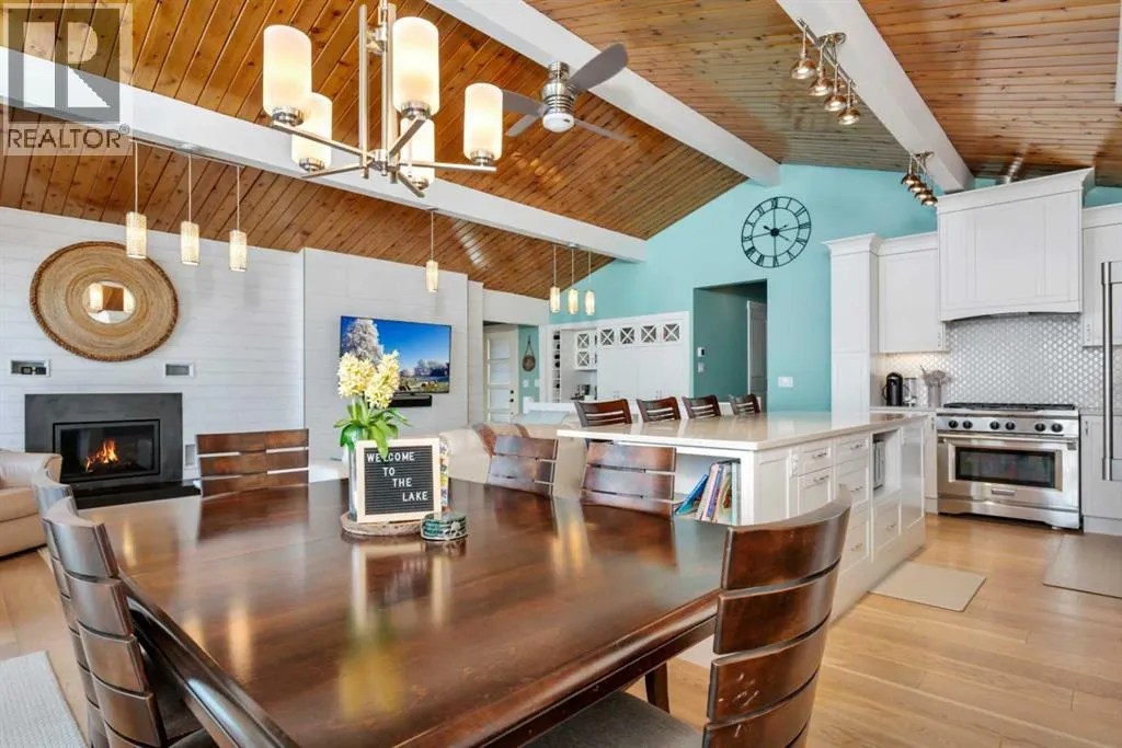 Set behind a gated entrance and surrounded by mature trees, 87 Grand Avenue offers a rare blend of privacy, modern design, and true lakefront living, just minutes from Sylvan Lake. This walkout bungalow with a custom second-storey primary suite retreat was extensively updated in 2022, when the original cabin was completely renovated and a substantial addition was completed, creating a home that is both refined and highly functional. Inside, soaring vaulted wood ceilings with exposed beams and expansive windows flood the space with natural light while capturing stunning lake views. The kitchen features white cabinetry, Caesarstone quartz countertops, stainless steel appliances, and a central island, flowing seamlessly into both casual and formal dining areas. Two brand new gas fireplaces add warmth and atmosphere, while two new air conditioning units ensure comfort throughout the seasons. Upstairs, the primary suite offers a peaceful retreat with lake views, a custom walk-in closet, and a spa-inspired ensuite with a soaker tub and rain shower. The walkout basement opens to a fully landscaped yard and direct access to the lake, creating a seamless indoor-outdoor lifestyle. A standout feature of this property is the completely rebuilt shoreline and retaining wall, professionally completed by Lakeview Contracting. From the lake all the way up to the home, the entire structure has been redone, offering improved usability, enhanced access, and long-term structural integrity, a significant investment and a rare advantage for waterfront ownership. The lower level offers a flexible recreational space, ideal for kids, guests, or a dedicated hangout area after a full day on the lake. An oversized attached garage with extended ceiling height offers excellent storage, including room for a boat. A rare opportunity to own a fully upgraded waterfront property where privacy, quality renovations, and true lakefront functionality come together. (id:27476)