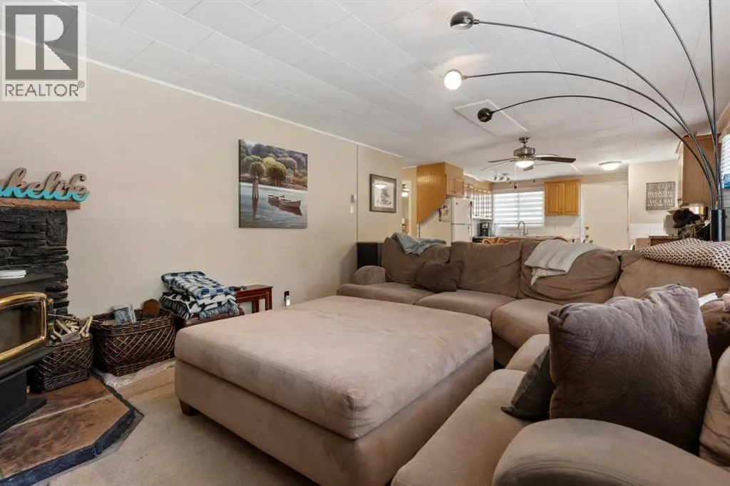 Discover your ultimate four-season retreat at the southern tip of Pigeon Lake in the summer village of Norris Beach. Nestled among towering spruce trees, this charming cabin offers privacy, comfort, and direct water accessâall within a two-minute stroll to the shore. Interior Features; Two cozy bedrooms and a full four-piece bathroom. Open-concept living area with abundant natural light. Kitchen appointed with oak cabinets, subway tile backsplash, double sink, extra counter space, ceramic stove, fridge, and dishwasher. Cabin comes with newer vinyl siding, soffit, and fascia. Furnace approximately 5 years old. Big Bonus - the property is tied into municipal sewer for a way more convenient experience. Outdoor & Lot Highlights; Wrap-around deck ideal for lounging, morning coffee, or alfresco dining. Ample storage throughout to keep gear organized. Expansive front yard shaded by mature spruce for peaceful relaxation. Backyard designed for entertainingâfire pit area and room for lawn games. Bunkhouse with tin roof and air conditioning, perfect for guests or in the summer or winter. Property backs onto green space, providing a secluded feel and direct water access. Just two blocks from Black Bull Golf Course, Petro-Canada, and village amenities. RV parking with 220V plug right at the driveway. Easy walk to lakeside beaches, boat launches, and scenic trails. Large private beach area for the neighborhood residents to enjoy in the summer and store their boat docks in the winter. Ideal for year-round living, seasonal rentals, or a weekend getaway. Donât miss the chance to own this very affordable lake retreat. (id:27476)